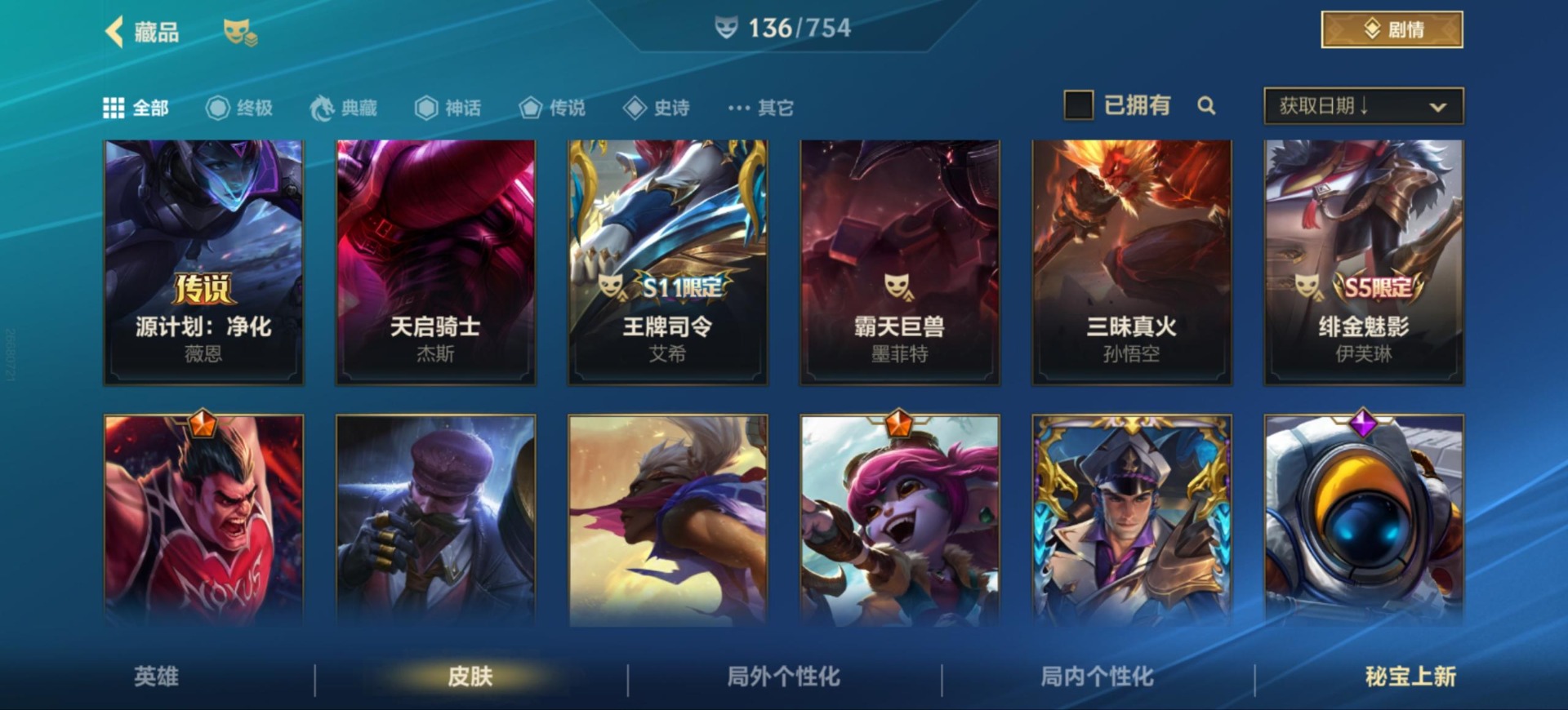 - [12228824]V5 4传说 124英雄 217皮肤 可修改实名 优质装备:冠军飞将,地狱之眼,涂山容容 珍宝阁皮:万物之道,蔷薇恋人,玩趣恶龙 限定皮:愿照·九州拓(澜年限),鸣野蒿,遇见飞天,五谷丰年,梁祝,李小龙,美猴王 史诗皮:器灵·浮梦炉,星界战将,石田雨龙,破空之剑,蒙犽顽岩魄,百相守梦-黄忠,紫霞仙子,特工魅影,江河有灵,雪夜绮愿(周瑜),真我赫兹(镜),魅语,蒙恬荣光圣徽,冰冠公主,晚萤,电玩·爆裂旋风,末日机甲-吕布,乱世虎臣,节奏热浪,摇滚巨星,水果甜心,天才门将,星夜王子,功夫厨神,德古拉伯爵,暗隐猎兽者,幽灵船长,鬼剑武藏,心灵战警,舞动绿茵,地狱岩魂,纤云弄巧,繁星吟游(呼啦呼啦),乘风破浪,逐浪之夏,水晶猎龙者,金属风暴,原初追逐者,圣诞狂欢,圣诞恋歌,鹰眼统帅,暗夜贵公子,魅力维加斯,黎明之约,未来纪元-赵云