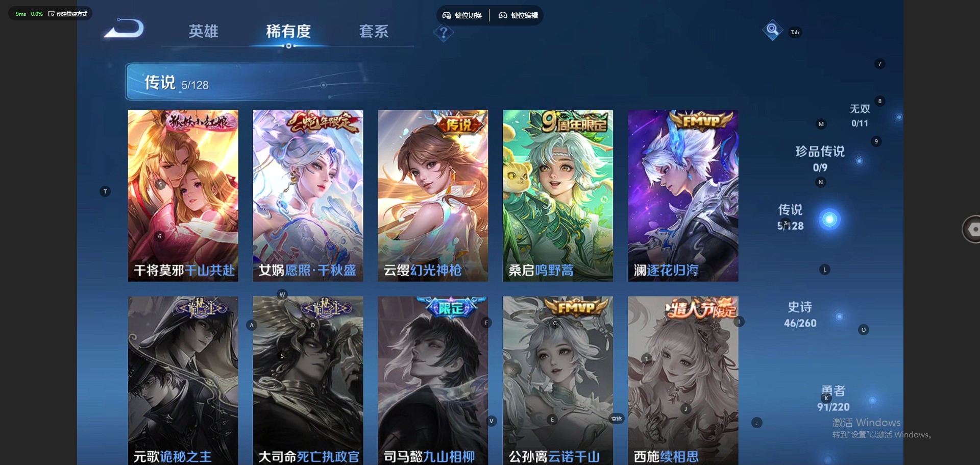 - [12049626]V5 3传说 124英雄 136皮肤 可修改实名 优质装备:冠军飞将,胖达荣荣 珍宝阁皮:胡桃夹子,优雅恋人 限定皮:鸣野蒿,五谷丰年 史诗皮:星界战将,龙之律动,百相守梦-周瑜,埋骨钱,百相守梦-黄忠,特工魅影,千年之狐,江河有灵,蒙恬荣光圣徽,冰冠公主,偶像歌手,末日机甲-吕布,节奏热浪,摇滚巨星,水果甜心,天才门将,暗隐猎兽者,鬼剑武藏,地狱岩魂,乘风破浪,逐浪之夏,月团寄思,水晶猎龙者,箭羽风息,金属风暴,原初追逐者,圣诞狂欢,鹰眼统帅,魅力维加斯,黎明之约,未来纪元-赵云