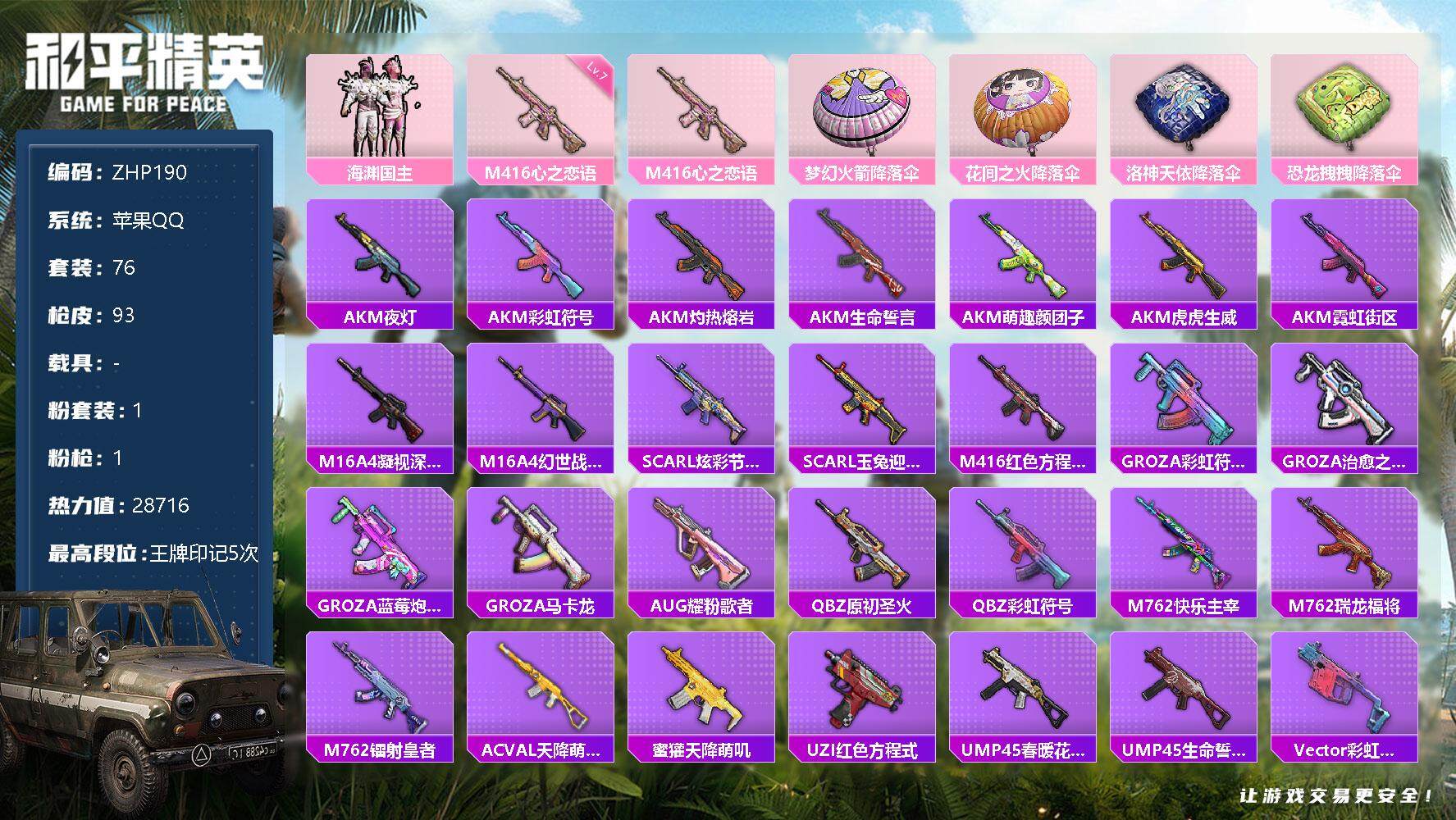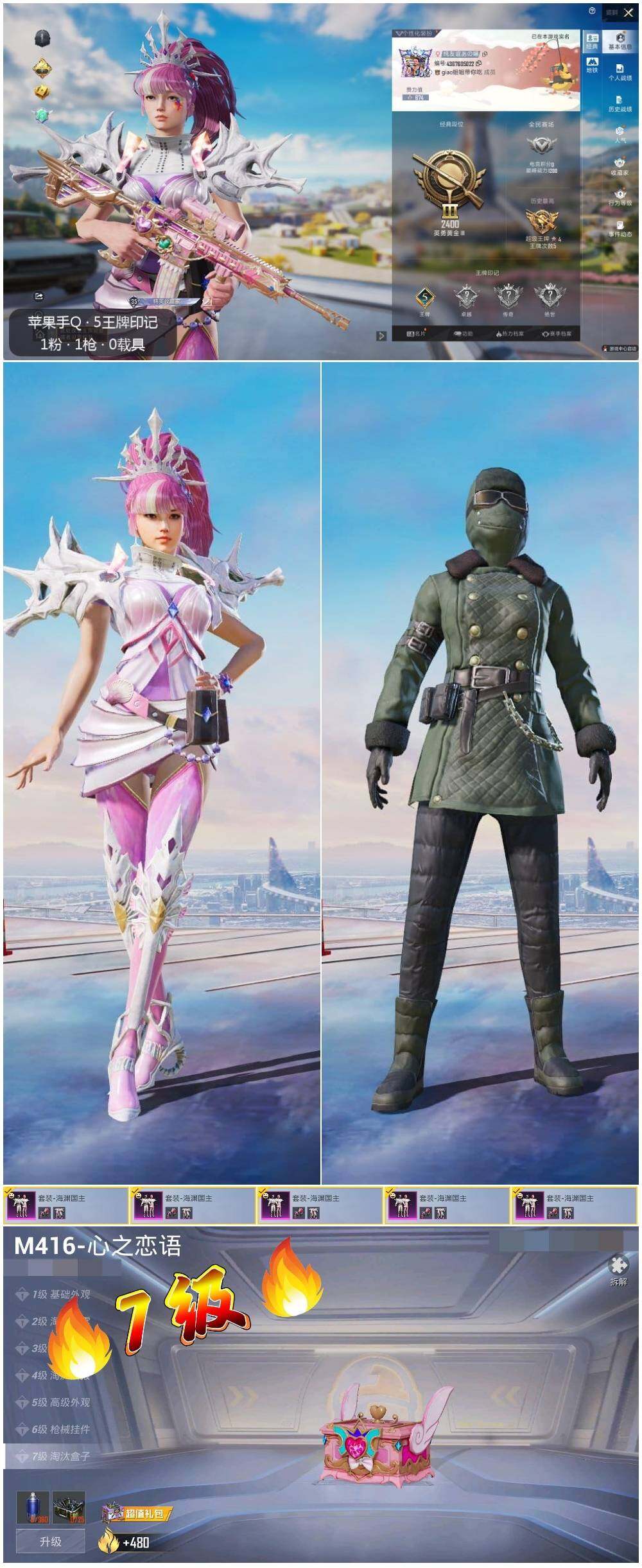 [12260385]【特价急出/详情看图】:苹果 手Q-1粉装-1特效枪-2.8w热力值-5王牌印记-76套装-93枪皮【粉色套装】:粉装-海渊国主【粉色枪皮等级】:M416-心之恋语(七级)