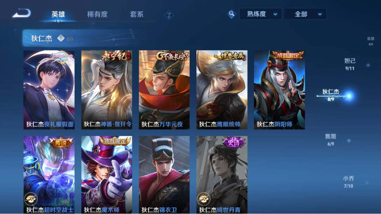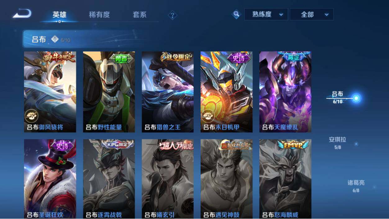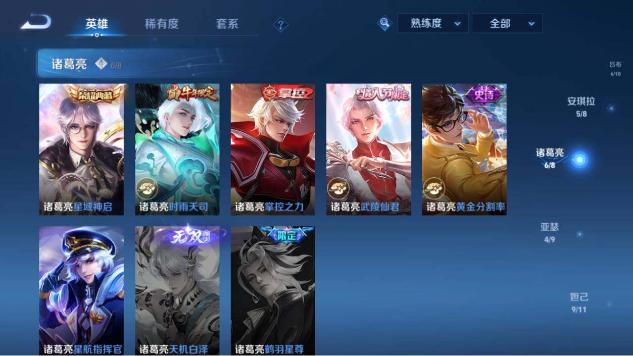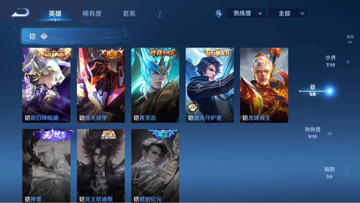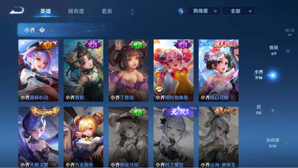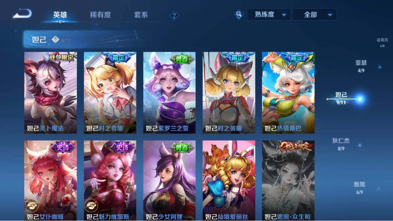 【荣耀典藏】:武则天英雄,武则天倪克斯神谕,夏侯惇无限飓风号,小乔天鹅之梦,孙尚香杀手不太冷,芈月大秦宣太后,程咬金活力突击,诸葛亮星域神启,花木兰九霄神辉,铠银白咏叹调,虞姬神鉴启示录