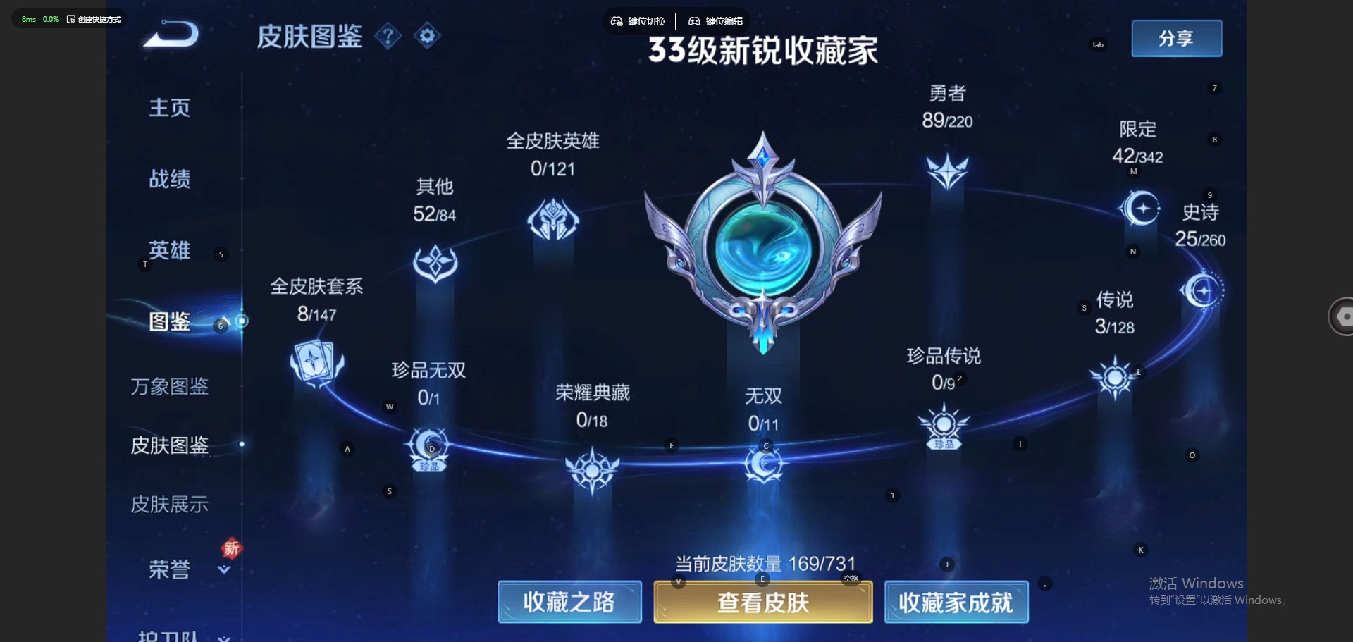 - PX_2090685-65 安卓QQ/至尊星耀/331皮肤/124英雄/2典藏/0珍品无双/1无双/0珍品传说/37传说/105史诗/9稀有英雄 【2 典藏皮肤】全息碎影 孙悟空,弑枪猎影 韩信, 【1 无双皮肤】青丘·九尾 妲己, 【37 传说皮肤】鹤归松栖 云缨,星穹之声 王昭君,启明星使 虞姬,碎云 百里守约,逐花归海 澜,电玩·雷克斯 澜,无双飞将 马超,零号·赤焰 孙悟空,云鹰飞将 曜,