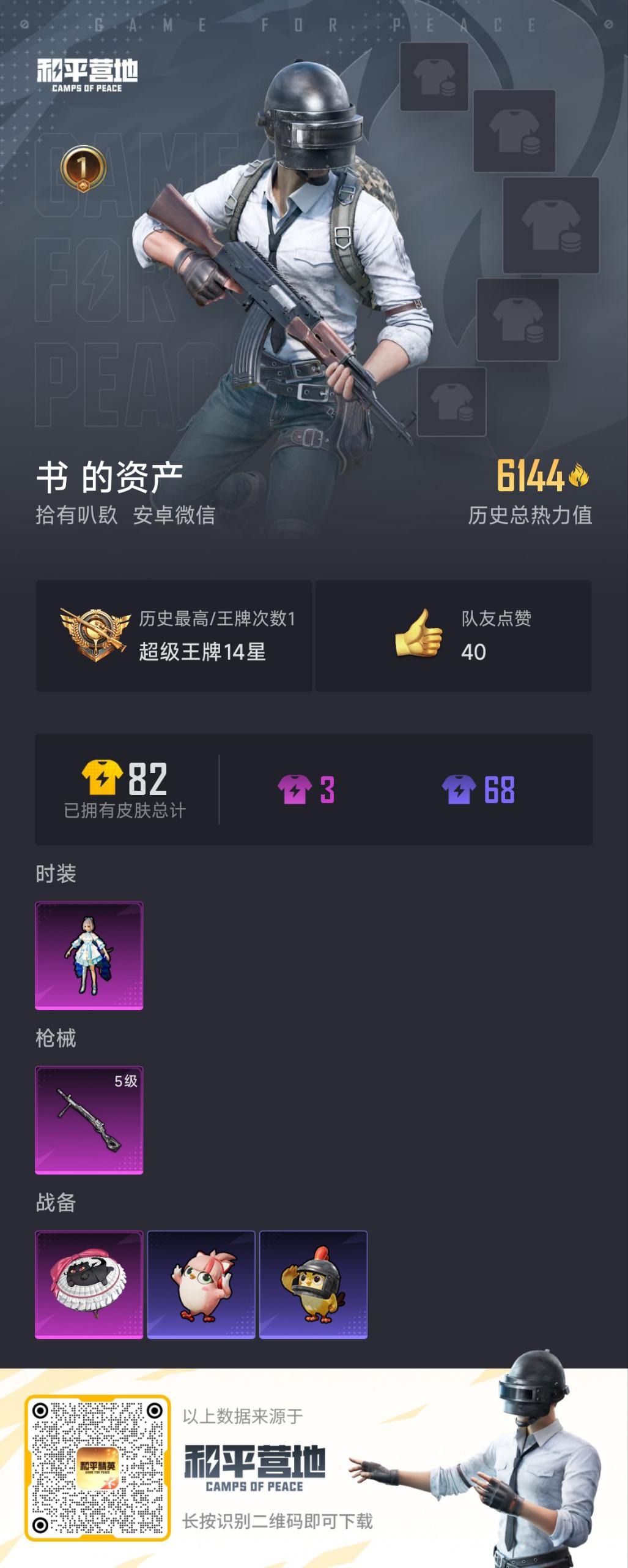 - [12038516]暑期末清货/特价急出/永久包赔【商品标题】:安卓 手Q-3粉装-8特效枪-1载具-6.1w热力值-10印记-168套装-201枪皮【稀有载具】:辉羽雀灵自行车【特效枪等级】:AKM-绿萝繁花(五级),SCAR-L-锦绣绵绵(五级),M416-电玩时刻(五级),GROZA-镜光银凌(五级),AUG-暖羊咩咩(五级),AKS-74U-星穹咏叹调(六级),Kar98K-巳巳如意(五级),Mk14-精灵梦叶罗丽(七级)【优质套装】:粉装-蜜语绒猫,角色-守护天翼,角色-智耀战神【优质飞行器】:绝色倾城飞行器,霓虹漫游飞行器,星空武士飞行器