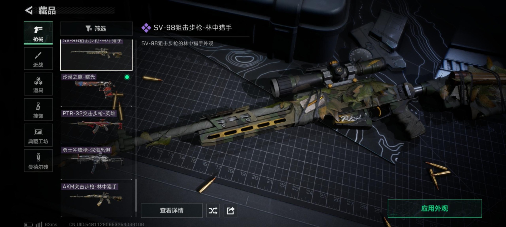 [12261651]总资产:299.6M 11传说枪械 哈夫币:2.261K 可二次 可修改实名 烽火地带段位:钻石 全面战场段位:军士长 传说武器皮肤:UZI冲锋枪-特斯拉线圈,AWM狙击步枪-捞点薯条,腾龙突击步枪-捞点薯条,93R-捞点薯条,AK-12突击步枪-特斯拉线圈,SR-3M紧凑突击步枪-特斯拉线圈,勇士冲锋枪-能天使-午夜邮差,复合弓-黑-天际线,725双管霰弹枪-送葬人-无题密令,M4A1突击步枪-阿米娅,CAR-15突击步枪-阿米娅 史诗武器皮肤:PKM通用机枪-蝮蛇,QJB201轻机枪-Old Habits,M1014霰弹枪-林中猎手,MP5冲锋枪-深海恐惧,勇士冲锋枪-深海恐惧,SG552突击步枪-深海恐惧,AKM突击步枪-林中猎手,M16A4突击步枪-竞赛选手,M250通用机枪-囚徒,SV-98狙击步枪-林中猎手,PTR-32突击步枪-英雄,SV-98狙击步枪-囚徒,腾龙突击步枪-无垢,MP7冲锋枪-无垢,PSG-1射手步枪-无垢,SVD狙击步枪-荒野求生,SR-3M紧凑突击步枪-荒野求生,PKM通用机枪-荒野求生,沙漠之鹰-曙光,M700狙击步枪-竞技风