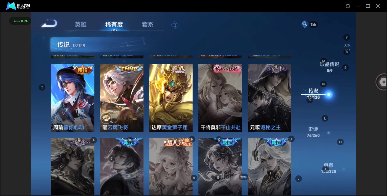 - [11942826]V7 1典藏 2珍品传说 4传说 123英雄 220皮肤 可修改实名 优质装备:弑枪猎影(韩信典藏),怪盗基德,一念神魔,末日机甲-孙尚香(绿蚂蚱),涂山容容 珍品传说:时之奇旅-孙策 传说皮:幻光神枪 珍宝阁皮:妄想食味,玩趣恶龙 限定皮:逐霄战戟,鸣野蒿,五谷丰年,梁祝,天狼狩猎者,李小龙 史诗皮:鸭鸭历险记-刘禅,器灵·浮梦炉,化蝶舞,星界战将,龙之律动,雪豹·霜爪,石田雨龙,百相守梦-周瑜,茶境仙,破空之剑,百相守梦-百里守约,星界特工,百相守梦-黄忠,白龙吟,特工魅影,千年之狐,冰冠公主,暗夜猫娘,猫狗日记-孙策,猫狗日记-大乔,时之恋人-孙尚香,乱世虎臣,修罗,摇滚巨星,水果甜心,星夜王子,心灵骇客,功夫厨神,德古拉伯爵,暗隐猎兽者,幽灵船长,鬼剑武藏,暗渊魔法,舞动绿茵,地狱岩魂,纤云弄巧,繁星吟游(呼啦呼啦),乘风破浪,逐浪之夏,水晶猎龙者,曙光守护者,箭羽风息,金属风暴,圣诞恋歌,鹰眼统帅,黎明之约,无心,未来纪元-赵云