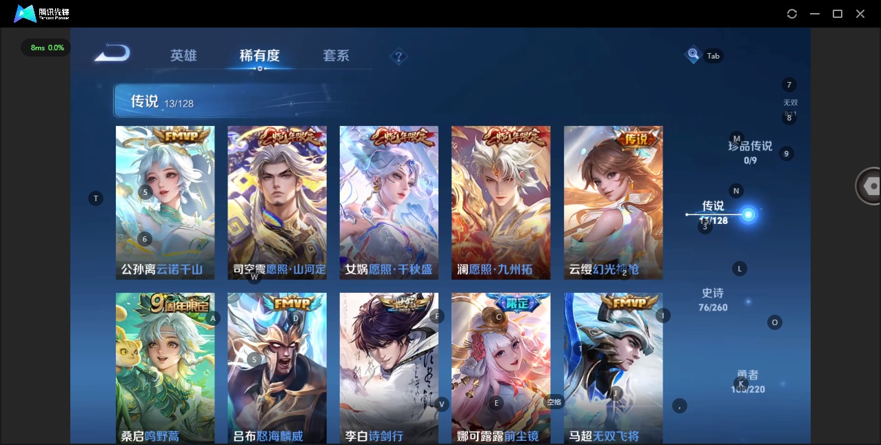 - [11684224]V8 1珍品传说 16传说 125英雄 261皮肤 典藏英雄武则天 可修改实名 优质装备:怪盗基德,一念神魔,末日机甲-孙尚香(绿蚂蚱),地狱火,地狱之眼,无双飞将,妄想实况,澜逐花归海 传说皮:祥瑞亨通,幻光神枪 珍宝阁皮:蔷薇恋人 限定皮:愿照·九州拓(澜年限),陌上桑,鸣野蒿,至尊宝,白虎志(电光耗子),白晶晶,时雨天司(水龙头),遇见飞天,齐天大圣,武圣,御风骁将(吕布年限),李小龙,逐梦之影,朱雀志(守约年限),霸王别姬-项羽,猪悟能,大圣娶亲,引擎之心,青春决赛季,美猴王 史诗皮:器灵·浮梦炉,谪仙醉月,石田雨龙,茶境仙,破空之剑,东方月初,百相守梦-百里守约,星界特工,百相守梦-黄忠,紫霞仙子,黄金分割率,特工魅影,千年之狐,百解令(蒙犽),蒙恬荣光圣徽,冰冠公主,偶像歌手,白蛇,电玩·爆裂旋风,龙骑士(小龙虾),末日机甲-吕布,猫狗日记-孙策,乱世虎臣,女仆咖啡,水果甜心,星夜王子,心灵骇客,功夫厨神,德古拉伯爵,暗隐猎兽者,幽灵船长,鬼剑武藏,心灵战警,舞动绿茵,地狱岩魂,纤云弄巧,繁星吟游(呼啦呼啦),拒霜思,逐浪之夏,水晶猎龙者,曙光守护者,箭羽风息,金属风暴,圣诞狂欢,圣诞恋歌,鹰眼统帅,暗夜贵公子,魅力维加斯,黎明之约,赏金猎手,未来纪元-赵云
