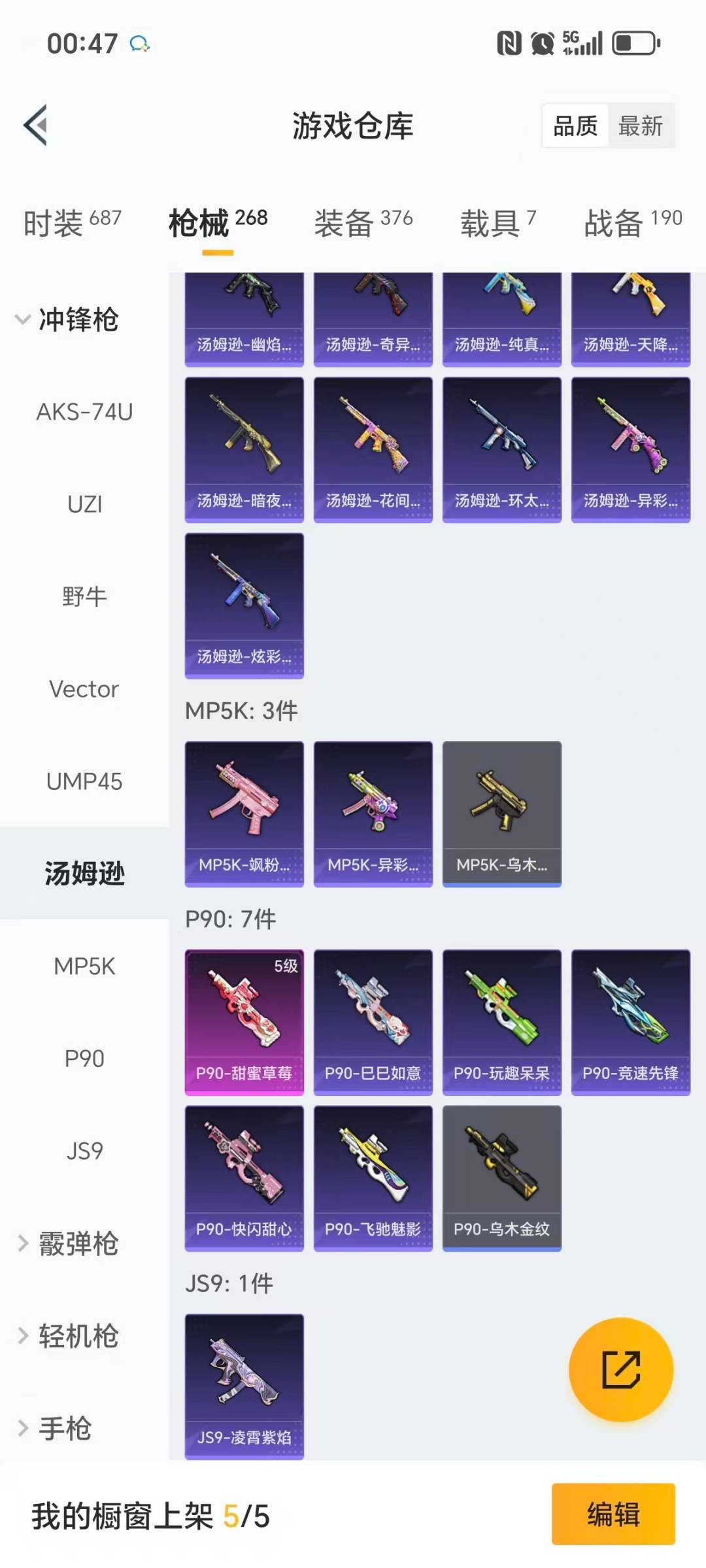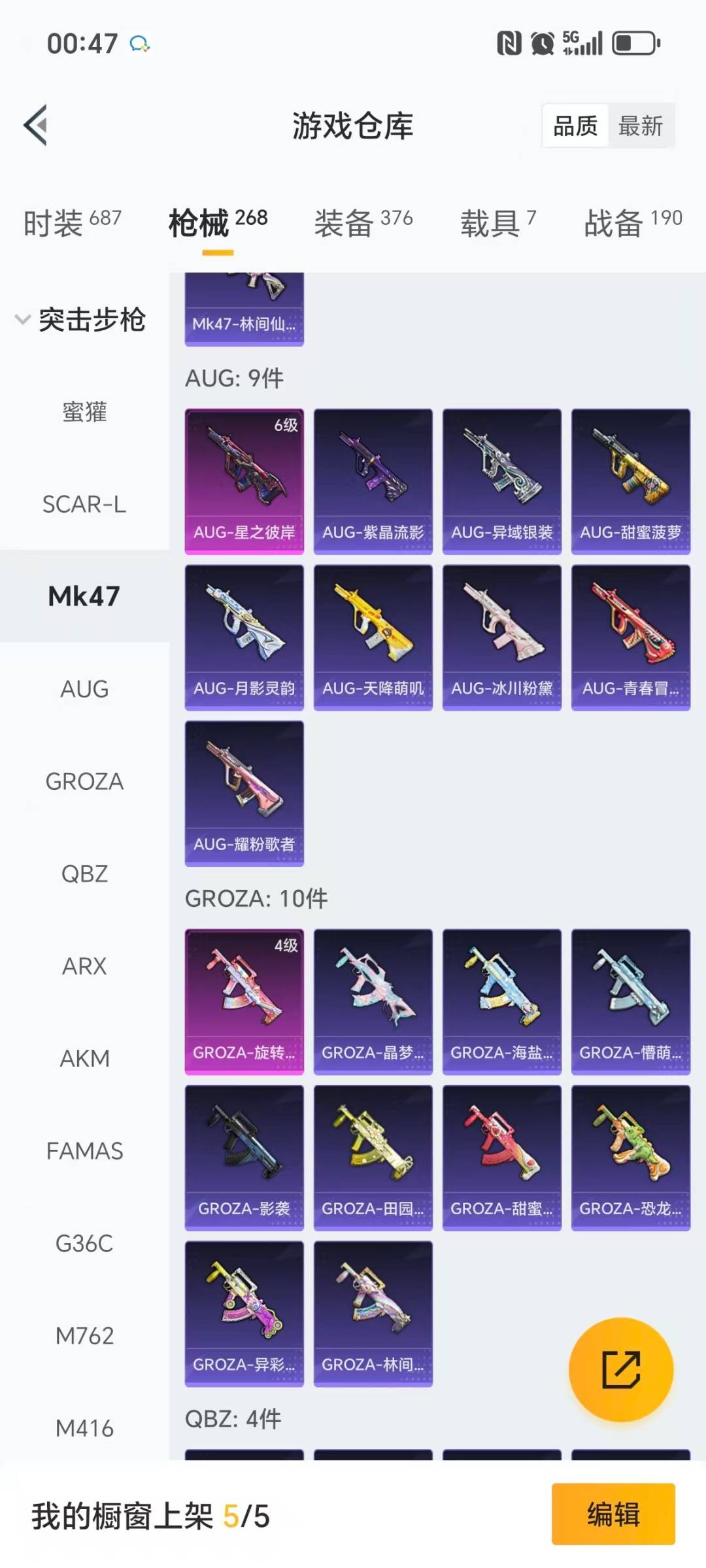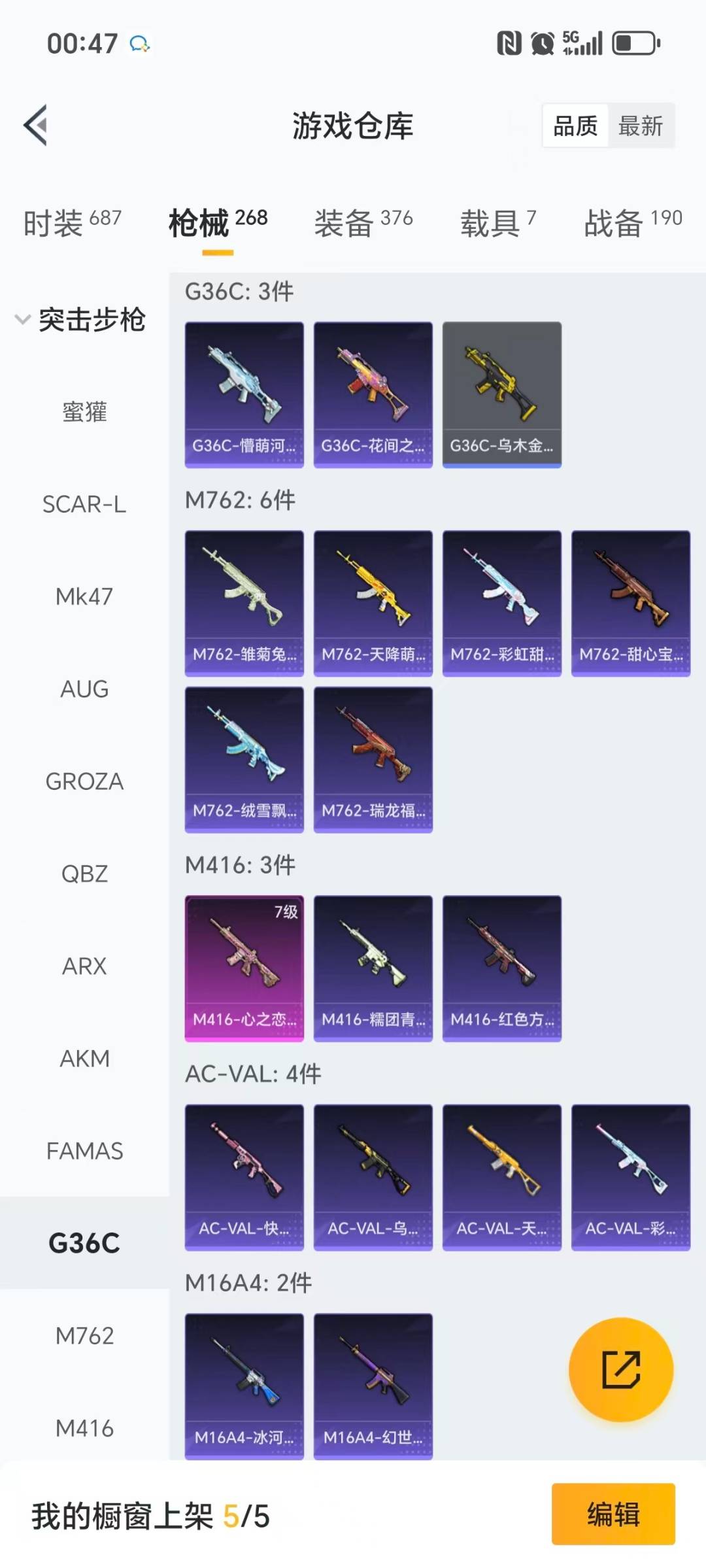 SCAR-L-梦幻火箭,AUG-星之彼岸,GROZA-旋转彩虹,AKM-甜心宝贝,M416-心之恋语,Kar98K-巳巳如意,UMP45-恐龙拽拽,P90-甜蜜草莓,PKM-江南烟雨,MG3-洛神天依,M249-彩虹甜喵