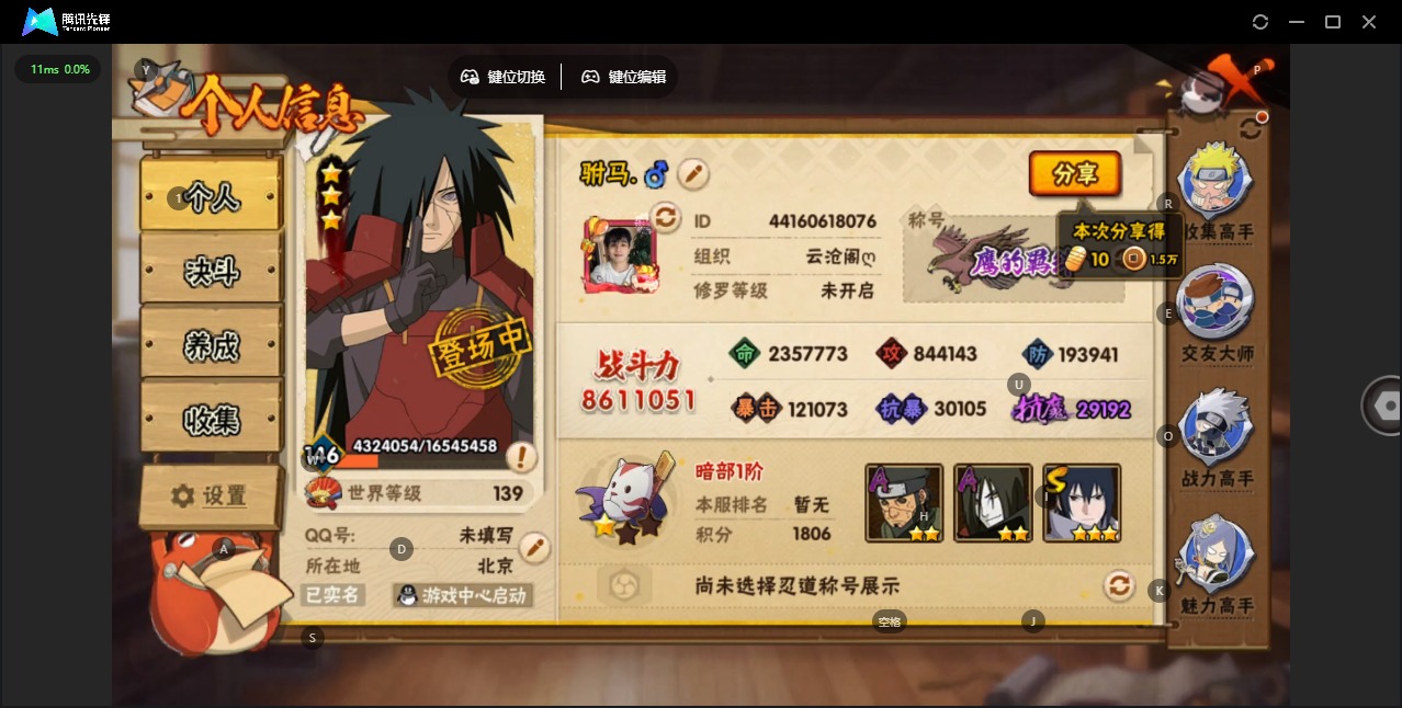 - 火影忍者手游/QQ/安卓QQ1-100区/1区宇智波佐助