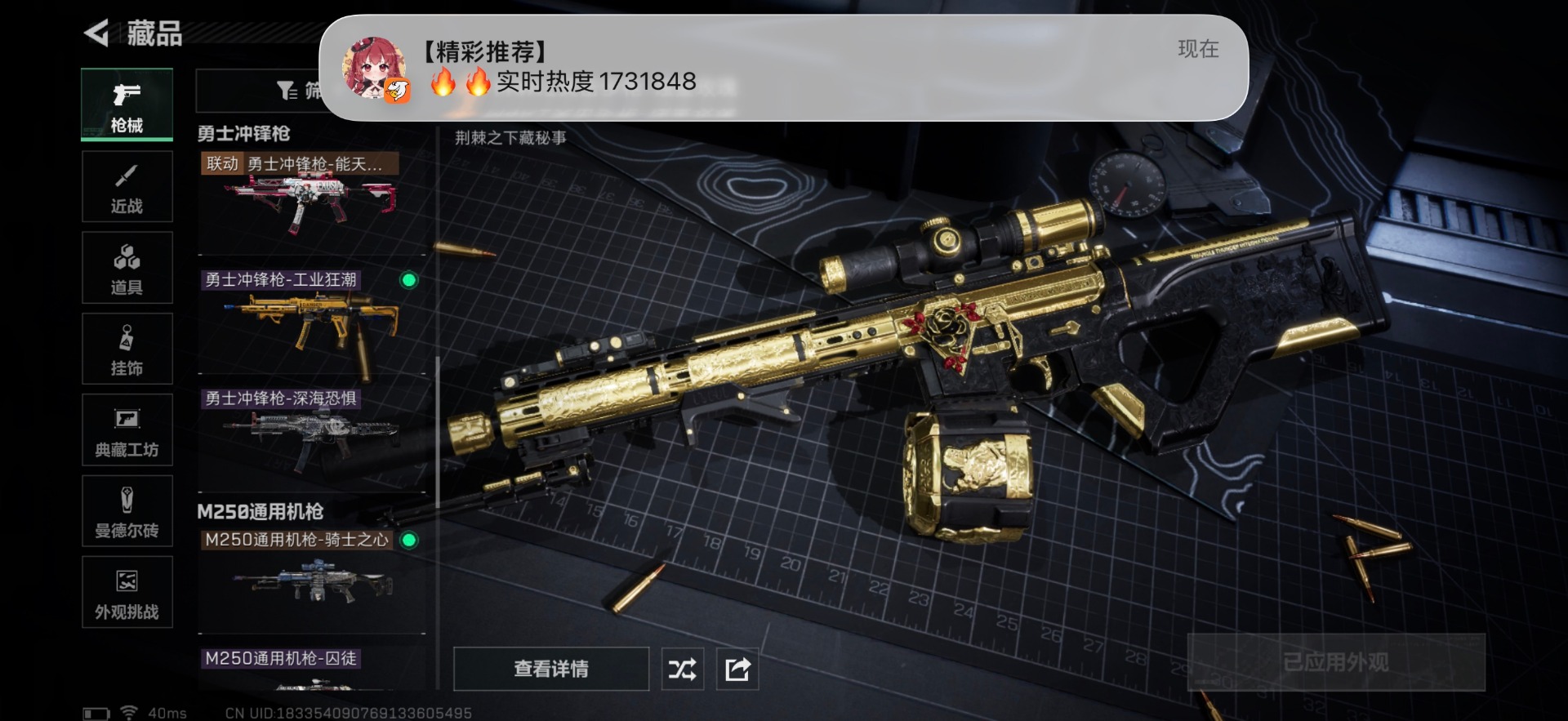 - [12337258]【商品标题】:广东一区-20V-3王者-1炫金 【热门武器】:M200-幻神,柯尔特-荣耀世冠白鲨2023,加特林-炼狱,毁灭-孙三炮,COP 357-幻灵 【王者炫金武器】:炫金毁灭 【稀有皮肤】:幻神-电流骇客 皮肤,幻神-荣耀世冠白鲨2023 皮肤,雷神-荣耀之魄,屠龙-荣耀之锋 【角色】:王者沙漠玫瑰,隼,战地猎狐,青霞仙子 【人偶武器】:毁灭-孙三炮,天龙-曼陀罗,M4A1-雷神-精英刀锋,迷你牛牛 【暴走生化】:超级对讲机 【挑战大师】:激光毁灭者III-白马银枪 【英雄级武器】:COP 357-幻灵,M4A1-雷神,M4A1-黑龙,M4A1-玫瑰精灵,加特林-炼狱,M200-幻神,AK47-黑鲨,死神-雪域霜狐,AK-47-猩红传说,M4A1-赤狱骑士,麒麟刺,擎天-云海游龙 【特殊枪械】:1炼狱