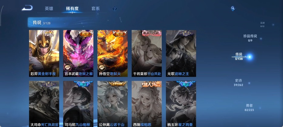 沈梦溪大漠名商,盾山御銮,曹操烛龙,苏烈千军破阵,典韦穷奇,达摩沙漠行僧,兰陵王金庭之子,明世隐疑决卦,白起狰,鬼谷子原初探秘者,狄仁杰万华元夜,芈月重明,程咬金演武夺筹,扁鹊炼金王,李元芳云中旅人,弈星混沌棋,虞姬凯尔特女王,钟馗驱傩正仪,狂铁御狮,太乙真人饕餮
