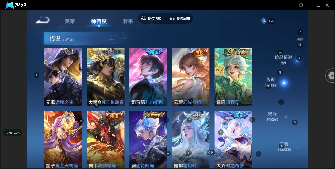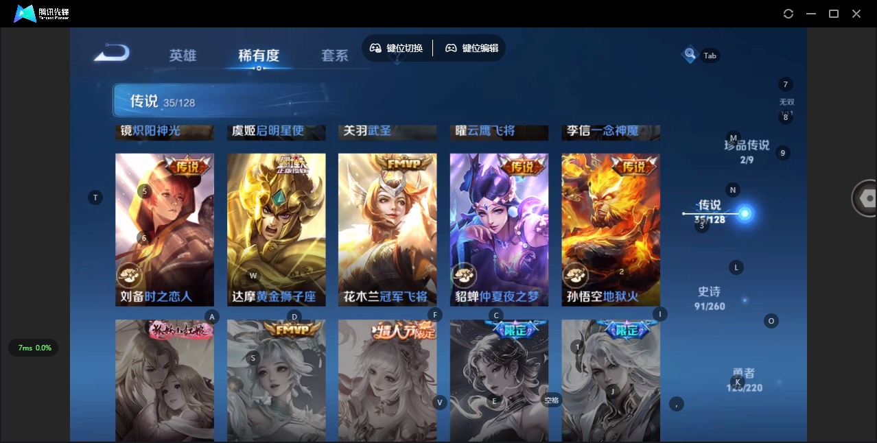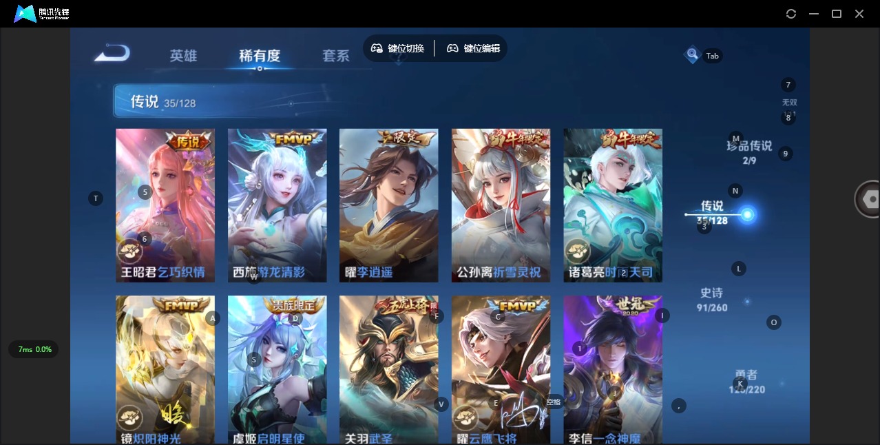 - [12259753]V7 1典藏 11传说 125英雄 235皮肤 可修改实名 优质装备:鸣剑·曳影,云鹰飞将(小将军),无双飞将,电玩·雷克斯,妄想奇谈,霜月吟,澜逐花归海,涂山容容 珍宝阁皮:胡桃夹子,万物之道 限定皮:愿照·九州拓(澜年限),愿照·岁时盈(虞姬年限),鸣野蒿,至尊宝,诗剑行,五谷丰年,梁祝,祈雪灵祝(雪兔子),天狼绘梦者,神器·万象笔,山海·玄木吟(马可年限) 史诗皮:赞萌露比,器灵·浮梦炉,化蝶舞,星界战将,谪仙醉月,龙之律动,石田雨龙,茶境仙,炽弈燎原,战舞者,上官婉儿群星魔术团,蔬乡物语(鲁班七号),百相守梦-黄忠,织梦人,守夜人,紫霞仙子,黄金分割率,特工魅影,千年之狐,江河有灵,百解令(蒙犽),蒙恬荣光圣徽,无限星赏官,匿光破解者,电玩·爆裂旋风,末日机甲-吕布,猫狗日记-大乔,修罗,女仆咖啡,水果甜心,星夜王子,德古拉伯爵,暗隐猎兽者,鬼剑武藏,心灵战警,舞动绿茵,地狱岩魂,拒霜思,缤纷独角兽,乘风破浪,逐浪之夏,水晶猎龙者,曙光守护者,箭羽风息,金属风暴,圣诞狂欢,圣诞恋歌,鹰眼统帅,魅力维加斯,赏金猎手,无心,未来纪元-赵云