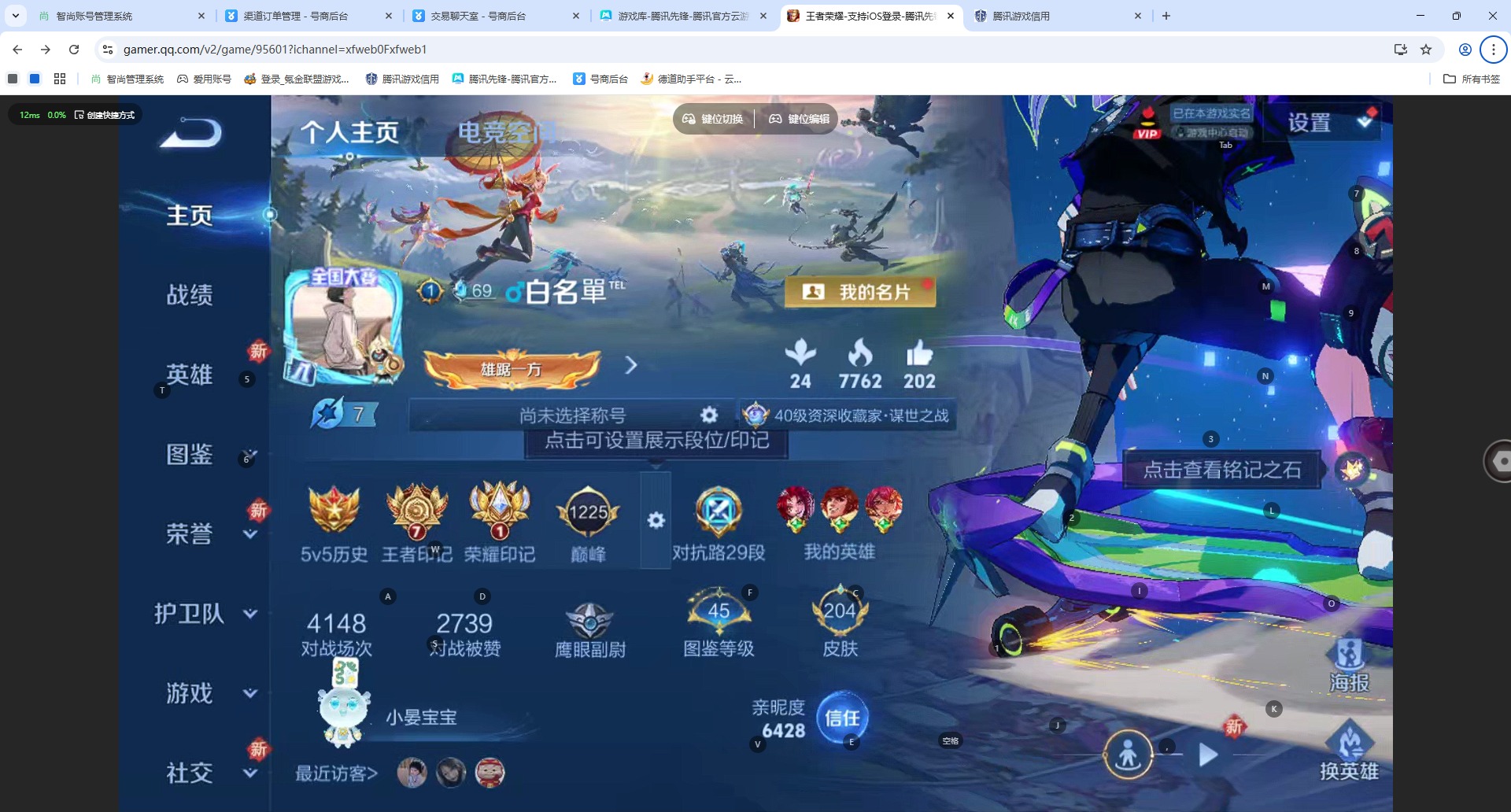 - [11294790]V10 8典藏 2无双 4珍品传说 57传说 125英雄 439皮肤 典藏英雄武则天 可修改实名 安全保护中 优质装备:无限飓风号(高达),大秦宣太后,鸣剑·曳影,全息碎影(猴子典藏),赤影疾锋,银白咏叹调(倪克斯侍卫),碎月剑心(李白无双),神鉴启示录,小乔时之魔女(小乔无双),拾光映像(瑶典藏),江户川柯南,怪盗基德,大耳狗之梦,朽木白哉,黄金狮子座,黄金射手座,冠军飞将,云鹰飞将(小将军),绛天战甲(鸡嘴战神),黄金白羊座,猫影幻舞,久胜战神,炽阳神光,一念神魔,云霓雀翎,末日机甲-孙尚香(绿蚂蚱),地狱火,仲夏夜之梦(大飞蛾),音你心动-小乔,海洋之心,地狱之眼,飞鸢探春,音你心动-周瑜,李逍遥,乞巧织情,时之恋人-刘备(电焊工),游龙清影(小青龙),淬星耀世,超时空战士-狄仁杰,末日机甲-孙策,花朝如约(花篮子),无双飞将,碎云,天秀幻梦,山海·苍雷引(电光曜子),记忆之芯(机甲兔),电玩·雷克斯,灼幽烈阳,惊梅引,遇见神鼓,小动物乐团,澜逐花归海,艾琳觅芳踪,琥珀纪元马超,金乌负日,朵莉亚心动手记,牧神诗旅 传说皮:乘龙·问璇玑(孙尚香年限),乘龙·铭钟鼎(赵云年限),乘龙·淬吴钩(孙策年限),祥瑞亨通,幻光神枪 珍宝阁皮:蔷薇恋人,玩趣恶龙 限定皮:愿照·九州拓(澜年限),逐霄战戟,鸣野蒿,白虎志(电光耗子),凤求凰(白切鸡),前尘镜,神威(电光马子),飞衡(韩信年限),至美·乘鲤谣,至美·化雀舞,遇见飞天,诗剑行,五谷丰年,青龙志(铠年限),冰锋战神,幽恒(沐浴露),逐梦之星,烈魂,奔雷神使(牛魔年限),李小龙,朱雀志(守约年限),辉光之辰,霸王别姬-项羽,奇迹圣诞,孙行者,猪悟能,天魔缭乱,冰霜恋舞曲,寅虎·心曲(虎婆),寅虎·赤拳(老虎年限),玉兔公主 史诗皮:鸭鸭历险记-刘禅,星界特工,星界战将,灵蛊蚀心,石田雨龙,茶境仙,海诺心动手记,奇遇星旅,曹操夜都魔契,乘龙·聚宝船(安琪拉年限),乘龙·忆丹青(大乔年限),琥珀纪元伽罗,百相守梦-百里守约,百相守梦-黄忠,遇见神鹿,紫霞仙子,苍穹之光,电玩小子(小书包),白龙吟,黄金分割率,特工魅影,千年之狐,永昼,真我赫兹(镜),末日机甲-莱西奥,江河有灵,高渐离燃音魔法,银翎春语,蒙恬荣光圣徽,偶像歌手,龙骑士(小龙虾),白蛇,暗夜猫娘,魅语,无限星赏官,晚萤,冰冠公主,青蛇,