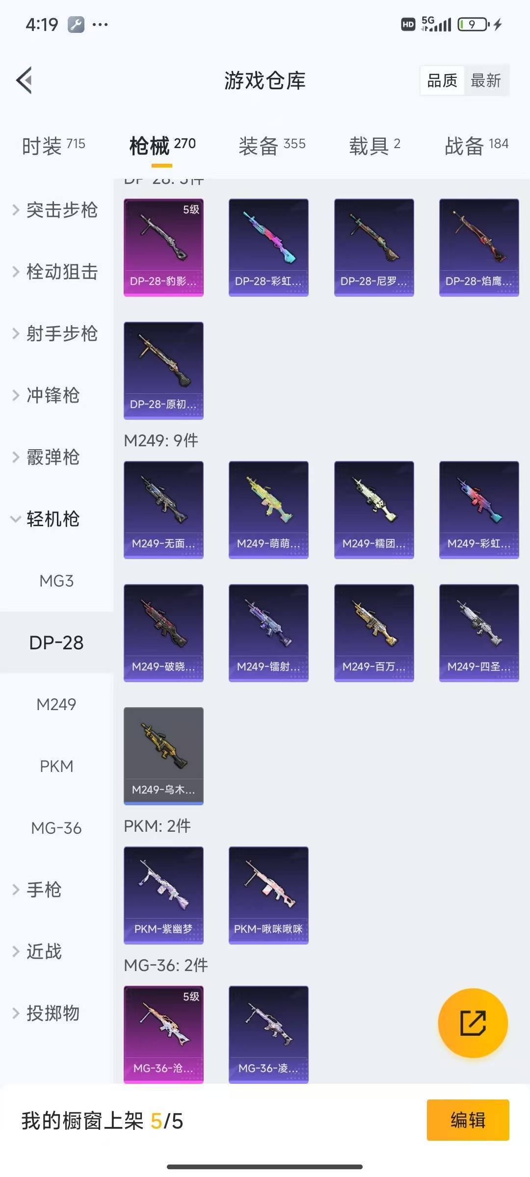 - PX_2106718-1-安卓Q-英勇黄金-44014热力值 2王牌印记 历史超级王牌1星 90套装 144枪皮 【1载具】 仰望U7先锋版(阿盖尔紫) 【1稀有】 AWM-黄金龙骨 【1粉装】 梦幻火箭 【4特效枪】 M416-电玩时刻 (5级) AKM-绿萝繁花 (5级) Kar98K-巳巳如意 (5级) DP-28-圣堂之誓 (7级) 【2飞行器】 梦幻火箭飞行器 夜幕颂歌飞行器 【7热门】