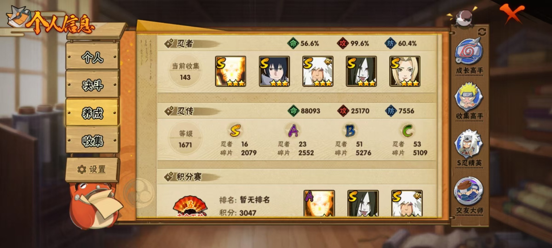 - [12089580]V11 36S忍 50A忍 20通灵 1350.3W战力 可二次 可修改实名 优质装备:千手柱间「秽土转生」,罗砂「四代目风影」,宇智波鼬「秽土转生」,佩恩·天道「超」,药师兜「仙人模式」,宇智波斑「秽土转生」,艾「三代目雷影」,半藏「秽土转生」,千手扉间「秽土转生」,纲手「百豪」,无「二代目土影」,波风水门「秽土转生」,金角/银角「秽土转生」,猿飞日斩「秽土转生」,长门「秽土转生」,宇智波斑,千手柱间,神秘面具男,鬼灯幻月「二代目水影」,大野木「三代目土影」,迈特凯「死门」,宇智波带土 「忍界大战」,“宇智波斑” 「白面具」,漩涡鸣人 「九喇嘛连结」,春野樱 「忍界大战」,宇智波佐助「永恒万花筒」,艾「忍界大战」,旗木卡卡西「须佐能乎」,自来也 「传说中的三忍」 S级忍者:自来也 「舞之豪杰」,宇智波鼬 「须佐能乎」,佩恩「天道」,波风水门,大蛇丸,自来也,纲手