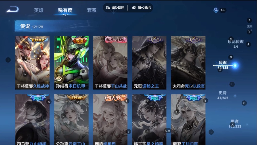 - [12090028]V8 1典藏 18传说 124英雄 273皮肤 可修改实名 优质装备:鸣剑·曳影,黄金狮子座,云鹰飞将(小将军),久胜战神,炽阳神光,一念神魔,地狱之眼,李逍遥,无双飞将,山海·苍雷引(电光曜子),燃星之曲,浮生妄,电玩·雷克斯,霜月吟,琥珀纪元马超 传说皮:祥瑞亨通 珍宝阁皮:妄想食味,蔷薇恋人,玩趣恶龙 限定皮:鸣野蒿,武陵仙君(小桃花),神威(电光马子),飞衡(韩信年限),高山流水,五谷丰年,冰锋战神,梁祝,李小龙,猪悟能,一生所爱,冰霜恋舞曲,匿光追影者 史诗皮:星界战将,石田雨龙,茶境仙,怒海争锋,破空之剑,上官婉儿群星魔术团,百相守梦-百里守约,星界特工,百相守梦-黄忠,紫霞仙子,苍穹之光,电玩小子(小书包),特工魅影,千年之狐,鹤归松栖(赵怀真),真我赫兹(镜),魅语,蒙恬荣光圣徽,偶像歌手,晚萤,电玩·爆裂旋风,龙骑士(小龙虾),猫狗日记-孙策,猫狗日记-大乔,乱世虎臣,节奏热浪,修罗,女仆咖啡,摇滚巨星,水果甜心,天才门将,星夜王子,心灵骇客,德古拉伯爵,暗隐猎兽者,幽灵船长,鬼剑武藏,心灵战警,天秀·启明,地狱岩魂,纤云弄巧,繁星吟游(呼啦呼啦),拒霜思,逐浪之夏,月团寄思,水晶猎龙者,曙光守护者,金属风暴,原初追逐者,圣诞狂欢,圣诞恋歌,鹰眼统帅,黎明之约,未来纪元-赵云,玫瑰异探