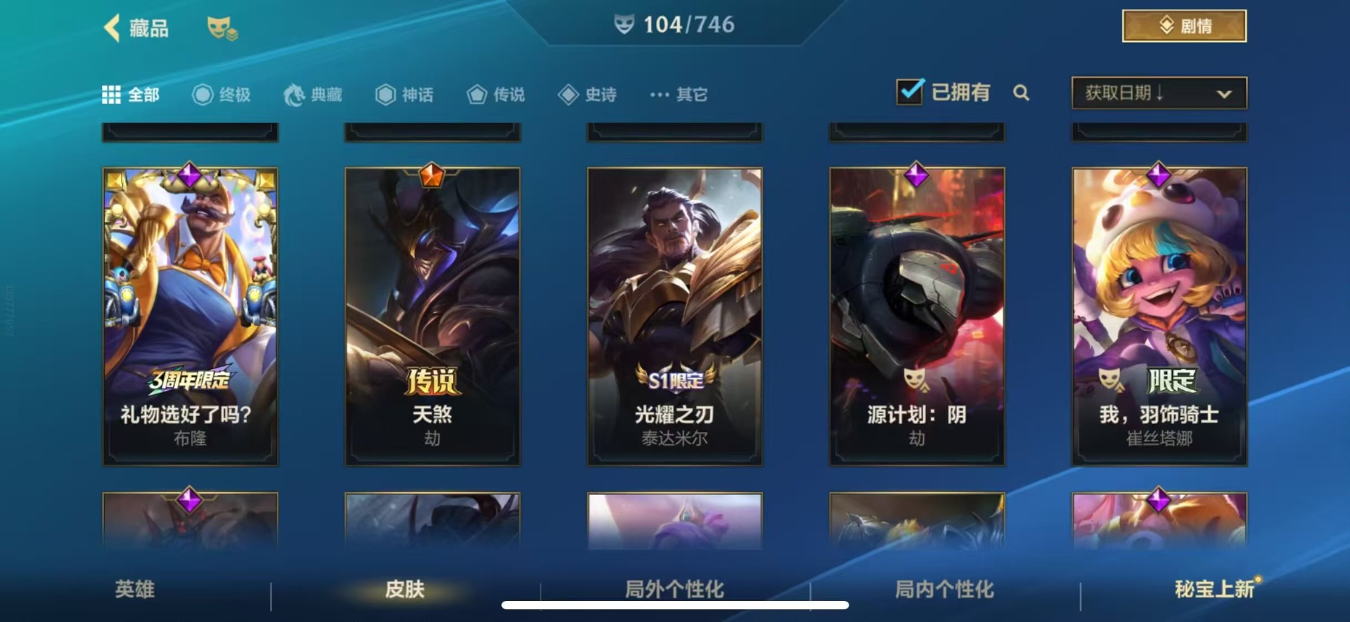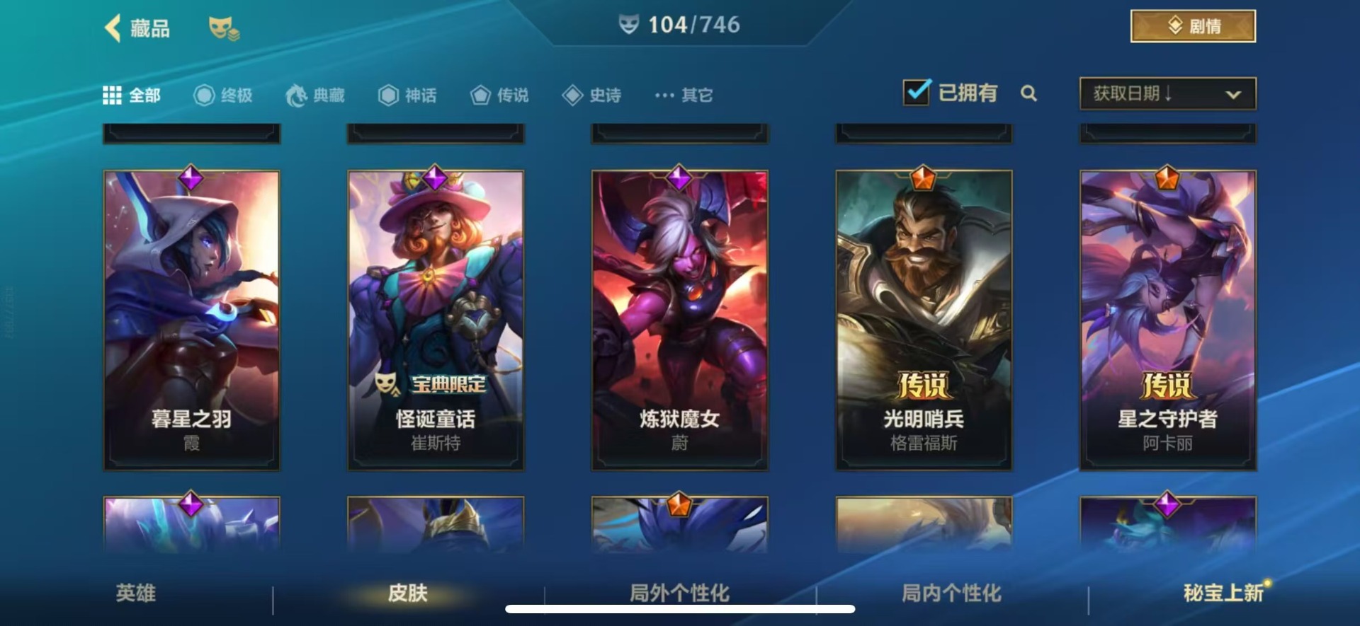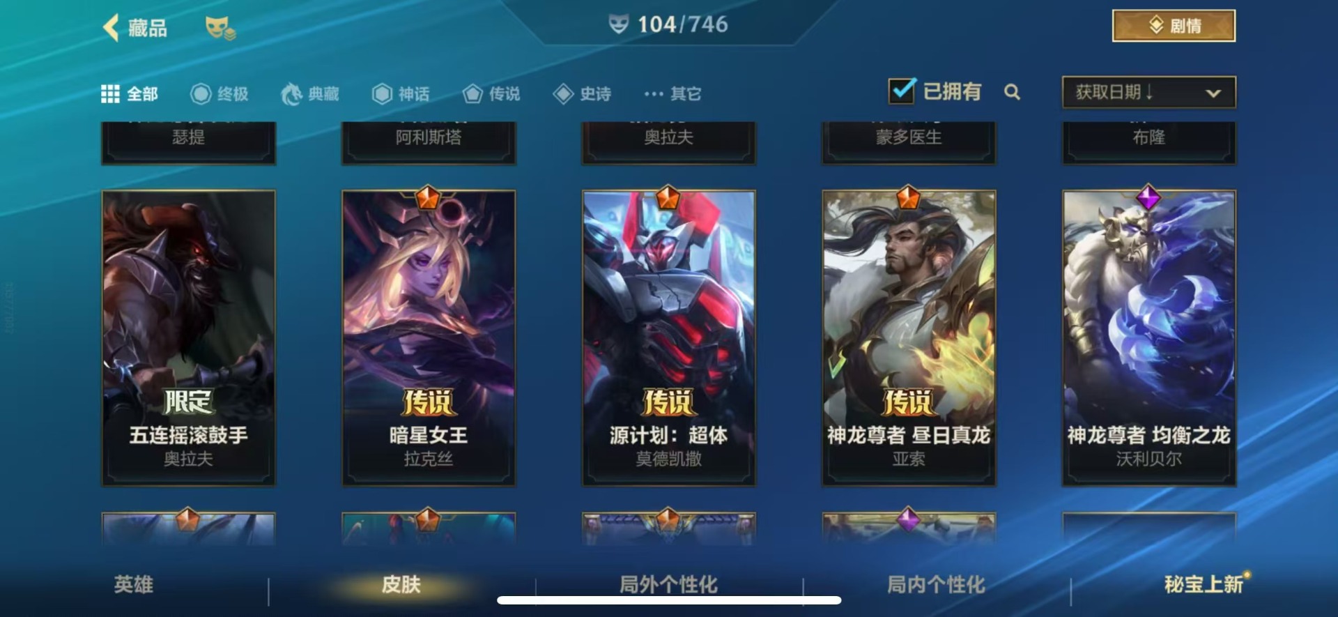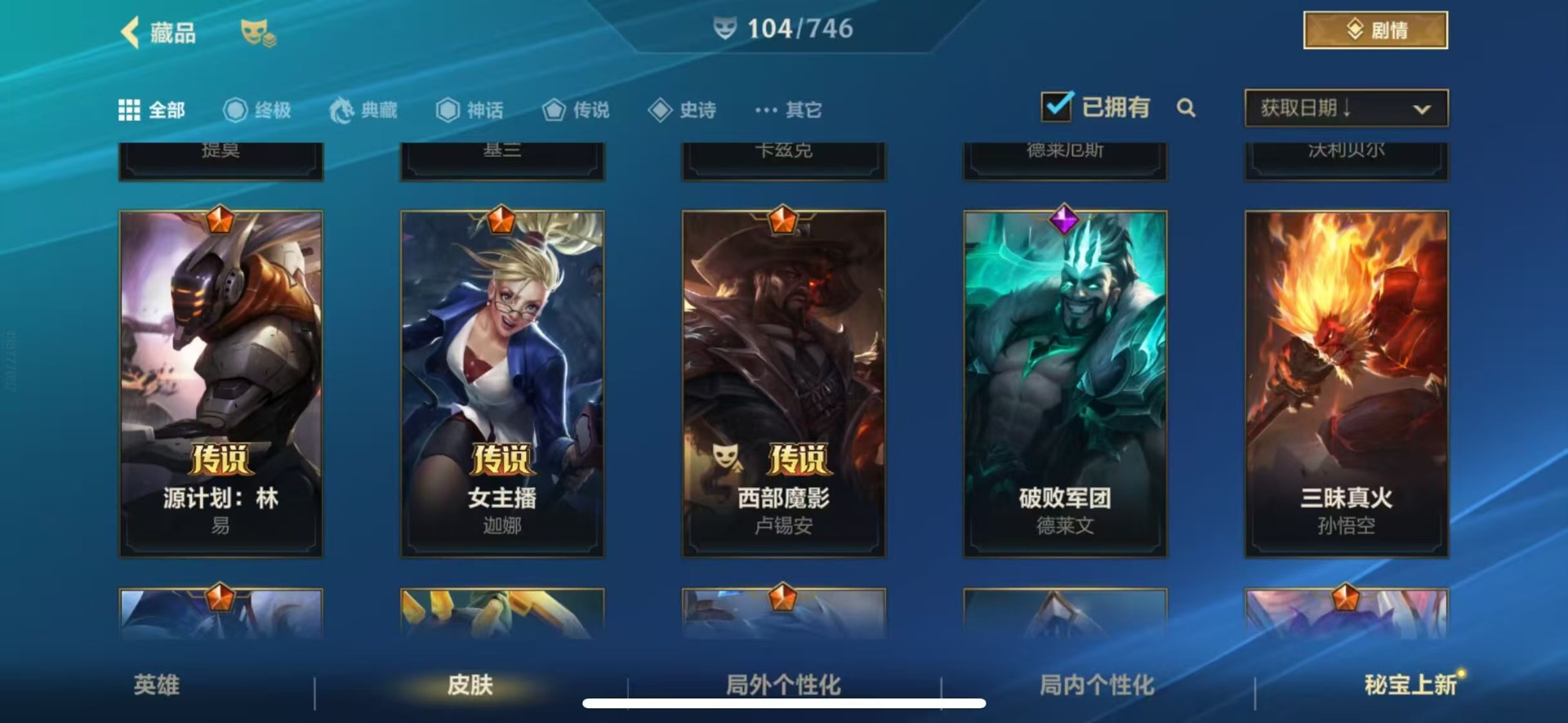 - [11528746]V8 11传说 124英雄 174皮肤 可修改实名 优质装备:末日机甲-孙尚香(绿蚂蚱),地狱火,零号·赤焰 传说皮:幻光神枪 珍宝阁皮:妄想食味 限定皮:鸣野蒿,至尊宝,白虎志(电光耗子),凤求凰(白切鸡),凤凰于飞,太华(伽罗年限),武陵仙君(小桃花),时之彼端,魔法小厨娘,梁祝,天狼狩猎者,李小龙,辉光之辰,一生所爱,大圣娶亲,天魔缭乱,青春决赛季 史诗皮:百相守梦-黄忠,紫霞仙子,电玩小子(小书包),白龙吟,黄金分割率,特工魅影,千年之狐,偶像歌手,龙骑士(小龙虾),节奏热浪,修罗,女仆咖啡,摇滚巨星,水果甜心,星夜王子,功夫厨神,暗隐猎兽者,幽灵船长,鬼剑武藏,心灵战警,舞动绿茵,纤云弄巧,繁星吟游(呼啦呼啦),缤纷独角兽,逐浪之夏,曙光守护者,圣诞狂欢,圣诞恋歌,鹰眼统帅,未来纪元-赵云