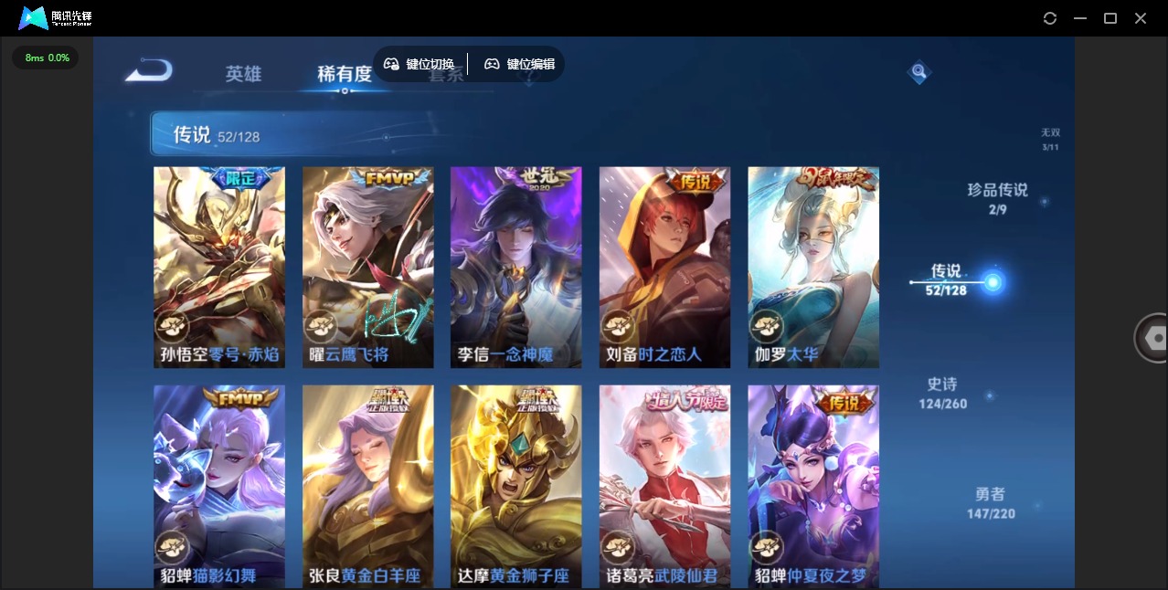 - [11658700]V7 2典藏 1传说 125英雄 141皮肤 典藏英雄武则天 可修改实名 荣耀水晶:全息碎影(猴子典藏),星空梦想(太空人) 传说皮:海洋之心 珍宝阁皮:万物之道 限定皮:大圣娶亲 史诗皮:龙之律动,幻珠鲛人,苍穹之光,白龙吟,千年之狐,冰冠公主,偶像歌手,魅语,末日机甲-吕布,女仆咖啡,水果甜心,天才门将,星夜王子,心灵骇客,功夫厨神,德古拉伯爵,暗隐猎兽者,幽灵船长,纤云弄巧,圣诞恋歌,鹰眼统帅,魅力维加斯