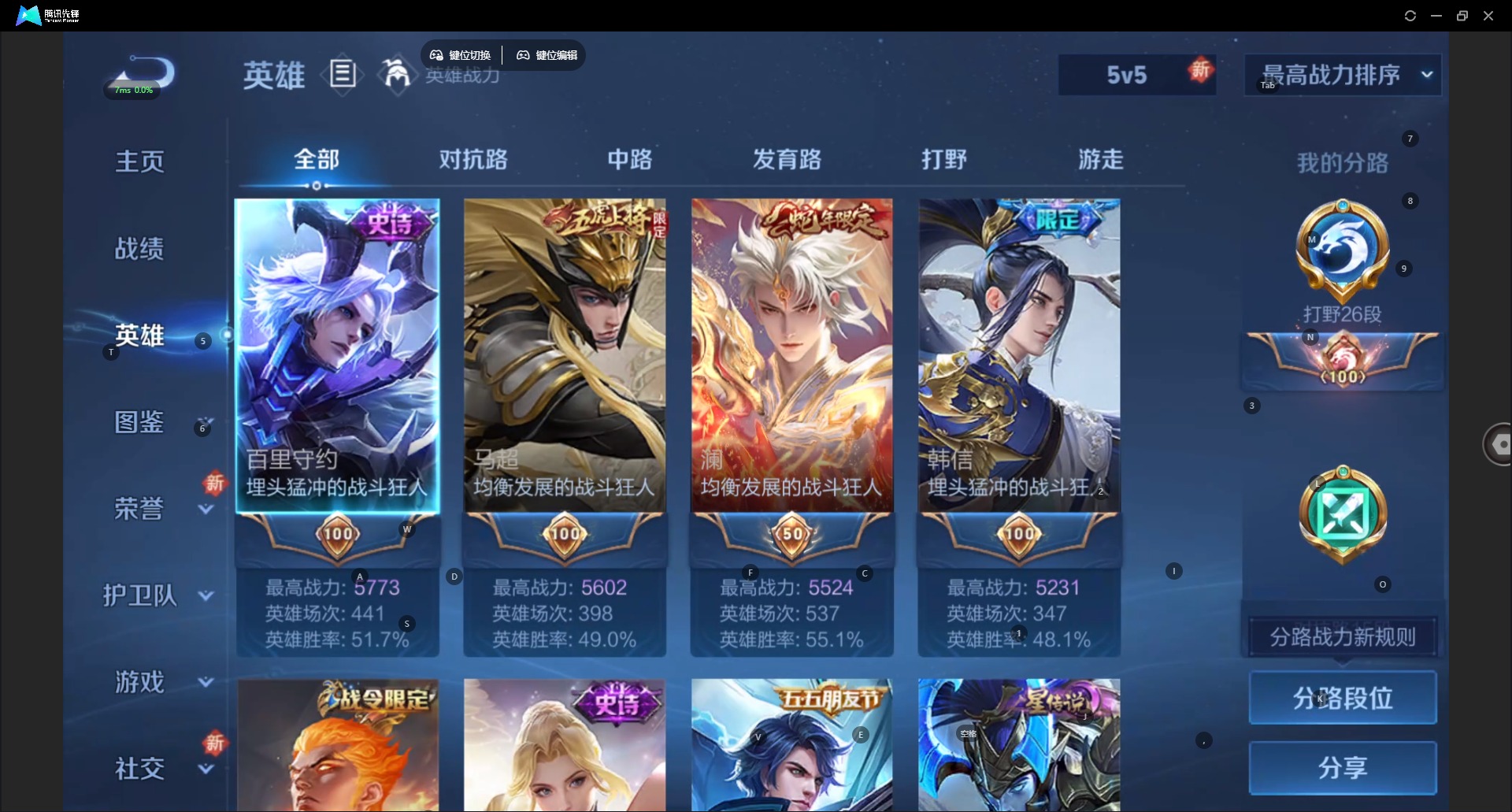 - [11655490]V8 2典藏 1无双 3珍品传说 17传说 124英雄 216皮肤 可修改实名 安全保护中 李白小国标 优质装备:鸣剑·曳影,九霄神辉(木兰典藏),器灵·螭龙剑,怪盗基德,器灵·落星盏,黄金狮子座,炽阳神光,无双飞将,山海·苍雷引(电光曜子),燃星之曲,浮生妄,记忆之芯(机甲兔),霜月吟,澜逐花归海 珍品传说:时之奇旅-孙策 传说皮:祥瑞亨通 珍宝阁皮:妄想食味 限定皮:愿照·九州拓(澜年限),愿照·山河定(司空震年限),逐霄战戟,鸣野蒿,神威(电光马子),飞衡(韩信年限),诗剑行,李小龙,圣诞老人,寅虎·赤拳(老虎年限),启示之音,山海·玄木吟(马可年限) 史诗皮:鸭鸭历险记-刘禅,飞车小橘子,器灵·浮梦炉,糖绘人间,化蝶舞,星界战将,谪仙醉月,龙之律动,藏狐·褐绒,百相守梦-周瑜,茶境仙,破空之剑,超元猎域,百相守梦-百里守约,百相守梦-黄忠,紫霞仙子,千年之狐,永昼,江河有灵,魅语,百解令(蒙犽),高渐离燃音魔法,蒙恬荣光圣徽,冰冠公主,偶像歌手,晚萤,暗夜猫娘,末日机甲-吕布,节奏热浪,修罗,女仆咖啡,摇滚巨星,水果甜心,星夜王子,功夫厨神,暗隐猎兽者,幽灵船长,鬼剑武藏,舞动绿茵,地狱岩魂,纤云弄巧,缤纷独角兽,乘风破浪,逐浪之夏,水晶猎龙者,箭羽风息,金属风暴,原初追逐者,圣诞狂欢,圣诞恋歌,鹰眼统帅,魅力维加斯,黎明之约,赏金猎手,未来纪元-赵云