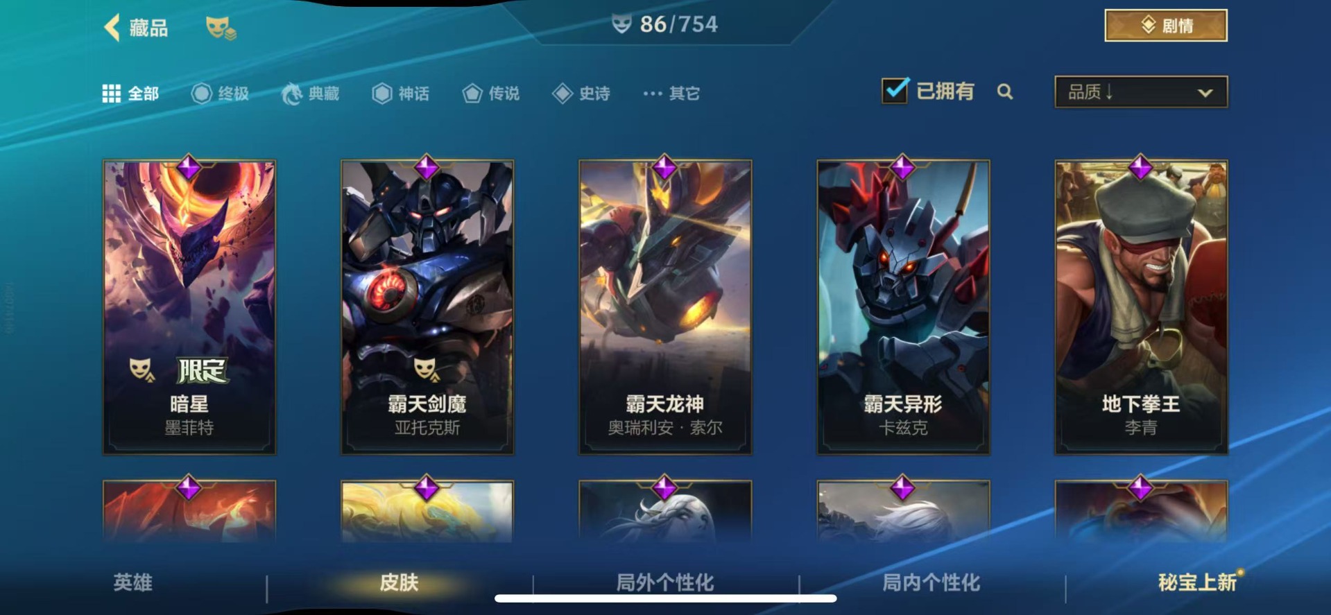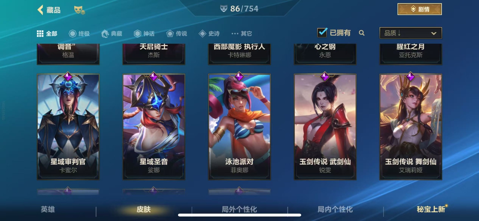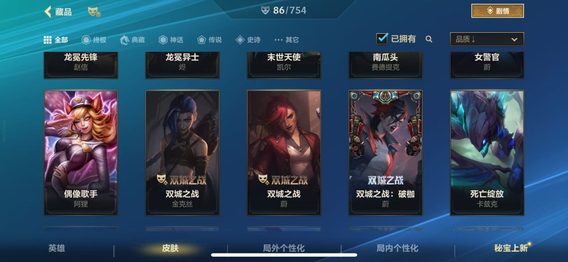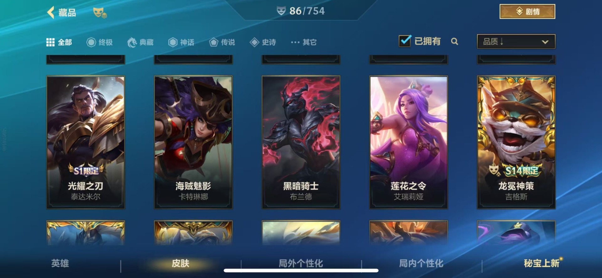 - PX_2082487-贵族等级: V5 英雄数: 120 皮肤数: 97 珍品传说: 朽木白哉,黑崎一护 星传说: 未来机甲 传说皮: 末日机甲-孙尚香,幻光神枪 限定皮: 游园惊梦,五谷丰年,鸣野蒿