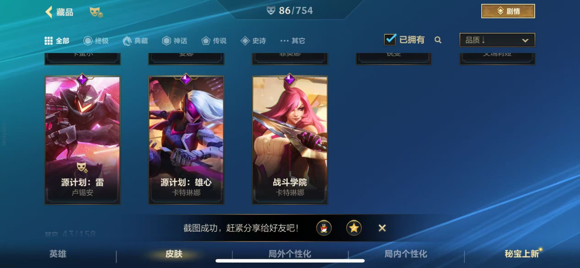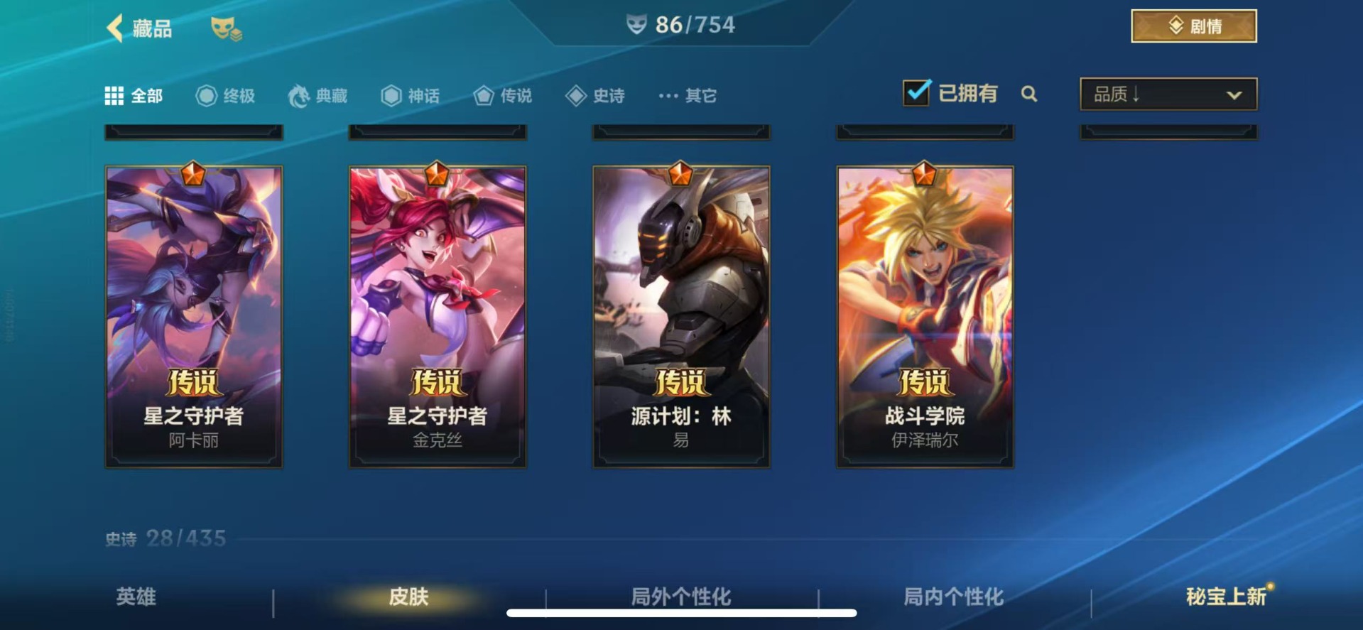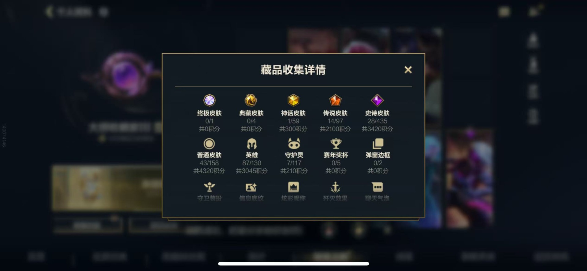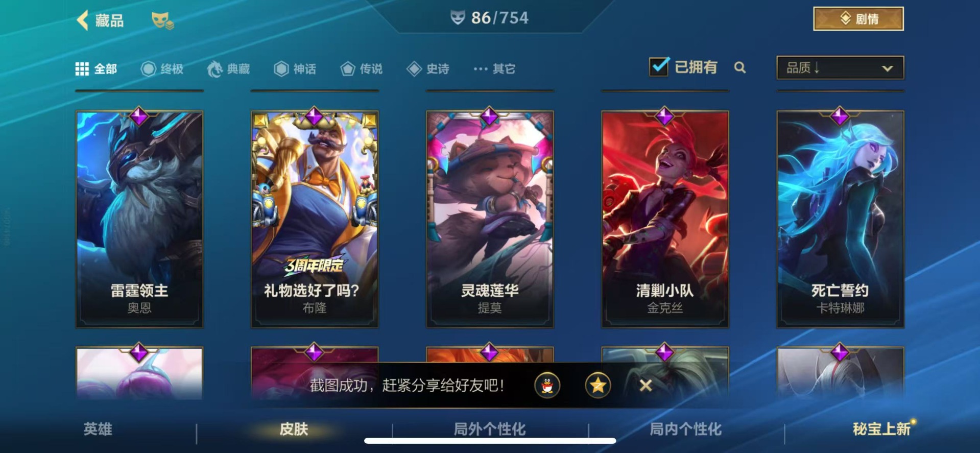 - PX_2082487-贵族等级: V5 英雄数: 120 皮肤数: 97 珍品传说: 朽木白哉,黑崎一护 星传说: 未来机甲 传说皮: 末日机甲-孙尚香,幻光神枪 限定皮: 游园惊梦,五谷丰年,鸣野蒿