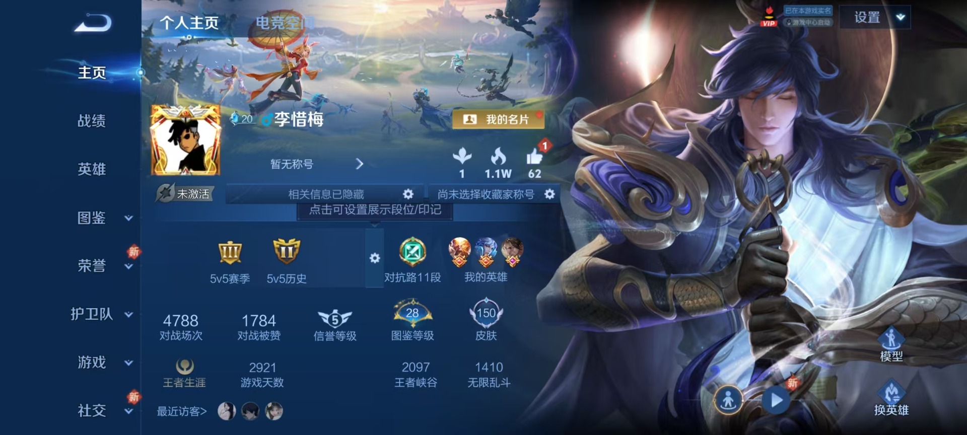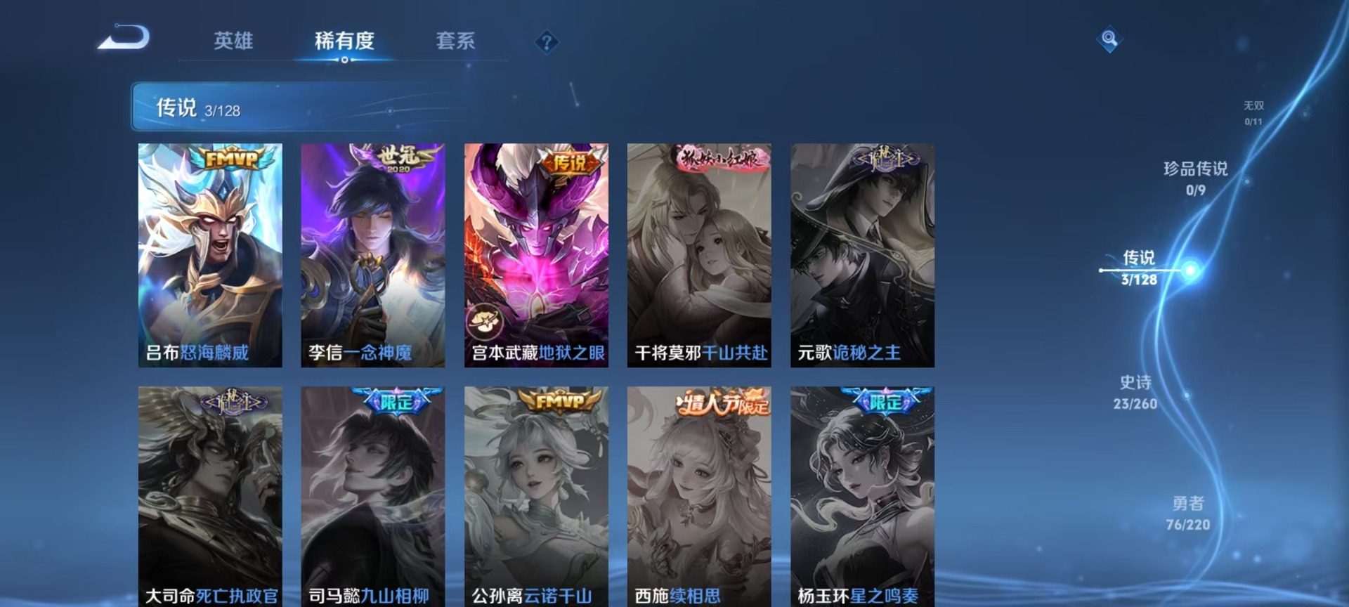 - [12234195]V8 1典藏 1无双 24传说 124英雄 311皮肤 可修改实名 优质装备:弑枪猎影(韩信典藏),器灵·螭龙剑,云鹰飞将(小将军),久胜战神,炽阳神光,一念神魔,仲夏夜之梦(大飞蛾),李逍遥,乞巧织情,游龙清影(小青龙),挚爱之约,无双飞将,山海·苍雷引(电光曜子),澜逐花归海,诡秘之主,涂山容容 传说皮:乘龙·问璇玑(孙尚香年限),续相思,幻光神枪 珍宝阁皮:妄想食味,优雅恋人,蔷薇恋人,女武神 限定皮:愿照·九州拓(澜年限),愿照·山河定(司空震年限),鸣野蒿,至尊宝,白虎志(电光耗子),凤求凰(白切鸡),傲雪梅枪,前尘镜,神威(电光马子),飞衡(韩信年限),至美·乘鲤谣,遇见飞天,五谷丰年,梁祝,祈雪灵祝(雪兔子),天狼绘梦者,李小龙,大圣娶亲,冰霜恋舞曲,时之祈愿-云中君,玉兔公主,山海·玄木吟(马可年限) 史诗皮:器灵·浮梦炉,化蝶舞,星界战将,龙之律动,百相守梦-周瑜,破空之剑,涂山红红,东方月初,蔬乡物语(鲁班七号),织梦人,遇见神鹿,紫霞仙子,电玩小子(小书包),黄金分割率,特工魅影,千年之狐,永昼,江河有灵,魅语,百解令(蒙犽),蒙恬荣光圣徽,无限星赏官,冰冠公主,偶像歌手,晚萤,电玩·爆裂旋风,暗夜猫娘,末日机甲-吕布,猫狗日记-孙策,乱世虎臣,节奏热浪,修罗,女仆咖啡,摇滚巨星,水果甜心,绅士熊喵,天才门将,星夜王子,心灵骇客,功夫厨神,德古拉伯爵,暗隐猎兽者,幽灵船长,鬼剑武藏,舞动绿茵,地狱岩魂,诗语江南,纤云弄巧,繁星吟游(呼啦呼啦),拒霜思,缤纷独角兽,乘风破浪,逐浪之夏,月团寄思,水晶猎龙者,曙光守护者,热力回旋,箭羽风息,金属风暴,原初追逐者,圣诞恋歌,鹰眼统帅,魅力维加斯,黎明之约,无心,未来纪元-赵云