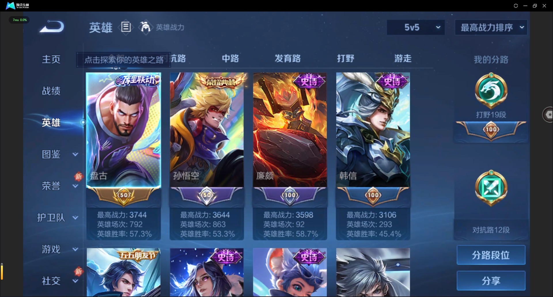 - [12175929]V7 1典藏 6传说 124英雄 206皮肤 可修改实名 优质装备:弑枪猎影(韩信典藏),末日机甲-孙尚香(绿蚂蚱),地狱火,仲夏夜之梦(大飞蛾) 传说皮:典韦战鼓燎原,幻光神枪 珍宝阁皮:蔷薇恋人 限定皮:愿照·千秋盛(女娲年限),逐霄战戟,神威(电光马子),遇见飞天,高山流水,冰锋战神,梁祝,烈魂,李小龙,辉光之辰,孙行者 史诗皮:器灵·浮梦炉,化蝶舞,雪豹·霜爪,石田雨龙,战舞者,埋骨钱,琥珀纪元伽罗,蔬乡物语(鲁班七号),百相守梦-百里守约,紫霞仙子,电玩小子(小书包),黄金分割率,特工魅影,千年之狐,偶像歌手,女仆咖啡,摇滚巨星,绅士熊喵,时之奇旅-安琪拉,暗隐猎兽者,鬼剑武藏,繁星吟游(呼啦呼啦),缤纷独角兽,水晶猎龙者,曙光守护者,圣诞狂欢,鹰眼统帅,魅力维加斯,赏金猎手,未来纪元-赵云
