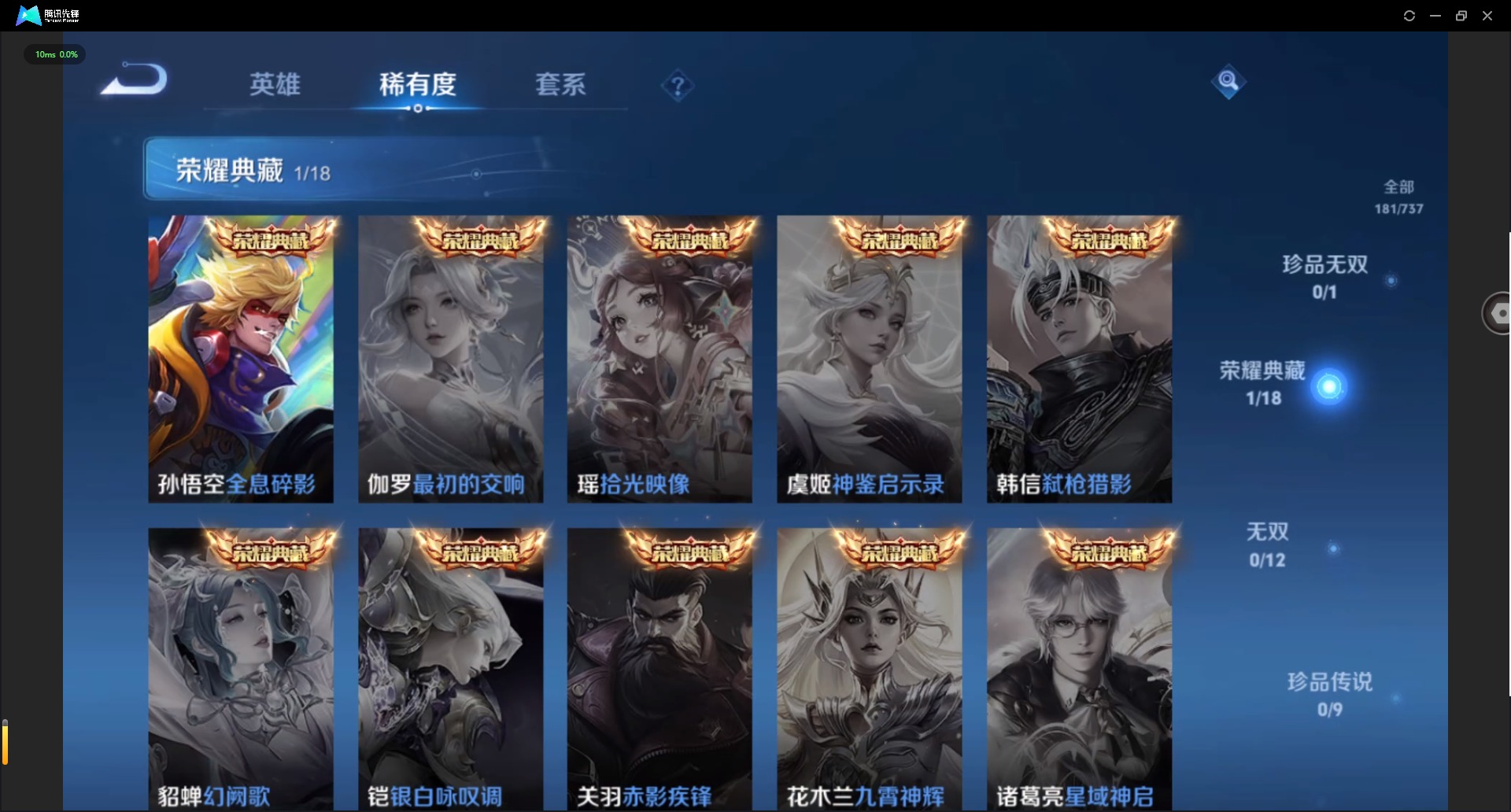 - [11685916]V10 10典藏 30传说 126英雄 419皮肤 典藏英雄武则天 可修改实名 优质装备:天鹅之梦(小乔典藏),星空梦想(太空人),倪克斯神谕(宇宙婆娘),无限飓风号(高达),活力突击,杀手不太冷,大秦宣太后,鸣剑·曳影,全息碎影(猴子典藏),神鉴启示录,黄金狮子座,黄金射手座,冠军飞将,云鹰飞将(小将军),绛天战甲(鸡嘴战神),黄金白羊座,猫影幻舞,久胜战神,炽阳神光,一念神魔,云霓雀翎,地狱火,零号·赤焰,地狱之眼,飞鸢探春,胖达荣荣,乞巧织情,时之恋人-刘备(电焊工),游龙清影(小青龙),淬星耀世,艾琳觅芳踪,涂山容容 传说皮:幻光神枪 珍宝阁皮:妄想食味,优雅恋人,玩趣恶龙 限定皮:陌上桑,鸣野蒿,傲雪梅枪,补天,星穹之声,白晶晶,时雨天司(水龙头),神威(电光马子),遇见飞天,高山流水,降魔,五谷丰年,冰锋战神,幽恒(沐浴露),天狼运算者,梁祝,御风骁将(吕布年限),天狼狩猎者,逐梦之星,烈魂,天狼溯光者,奔雷神使(牛魔年限),祈雪灵祝(雪兔子),李小龙,逐梦之影,逐梦之光,朱雀志(守约年限),霸王别姬-项羽,霸王别姬-虞姬,奇迹圣诞,默契交锋-兰陵王,默契交锋-花木兰,冰霜恋舞曲,乒乒小将,神奇女侠,匿光追影者,女儿国国王,深海之息(深海大菠萝),唐三藏 史诗皮:灵蛊蚀心,星界战将,幻珠鲛人,破空之剑,东方月初,琥珀纪元伽罗,百相守梦-黄忠,织梦人,遇见神鹿,紫霞仙子,苍穹之光,电玩小子(小书包),黄金分割率,特工魅影,千年之狐,永昼,江河有灵,魅语,百解令(蒙犽),高渐离燃音魔法,蒙恬荣光圣徽,无限星赏官,冰冠公主,青蛇,偶像歌手,白蛇,晚萤,暗夜猫娘,龙骑士(小龙虾),末日机甲-吕布,猫狗日记-孙策,猫狗日记-大乔,乱世虎臣,节奏热浪,修罗,女仆咖啡,摇滚巨星,水果甜心,绅士熊喵,天才门将,星夜王子,心灵骇客,时之奇旅-安琪拉,功夫厨神,德古拉伯爵,暗隐猎兽者,幽灵船长,鬼剑武藏,暗渊魔法,心灵战警,乐园奇幻夜,天秀·启明,舞动绿茵,地狱岩魂,诗语江南,纤云弄巧,拒霜思,缤纷独角兽,乘风破浪,逐浪之夏,水晶猎龙者,曙光守护者,热力回旋,箭羽风息,金属风暴,原初追逐者,圣诞狂欢,圣诞恋歌,鹰眼统帅,暗夜贵公子,魅力维加斯,黎明之约,赏金猎手,滕王阁序,未来纪元-赵云