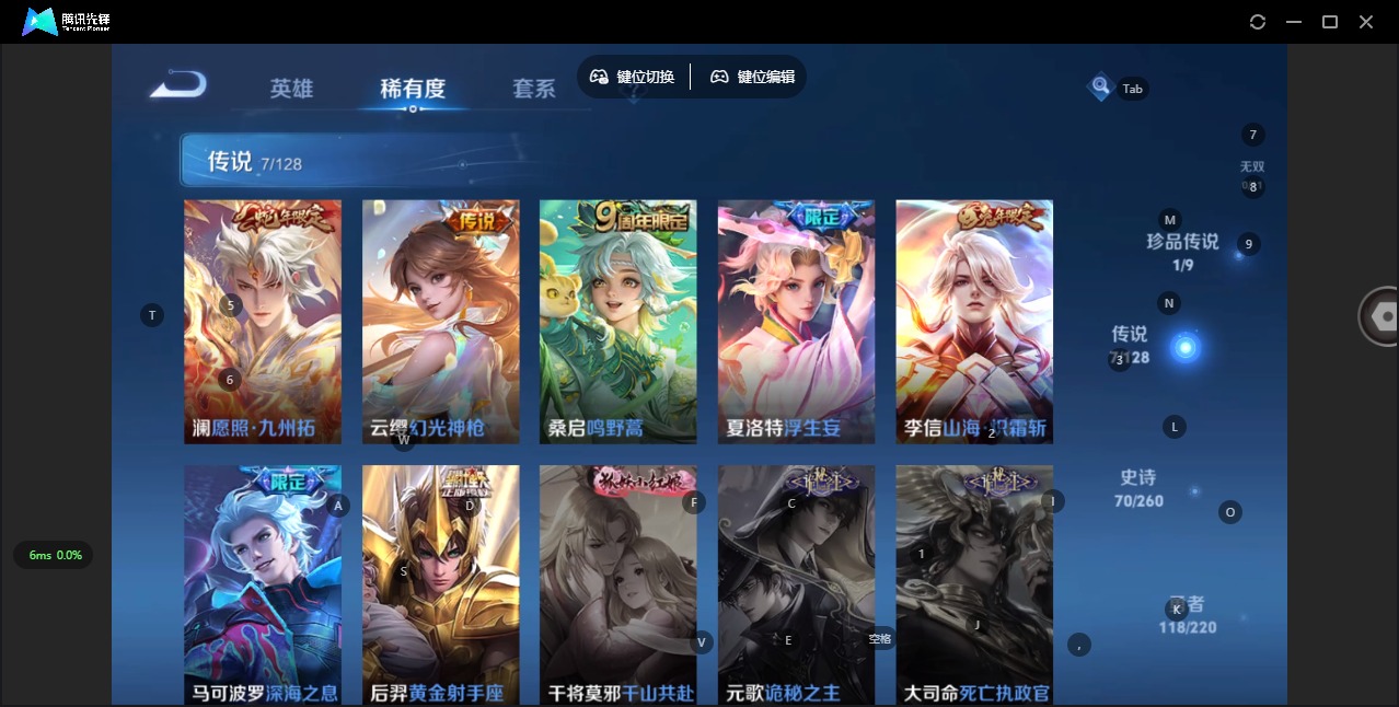 - [11680470]V7 1珍品传说 4传说 121英雄 185皮肤 可修改实名 优质装备:仲夏夜之梦(大飞蛾),超时空战士-狄仁杰,花朝如约(花篮子),妄想实况 珍品传说:时之奇旅-孙策 限定皮:遇见飞天,五谷丰年,冰锋战神,天狼狩猎者,大圣娶亲 史诗皮:器灵·浮梦炉,狼魂孤将,谪仙醉月,破空之剑,决胜骁骑,百相守梦-百里守约,遇见神鹿,紫霞仙子,黄金分割率,千年之狐,青蛇,末日机甲-吕布,猫狗日记-孙策,女仆咖啡,摇滚巨星,水果甜心,心灵骇客,德古拉伯爵,鬼剑武藏,繁星吟游(呼啦呼啦),箭羽风息,金属风暴,圣诞狂欢,鹰眼统帅,魅力维加斯,无心