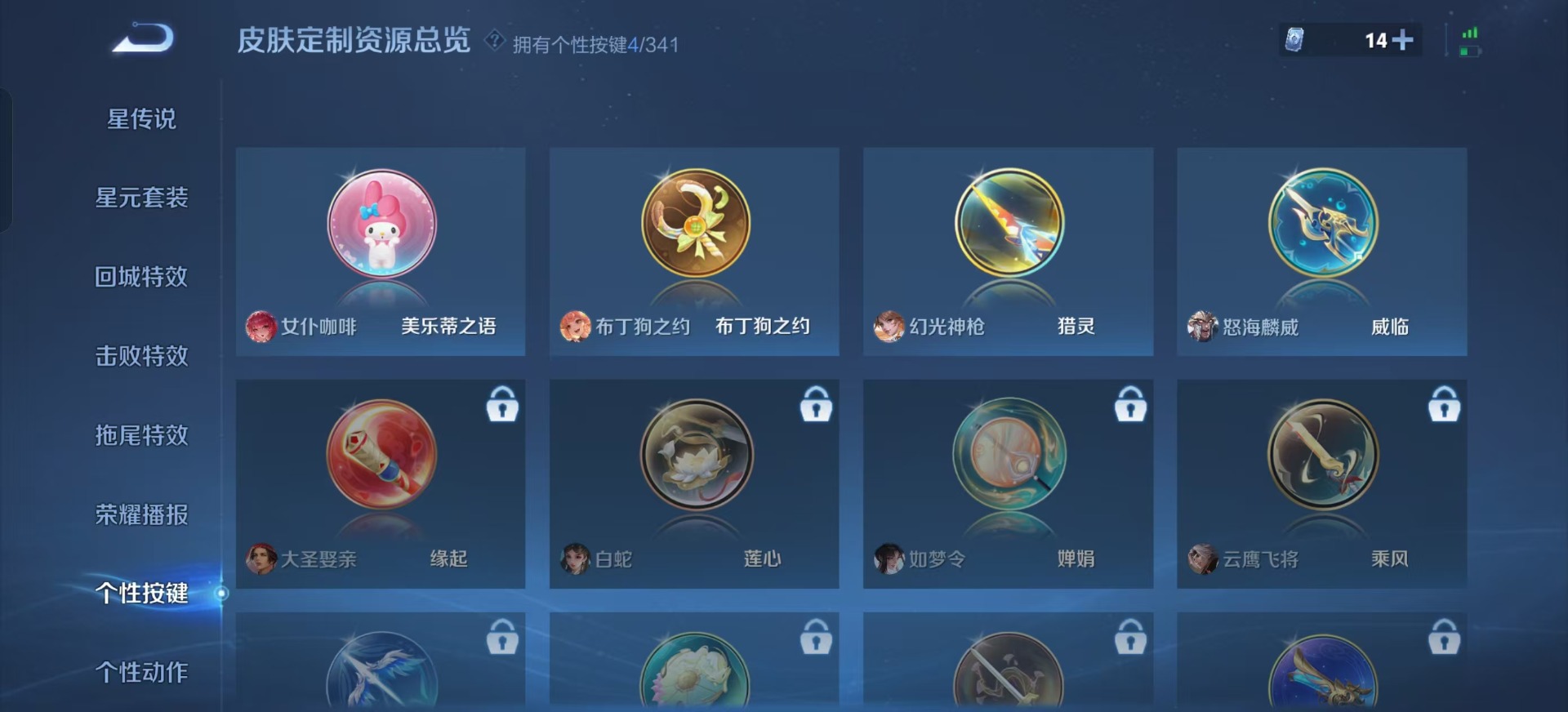 刘邦夺宝奇兵,夏侯惇朔风刀,老夫子醍醐杖,沈梦溪星空之诺,沈梦溪大漠名商,盾山御銮,曹操烛龙,苏烈千军破阵,典韦穷奇,典韦蓝屏警告,达摩沙漠行僧,牛魔御旌,鲁班七号狮舞东方,吕布猎兽之王,元歌云间偶戏,兰陵王金庭之子,裴擒虎擒涛扼浪,鲁班大师探海日志,明世隐疑决卦,蒙犽狂想玩偶喵,马可波罗暗影游猎,鬼谷子原初探秘者,张良古海寻踪,女娲朔望之晖,桑启海盐诗旅,嬴政白昼王子,狄仁杰万华元夜,芈月重明,程咬金演武夺筹,李元芳银河之约,李元芳云中旅人,弈星混沌棋,米莱狄御霄,钟馗神迹守卫,钟馗驱傩正仪,狂铁御狮