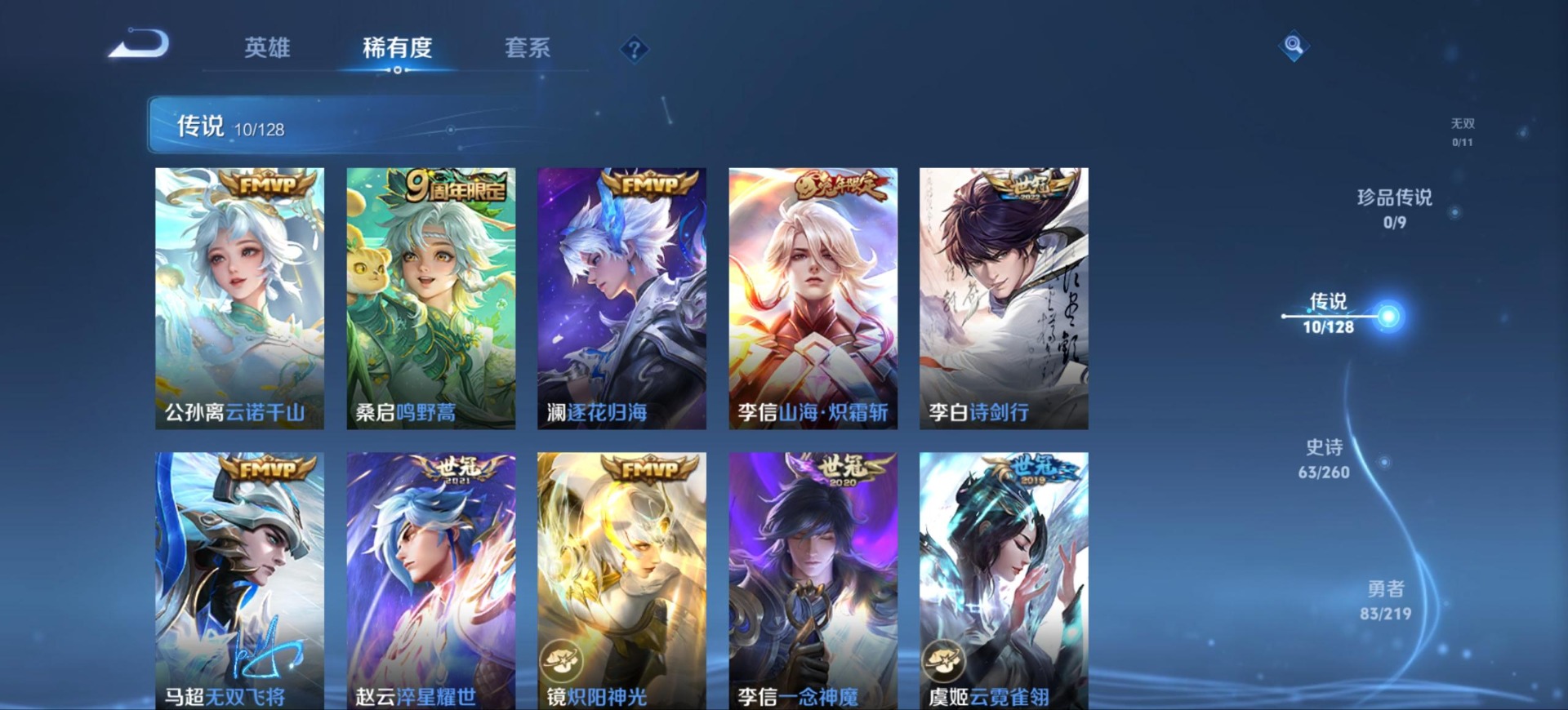 裴擒虎李小龙,上官婉儿梁祝,李白诗剑行,马可波罗山海·玄木吟,桑启鸣野蒿,孙悟空孙行者,马超神威,韩信傲雪梅枪,百里守约朱雀志
