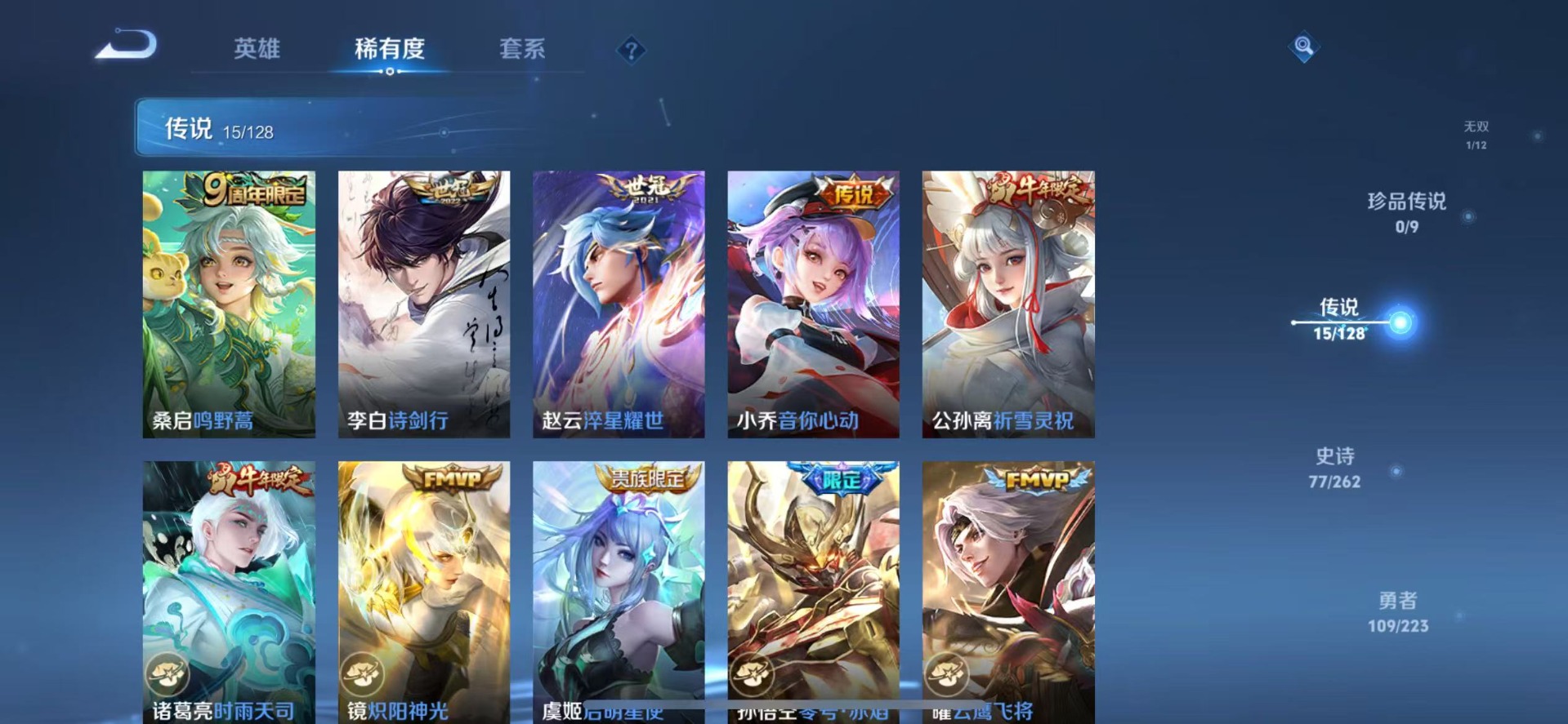 - [11788866]V7 5传说 123英雄 147皮肤 可修改实名 优质装备:云鹰飞将(小将军),猫影幻舞,末日机甲-孙尚香(绿蚂蚱),地狱火,超时空战士-狄仁杰,涂山容容 限定皮:至尊宝,天狼运算者,天狼征服者,天狼绘梦者,李小龙,大圣娶亲 史诗皮:龙之律动,石田雨龙,百相守梦-周瑜,紫霞仙子,特工魅影,千年之狐,无限星赏官,时之恋人-孙尚香,乱世虎臣,节奏热浪,水果甜心,德古拉伯爵,鬼剑武藏,地狱岩魂,纤云弄巧,繁星吟游(呼啦呼啦),缤纷独角兽,逐浪之夏,曙光守护者,箭羽风息,金属风暴,圣诞恋歌,鹰眼统帅,未来纪元-赵云