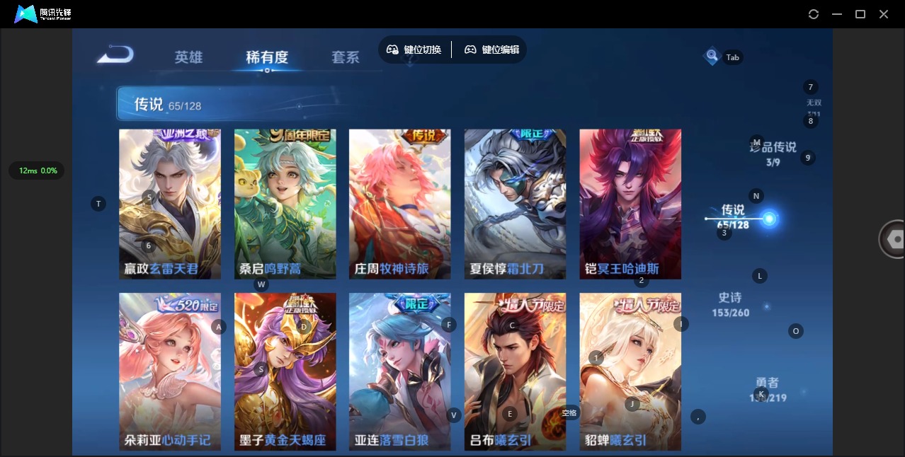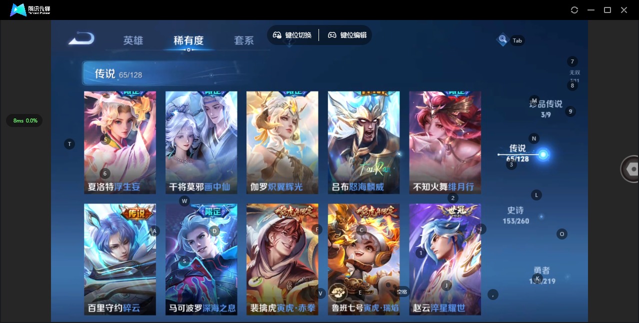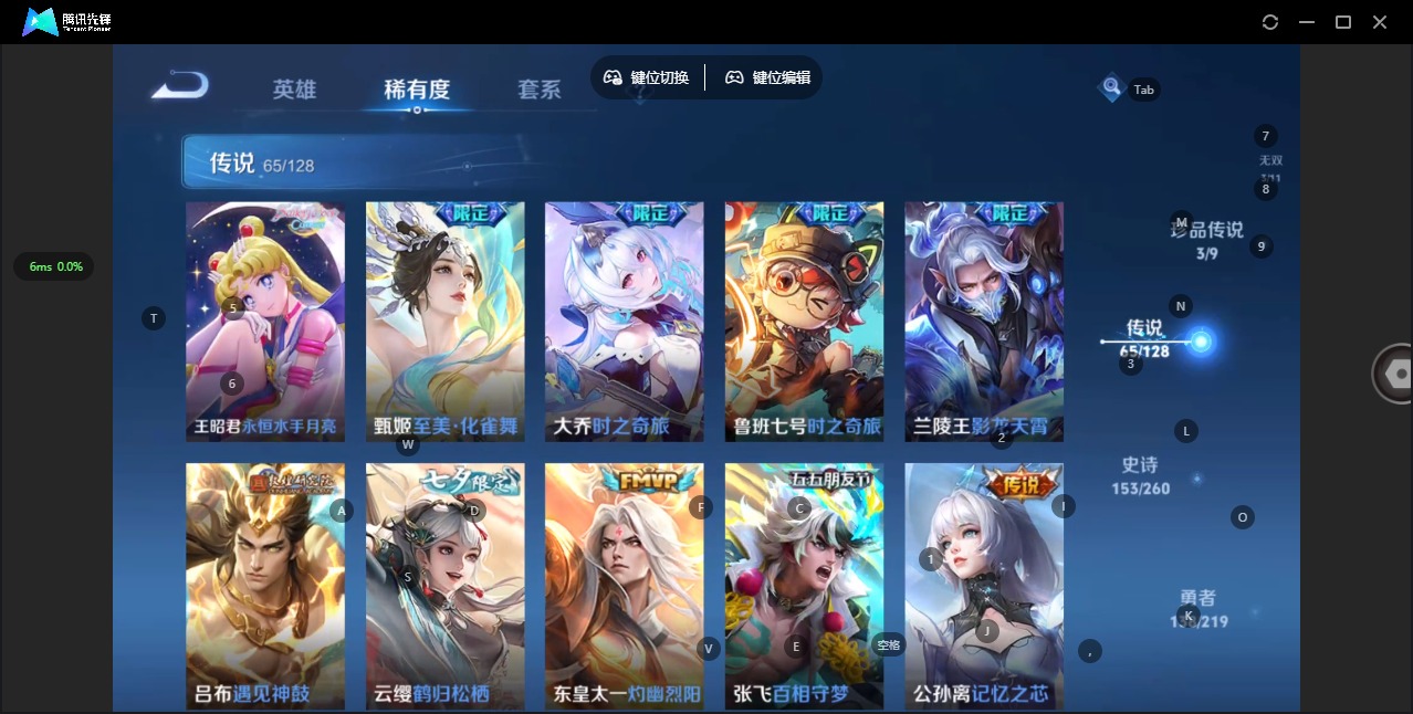 - PX_2094461-32 安卓QQ/尊贵铂金/300皮肤/122英雄/1典藏/0珍品无双/0无双/0珍品传说/20传说/83史诗/8稀有英雄 【1 典藏皮肤】鸣剑·曳影 李白, 【20 传说皮肤】启明星使 虞姬,无双飞将 马超,云鹰飞将 曜,齐天大圣 孙悟空,武陵仙君 诸葛亮,炽阳神光 镜,遇见神鼓 吕布,曦玄引 吕布,怒海麟威 吕布,时之恋人 刘备,久胜战神 干将莫邪,末日机甲 孙尚香,末日机