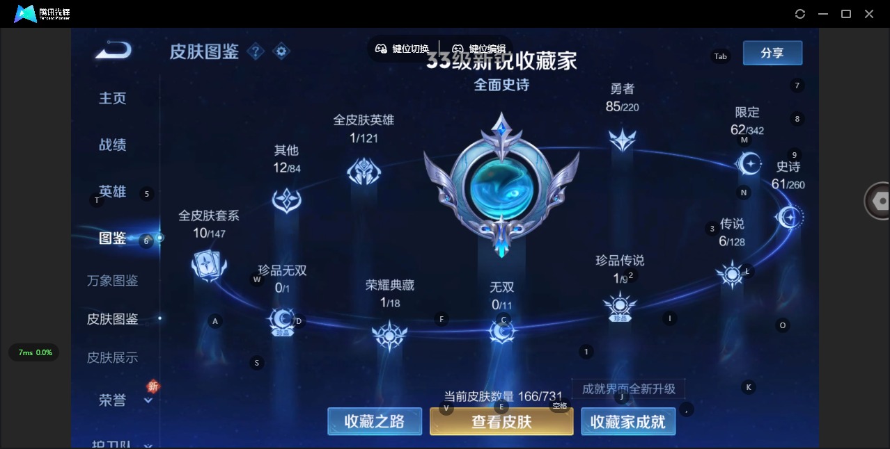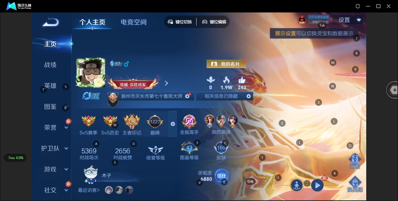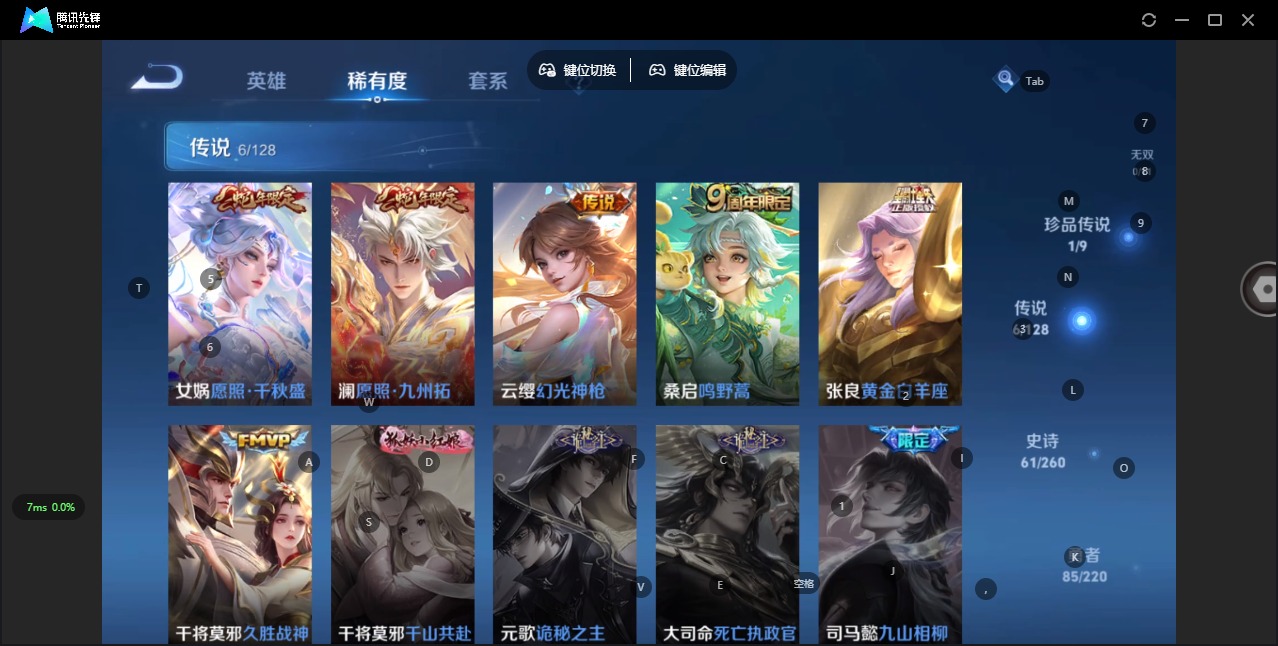 - [11516158]V7 1典藏 3传说 123英雄 162皮肤 可修改实名 优质装备:弑枪猎影(韩信典藏),云鹰飞将(小将军),地狱火,燃星之曲 珍宝阁皮:女武神 限定皮:至尊宝,五谷丰年,冰锋战神,梁祝,御风骁将(吕布年限),逐梦之星,李小龙,逐梦之影,霸王别姬-虞姬 史诗皮:紫霞仙子,白龙吟,江河有灵,偶像歌手,乱世虎臣,节奏热浪,修罗,水果甜心,星夜王子,德古拉伯爵,暗隐猎兽者,鬼剑武藏,舞动绿茵,地狱岩魂,纤云弄巧,缤纷独角兽,水晶猎龙者,曙光守护者,热力回旋,鹰眼统帅,魅力维加斯,黎明之约,无心