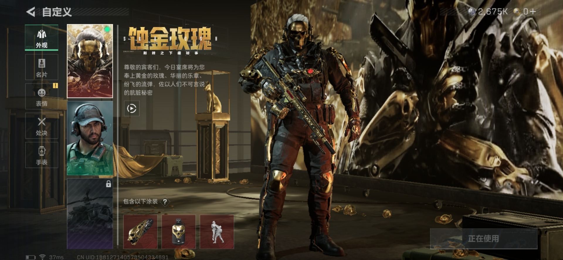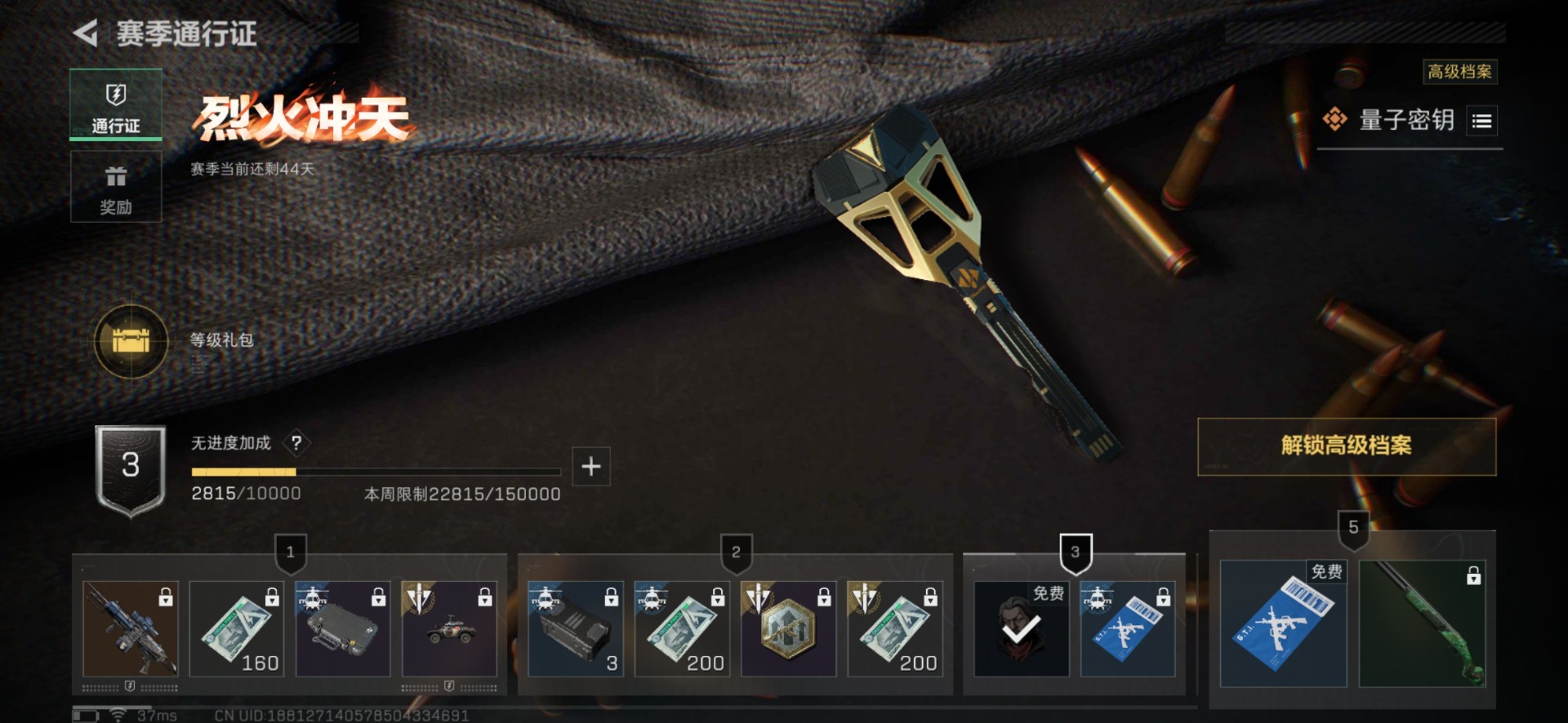 [12266024]总资产:5.4M 1干员外观 2传说枪械 哈夫币:2.675K 可二次 可修改实名 烽火地带段位:无段位 全面战场段位:无段位 传说武器皮肤:SCAR-H战斗步枪-启航,M4A1突击步枪-蚀金玫瑰 干员外观:红狼-蚀金玫瑰