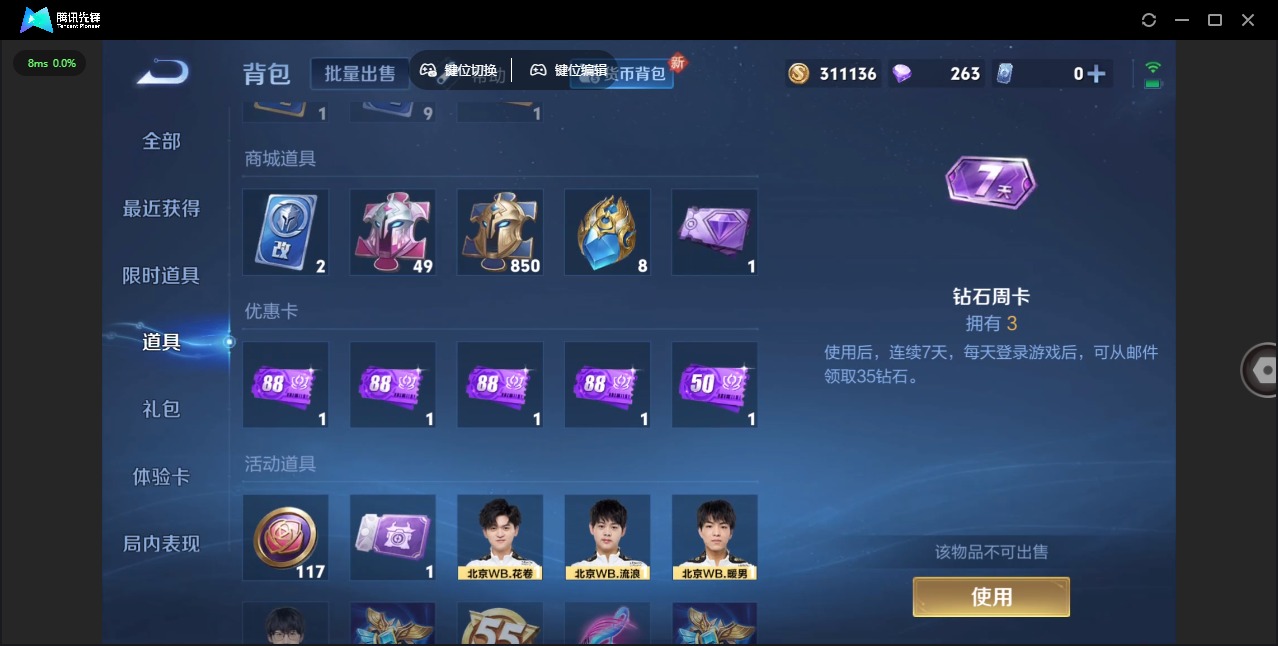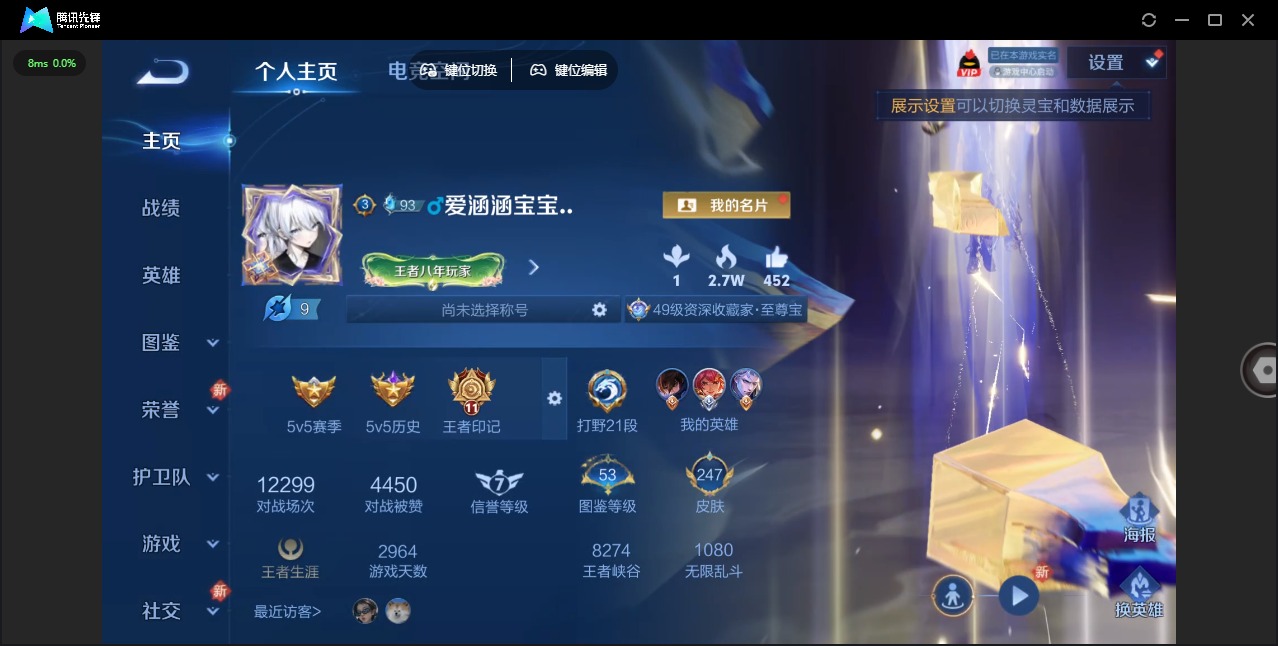 - [11656750]V6 8传说 118英雄 120皮肤 可修改实名 优质装备:云鹰飞将(小将军),一念神魔,无双飞将 传说皮:幻光神枪 珍宝阁皮:女武神 限定皮:愿照·九州拓(澜年限),愿照·山河定(司空震年限),鸣野蒿,诗剑行 史诗皮:破空之剑,蔬乡物语(鲁班七号),特工魅影,千年之狐,高渐离燃音魔法,偶像歌手,乱世虎臣,节奏热浪,女仆咖啡,摇滚巨星,水果甜心,绅士熊喵,天才门将,幽灵船长,鬼剑武藏,乘风破浪,逐浪之夏,圣诞狂欢,鹰眼统帅,魅力维加斯