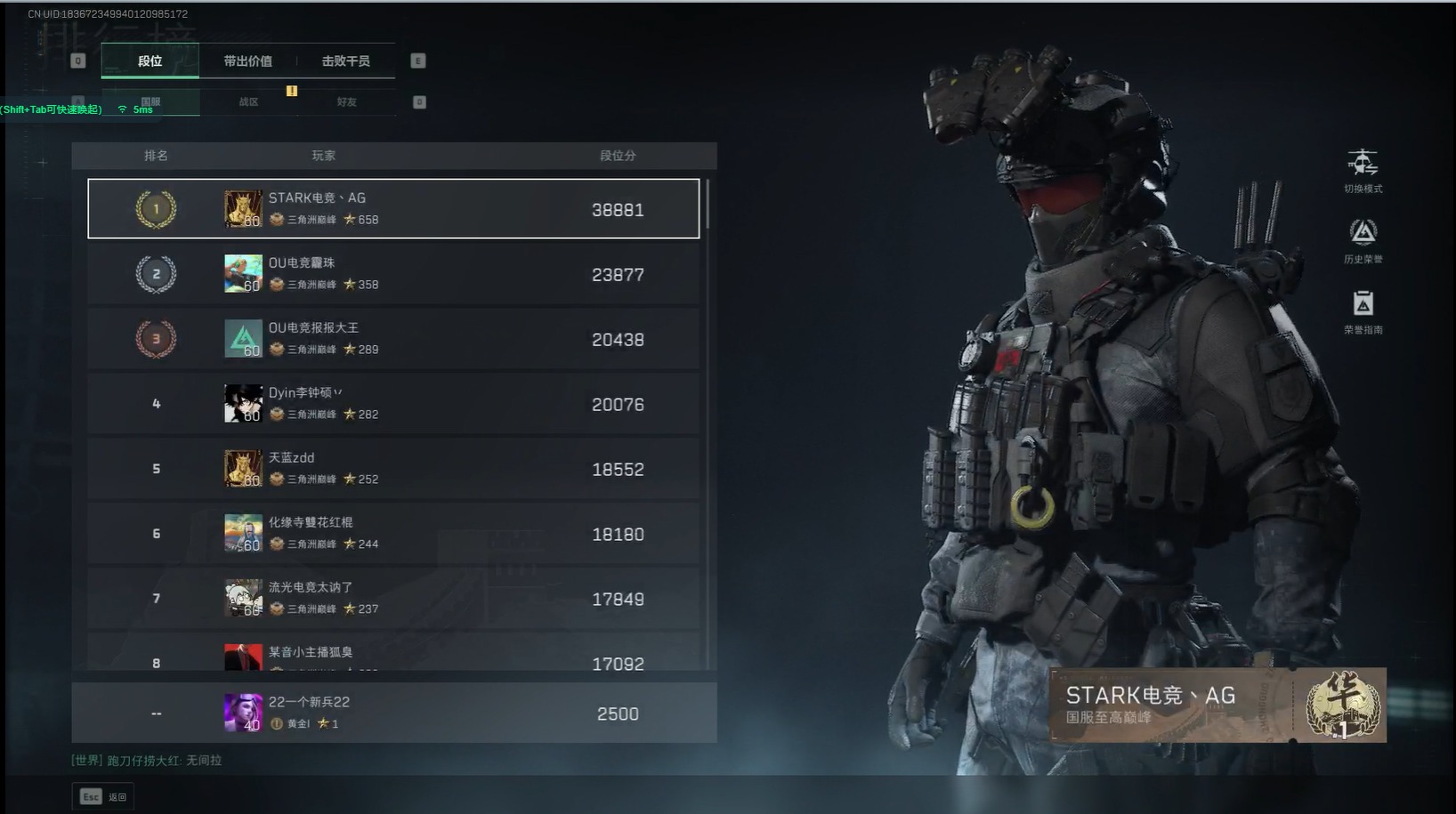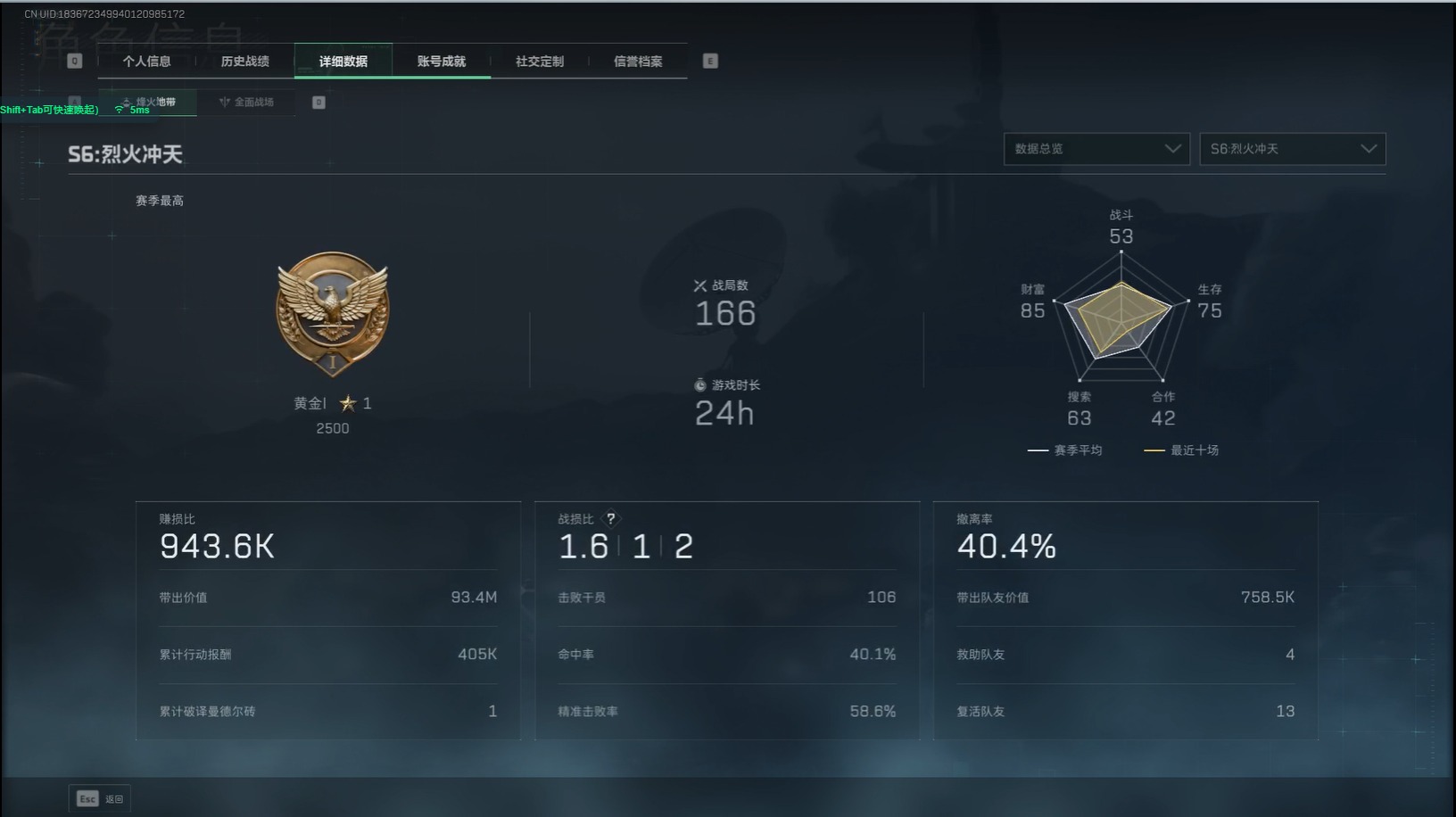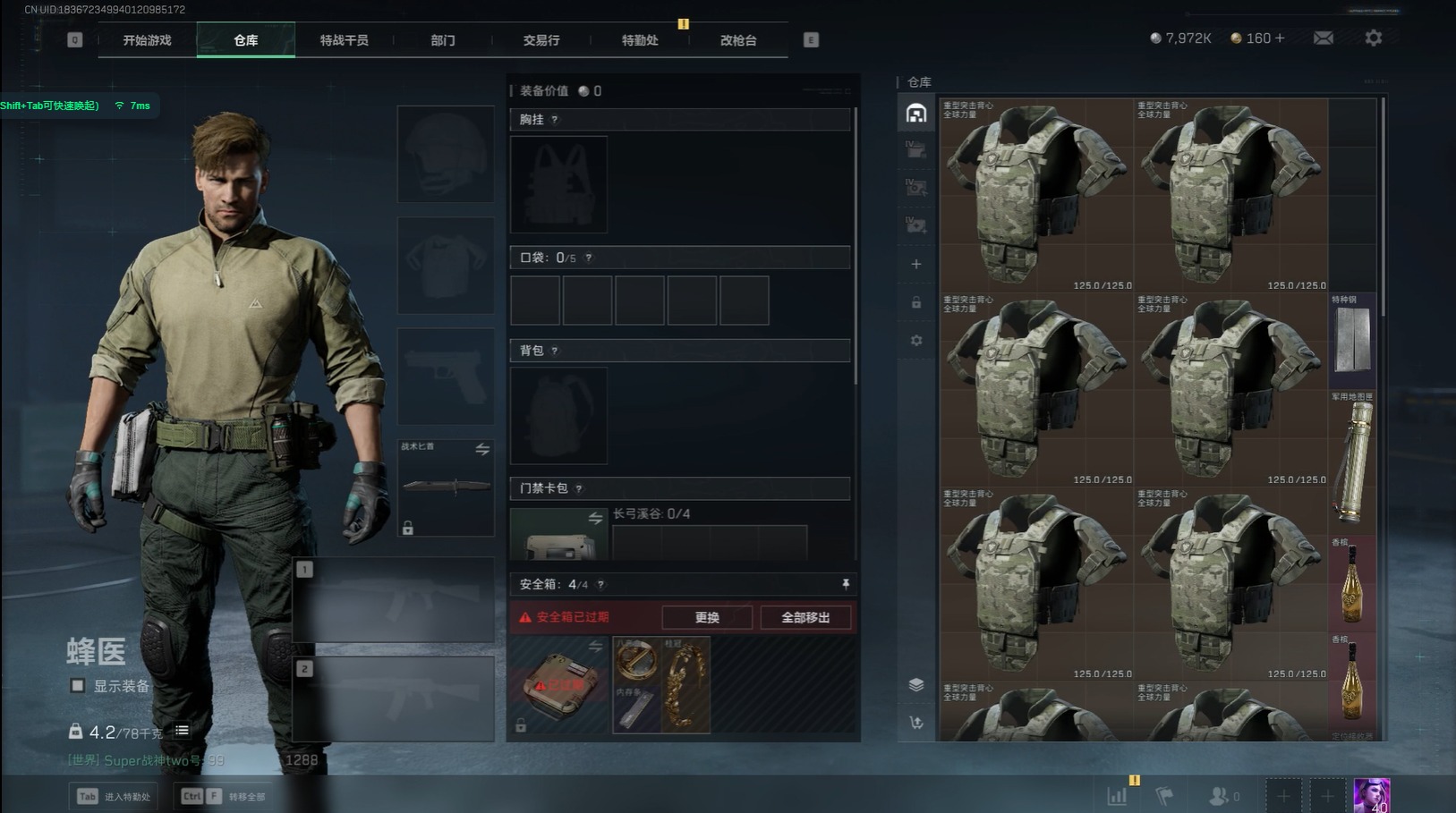 - [11439205]总资产:97.9M 1干员外观 2近战传说 19传说枪械 哈夫币:2.962K 高级安全箱(9.17到期) 可二次 可修改实名 优质装备:近战-黑海,近战-北极星 烽火地带段位:黑鹰 全面战场段位:上等兵 传说武器皮肤:UZI冲锋枪-特斯拉线圈,M16A4突击步枪-狩猎时刻,AK-12突击步枪-特斯拉线圈,SR-3M紧凑突击步枪-特斯拉线圈,勇士冲锋枪-能天使-午夜邮差,Vector冲锋枪-狩猎时刻,G3战斗步枪-狩猎时刻,M250通用机枪-游乐场,M14射手步枪-工业审判,复合弓-黑-天际线,K437突击步枪-北极星,QCQ171冲锋枪-北极星,725双管霰弹枪-送葬人-无题密令,M4A1突击步枪-阿米娅,M4A1突击步枪-蚀金玫瑰,MP5冲锋枪-黑海,QJB201轻机枪-黑海 史诗武器皮肤:Ash-12战斗步枪-守夜人,M16A4突击步枪-竞赛选手,PKM通用机枪-守夜人,AS Val突击步枪-尖端治疗,M700狙击步枪-守夜人,SG552突击步枪-尖端治疗,SR-25射手步枪-尖端治疗,M1014霰弹枪-林中猎手,AKM突击步枪-林中猎手,SV-98狙击步枪-林中猎手,PTR-32突击步枪-英雄,PKM通用机枪-荒野求生,腾龙突击步枪-无垢,MP7冲锋枪-无垢,PSG-1射手步枪-无垢,SVD狙击步枪-荒野求生,SR-3M紧凑突击步枪-荒野求生,SVD狙击步枪-阿萨拉工艺 干员外观:红狼-蚀金玫瑰