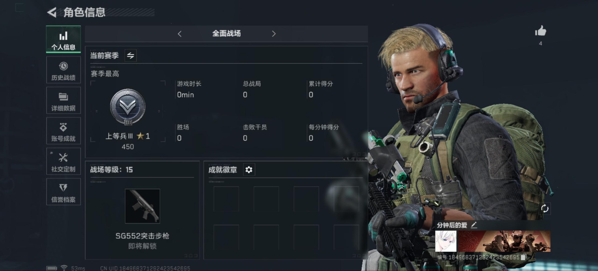 - [11578561]总资产:49.2M 2传说枪械 哈夫币:30.037K 可二次 可修改实名 烽火地带段位:黄金 全面战场段位:无段位 传说武器皮肤:勇士冲锋枪-能天使-午夜邮差,复合弓-黑-天际线