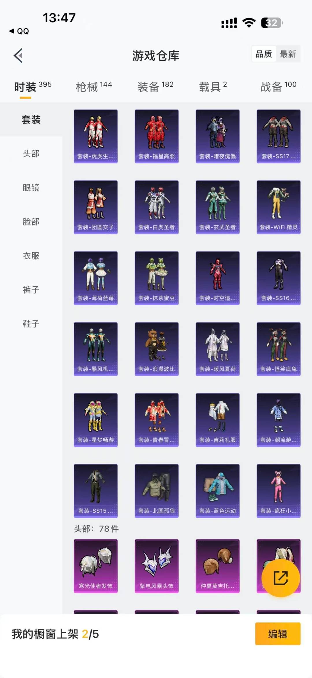 [12275349]11粉装 5特效枪 2载具 8印记 可二次 可修改实名 身法装备:暗影哥特(红眼罩) 优质装备:玛莎拉蒂Ghibli(粉),兰博基尼Aventador SVJ(翡翠绿),M416五爪金龙,SCAR-L梦幻火箭,梦幻火箭(新101)(新火箭少女101粉色套装),M762激战未来,翡翠骑士,草莓生巧,洛天依,MG3梦幻舞会,平底锅林间仙鹿,七级M762-激战未来,七级SCAR-L-梦幻火箭 热门装扮:葫芦兄弟,彩虹鹿灵,山涧鹿灵,紫电风暴,寒光使者,灵感创作师,仲夏莫吉托,恶魔喵喵,鹰眼刺客,浪漫波比,暗夜魅影 五级特效枪:五级M416-五爪金龙,五级MG3-梦幻舞会 三级特效枪:三级平底锅-林间仙鹿 紫色装扮:SS23特训,田园牧歌,绚烂繁星,轻风白浪,幻彩翩翩,SS22特训,莱茵河畔,妙红点点,北国孤狼,吉莉礼服,幻世战舞者,幻影武者,娇憨猪猪,时空追击者,暴风机械师,SS16特训,冰爽风暴,天籁歌者,瑞龙福将,团圆交子,SS17特训,怪笑疯兔,暖风夏荷,星梦畅游,青春冒险家,潮流游乐家,SS15特训,暗夜傀儡,SS21特训,SS20特训,酸甜橘柚,樱桃黑巧,暖心橘喵,灵幻魔术师,灵动马戏师,萌趣咩咩,暖心熊熊,异彩先驱,SS18特训,SS19特训,龙的传人,飞行日记,魅力单车,麻辣教官,黄色运动,龟仙人,冰河战士,龙魂突击队,金鼠迎春,长空猛禽,霓虹极客,热血青春,牛气冲天,牛气满满,特战装甲,格斗先锋,缤纷果语,荧惑魅影,蓝色运动,虎虎生威吉莉,疯狂小兔子,神秘领域,福星高照,空岛之星,空投萌叽,SS29特训,SS28特训,玉兔迎春,竞技名士,暗影哥特(红眼罩),粉红小猪,神气柴柴,懵萌河马,SS24特训(SS24特训套装),萤火魅影(套装-荧惑魅影),SS25特训,元气发射,SS27特训,SS26特训,淡雅花蕊,白虎圣者,抹茶蜜豆,薄荷蓝莓,玄武圣者,绯格组合,青玉碎影,萌黄之夏,光之冒险,漫步者,冰冻风暴,WiFi精灵 优质战备:星之彼岸降落伞,彩虹甜喵降落伞,灵感创作师降落伞,未来歌姬降落伞,音爆索尼克降落伞,仲夏莫吉托降落伞,第五大道降落伞,飒粉甜心降落伞,百万伏特降落伞,至尊龙雀降落伞,梦幻火箭降落伞,梦幻火箭飞行器,夏日绵绵冰降落伞,飞行器-夏日绵绵冰,相思残雪降落伞,怪笑疯兔降落伞,飞行器-梦之光华,葫芦兄弟降落伞,焰龙焚天降落伞,林间仙鹿降