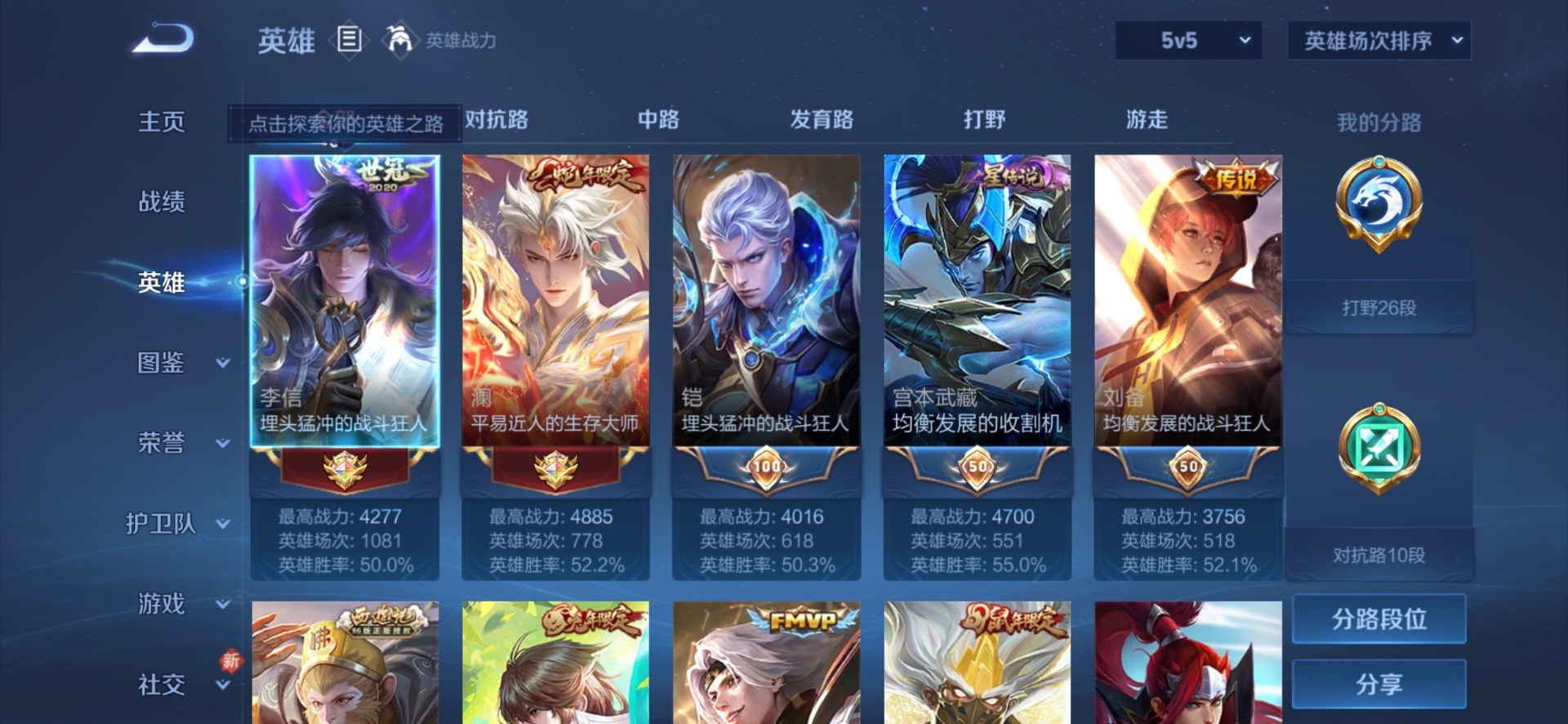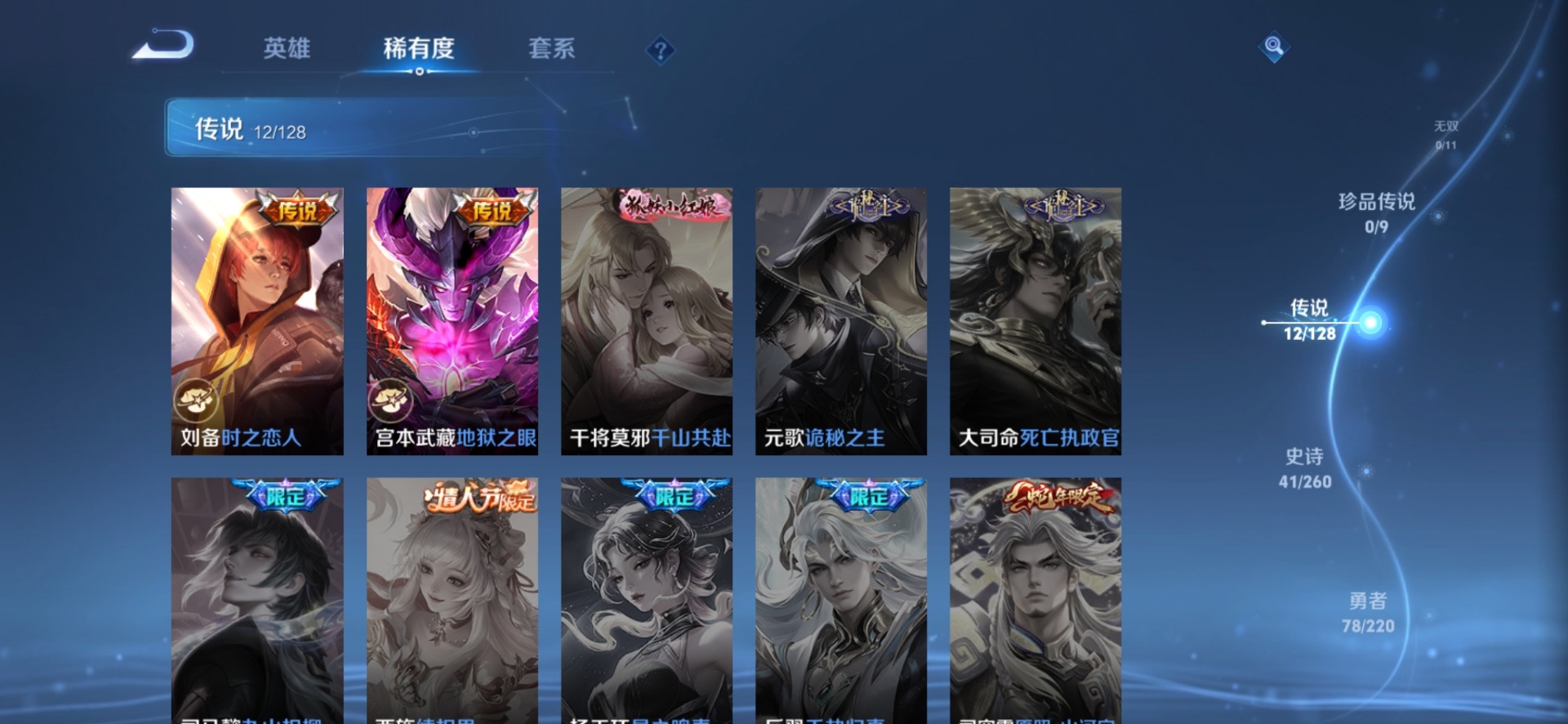 - PX_2023139-贵族等级: V5 英雄数: 53 皮肤数: 28 传说皮: 久胜战神,挚爱之约