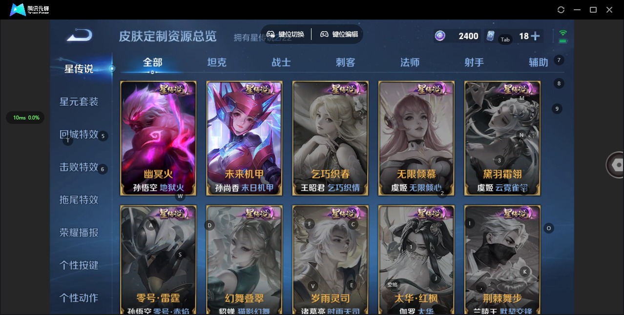 金蝉唐三藏,廉颇寅虎·御盾,伽罗天狼溯光者,赵云百木心枪,赵云龙胆,孙膑天狼运算者,后羿无尽星芒,后羿如梦令,露娜启示之音,诸葛亮时雨天司,杨玉环寅虎·心曲,公孙离玉兔公主,裴擒虎李小龙,裴擒虎天狼狩猎者,上官婉儿梁祝,李白诗剑行,花木兰瑞麟志,马可波罗山海·玄木吟,马可波罗深海之息,孙悟空孙行者,孙悟空大圣娶亲,孙悟空至尊宝,百里玄策白虎志,马超神威,韩信傲雪梅枪,韩信逐梦之影,百里守约朱雀志,虞姬霸王别姬