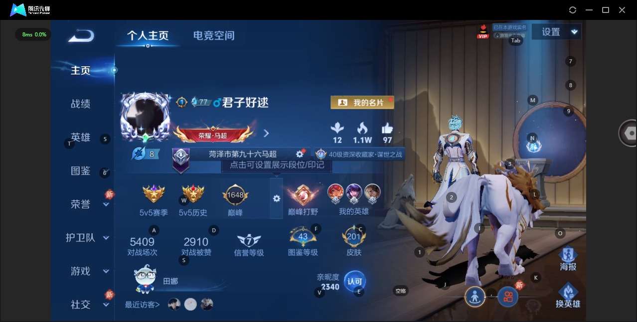 - [12092594]V8 5传说 106英雄 99皮肤 可修改实名 优质装备:黄金射手座,地狱火,地狱之眼,超时空战士-狄仁杰 限定皮:飞衡(韩信年限),李小龙,大圣娶亲,青春决赛季 史诗皮:百相守梦-黄忠,黄金分割率,特工魅影,暗夜猫娘,龙骑士(小龙虾),乱世虎臣,节奏热浪,绅士熊喵,天才门将,星夜王子,鬼剑武藏,心灵战警,舞动绿茵,水晶猎龙者,曙光守护者,金属风暴,鹰眼统帅,暗夜贵公子,魅力维加斯,未来纪元-赵云