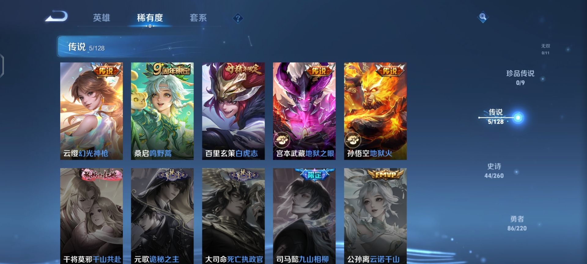 - [11652395]V4 1典藏 2传说 123英雄 187皮肤 可修改实名 优质装备:弑枪猎影(韩信典藏),黄金白羊座 珍宝阁皮:胡桃夹子,蔷薇恋人 限定皮:鸣野蒿,五谷丰年,李小龙 史诗皮:化蝶舞,星界战将,谪仙醉月,破空之剑,蔬乡物语(鲁班七号),百相守梦-黄忠,织梦人,紫霞仙子,特工魅影,江河有灵,百解令(蒙犽),蒙恬荣光圣徽,末日机甲-吕布,猫狗日记-孙策,乱世虎臣,女仆咖啡,摇滚巨星,水果甜心,绅士熊喵,星夜王子,功夫厨神,德古拉伯爵,暗隐猎兽者,鬼剑武藏,舞动绿茵,纤云弄巧,繁星吟游(呼啦呼啦),拒霜思,缤纷独角兽,逐浪之夏,曙光守护者,箭羽风息,金属风暴,圣诞狂欢,未来纪元-赵云