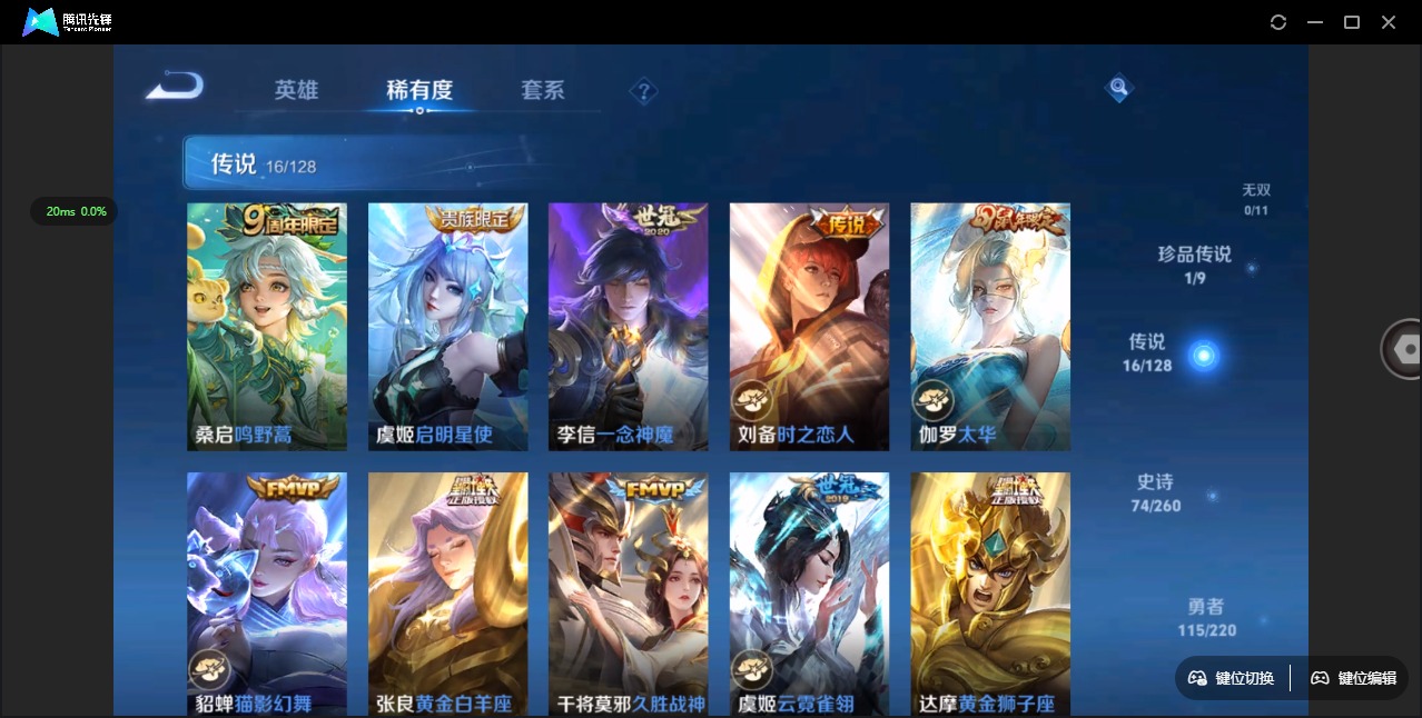 - [11529812]V8 3典藏 16传说 126英雄 329皮肤 典藏英雄武则天 可修改实名 女号 优质装备:鸣剑·曳影,全息碎影(猴子典藏),神鉴启示录,炽阳神光,一念神魔,末日机甲-孙尚香(绿蚂蚱),地狱火,仲夏夜之梦(大飞蛾),地狱之眼,淬星耀世,遇见胡旋,山海·炽霜斩(李信年限) 珍宝阁皮:万物之道,优雅恋人,玩趣恶龙 限定皮:愿照·九州拓(澜年限),逐霄战戟,陌上桑,白虎志(电光耗子),凤求凰(白切鸡),太华(伽罗年限),异界灵契(白毛香),白晶晶,时雨天司(水龙头),神威(电光马子),飞衡(韩信年限),遇见飞天,高山流水,五谷丰年,冰锋战神,游园惊梦,梁祝,御风骁将(吕布年限),烈魂,岱宗(典韦年限),天狼征服者,李小龙,逐梦之影,如梦令-后羿,纯白花嫁,孙行者,猪悟能,大圣娶亲,冰霜恋舞曲,美猴王,山海·玄木吟(马可年限) 史诗皮:器灵·浮梦炉,百相守梦-百里守约,紫霞仙子,苍穹之光,电玩小子(小书包),白龙吟,特工魅影,千年之狐,永昼,冰冠公主,偶像歌手,白蛇,晚萤,暗夜猫娘,龙骑士(小龙虾),末日机甲-吕布,猫狗日记-孙策,乱世虎臣,节奏热浪,修罗,女仆咖啡,摇滚巨星,水果甜心,绅士熊喵,天才门将,星夜王子,心灵骇客,时之奇旅-安琪拉,功夫厨神,德古拉伯爵,暗隐猎兽者,幽灵船长,鬼剑武藏,暗渊魔法,心灵战警,舞动绿茵,地狱岩魂,纤云弄巧,繁星吟游(呼啦呼啦),拒霜思,缤纷独角兽,乘风破浪,逐浪之夏,水晶猎龙者,曙光守护者,箭羽风息,金属风暴,原初追逐者,圣诞狂欢,圣诞恋歌,鹰眼统帅,暗夜贵公子,魅力维加斯,黎明之约,无心,未来纪元-赵云