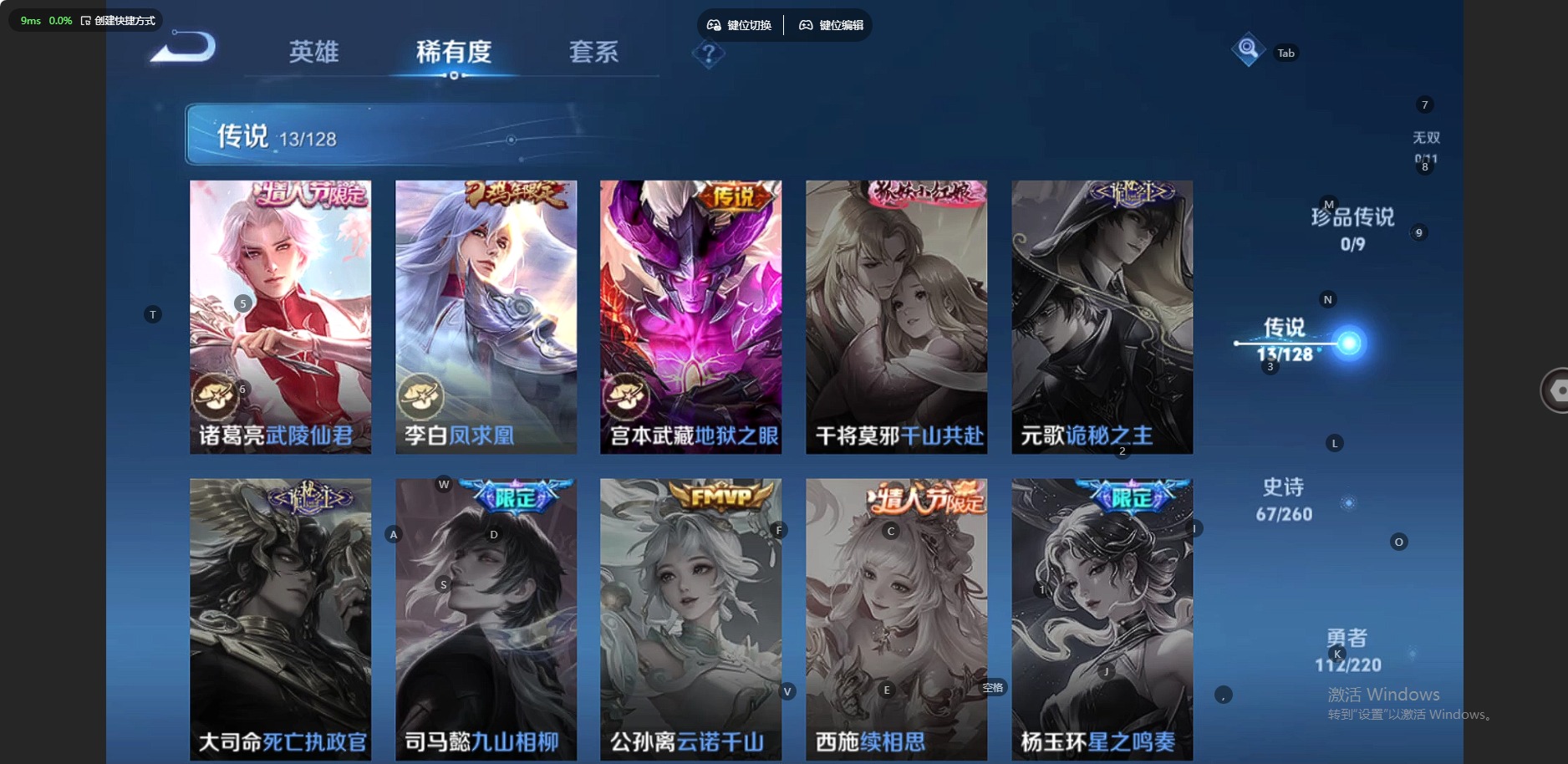 - [12134467]V9 3典藏 26传说 125英雄 375皮肤 可修改实名 优质装备:全息碎影(猴子典藏),赤影疾锋,弑枪猎影(韩信典藏),黄金狮子座,云鹰飞将(小将军),绛天战甲(鸡嘴战神),黄金白羊座,久胜战神,炽阳神光,一念神魔,云霓雀翎,末日机甲-孙尚香(绿蚂蚱),仲夏夜之梦(大飞蛾),地狱之眼,音你心动-周瑜,胖达荣荣,游龙清影(小青龙),淬星耀世,末日机甲-孙策,碎云,山海·炽霜斩(李信年限),妄想实况 传说皮:祥瑞亨通 珍宝阁皮:胡桃夹子,优雅恋人,蔷薇恋人 限定皮:愿照·九州拓(澜年限),逐霄战戟,鸣野蒿,至尊宝,神威(电光马子),飞衡(韩信年限),无限倾心-项羽,遇见飞天,高山流水,齐天大圣,怒海麟威,降魔,五谷丰年,冰锋战神,游园惊梦,梁祝,李小龙,朱雀志(守约年限),乒乒小将,匿光追影者,山海·玄木吟(马可年限),冰霜神祇 史诗皮:灵蛊蚀心,星界战将,石田雨龙,蒙犽顽岩魄,琥珀纪元伽罗,蔬乡物语(鲁班七号),百相守梦-黄忠,紫霞仙子,苍穹之光,电玩小子(小书包),白龙吟,黄金分割率,特工魅影,千年之狐,永昼,江河有灵,真我赫兹(百里守约),魅语,百解令(蒙犽),高渐离燃音魔法,蒙恬荣光圣徽,冰冠公主,青蛇,偶像歌手,晚萤,电玩·爆裂旋风,暗夜猫娘,龙骑士(小龙虾),末日机甲-吕布,猫狗日记-孙策,猫狗日记-大乔,乱世虎臣,节奏热浪,修罗,女仆咖啡,摇滚巨星,水果甜心,绅士熊喵,天才门将,星夜王子,心灵骇客,功夫厨神,德古拉伯爵,暗隐猎兽者,幽灵船长,鬼剑武藏,心灵战警,乐园奇幻夜,舞动绿茵,地狱岩魂,纤云弄巧,拒霜思,缤纷独角兽,乘风破浪,逐浪之夏,水晶猎龙者,曙光守护者,箭羽风息,金属风暴,原初追逐者,圣诞狂欢,圣诞恋歌,鹰眼统帅,王者之锤,暗夜贵公子,魅力维加斯,黎明之约,赏金猎手,无心,未来纪元-赵云