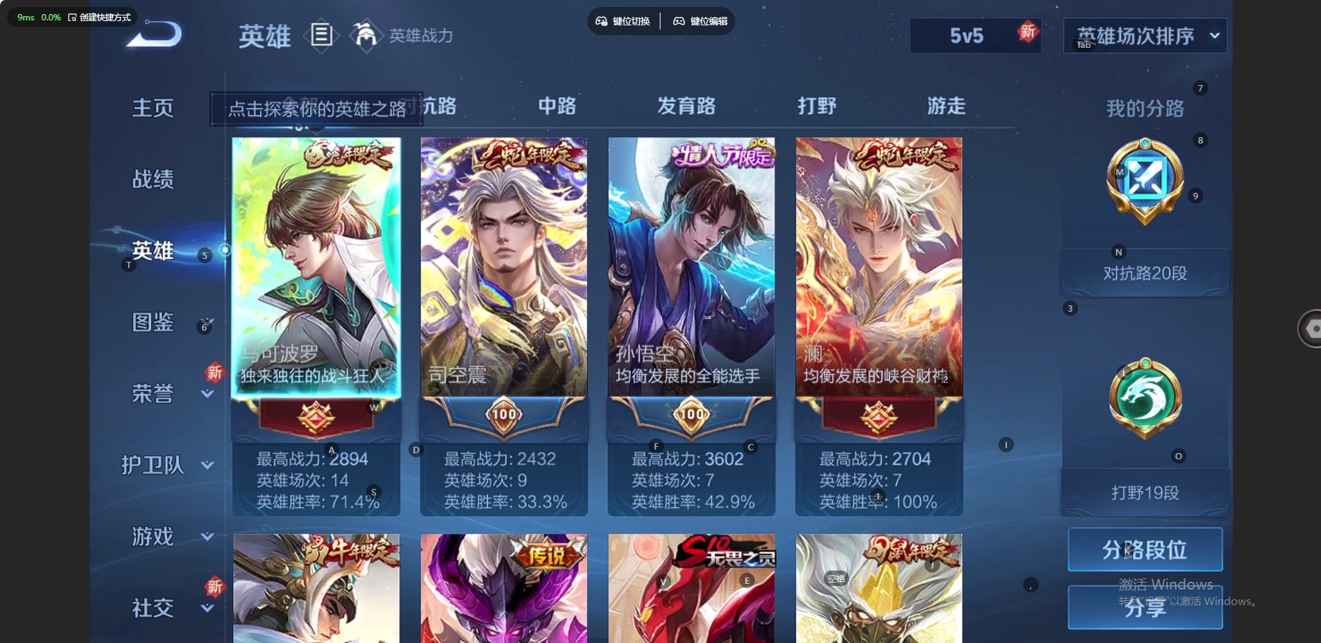 - [11386428]V7 5传说 122英雄 184皮肤 可修改实名 优质装备:地狱火,零号·赤焰 珍宝阁皮:蔷薇恋人 限定皮:鸣野蒿,至尊宝,白虎志(电光耗子),武陵仙君(小桃花),神威(电光马子),高山流水,梁祝,天狼绘梦者,李小龙,如梦令-后羿,孙行者,猪悟能,大圣娶亲 史诗皮:黄金分割率,特工魅影,魅语,龙骑士(小龙虾),乱世虎臣,节奏热浪,修罗,水果甜心,星夜王子,暗隐猎兽者,幽灵船长,鬼剑武藏,地狱岩魂,纤云弄巧,繁星吟游(呼啦呼啦),拒霜思,逐浪之夏,水晶猎龙者,曙光守护者,金属风暴,原初追逐者,圣诞恋歌,鹰眼统帅,王者之锤,魅力维加斯,黎明之约,未来纪元-赵云