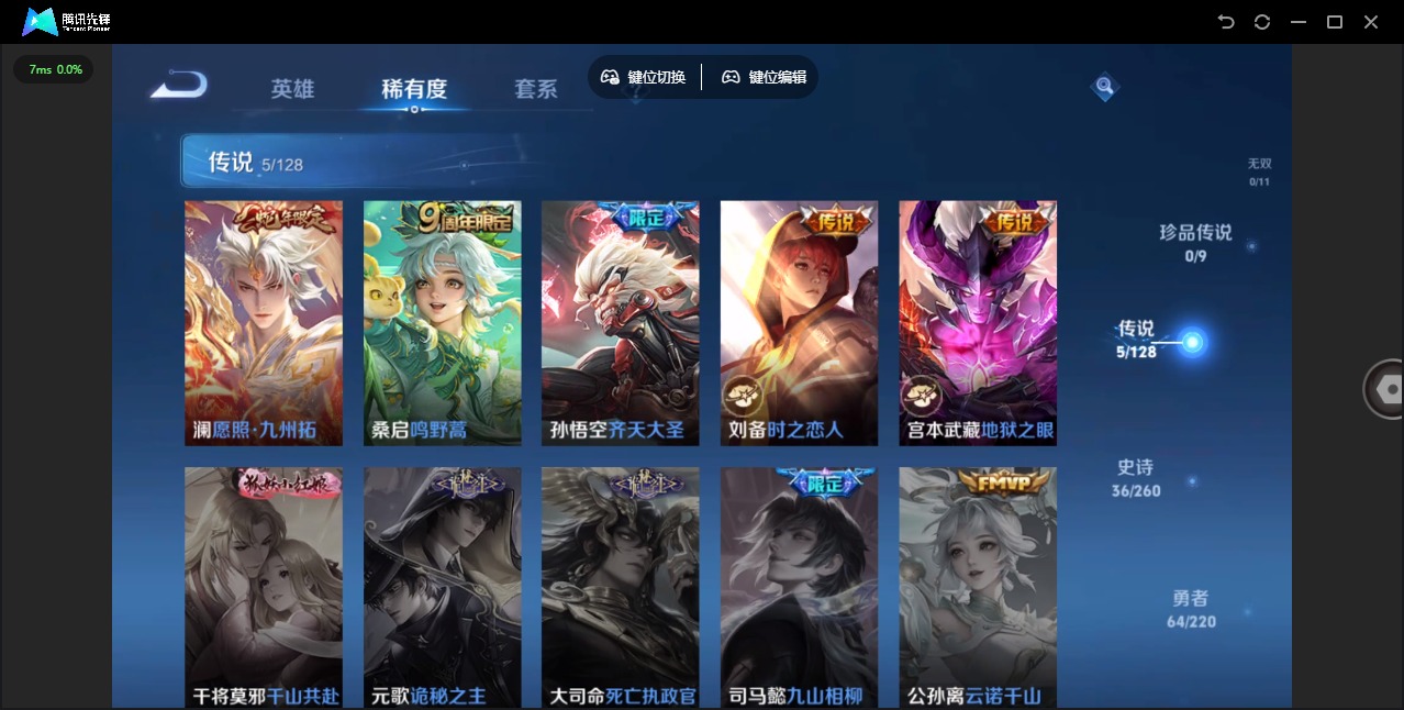 - [12116394]V7 2珍品传说 8传说 123英雄 179皮肤 可修改实名 优质装备:器灵·落星盏,朽木白哉,黄金狮子座,黄金射手座,黄金白羊座,地狱之眼,涂山容容 传说皮:乘龙·铭钟鼎(赵云年限),落雪白狼 珍宝阁皮:胡桃夹子 限定皮:愿照·九州拓(澜年限),愿照·山河定(司空震年限),飞衡(韩信年限),降魔,五谷丰年,天狼狩猎者,李小龙,冰霜恋舞曲,山海·玄木吟(马可年限) 史诗皮:器灵·浮梦炉,化蝶舞,龙之律动,石田雨龙,百相守梦-黄忠,织梦人,紫霞仙子,黄金分割率,特工魅影,千年之狐,永昼,魅语,百解令(蒙犽),偶像歌手,暗夜猫娘,末日机甲-吕布,猫狗日记-孙策,时之恋人-孙尚香,乱世虎臣,修罗,女仆咖啡,摇滚巨星,水果甜心,功夫厨神,鬼剑武藏,舞动绿茵,纤云弄巧,水晶猎龙者,曙光守护者,金属风暴,圣诞狂欢,鹰眼统帅,黎明之约