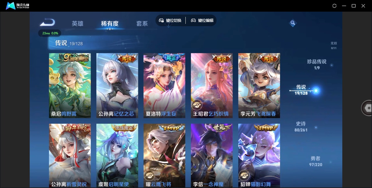 - [12062049]V6 6传说 123英雄 147皮肤 可修改实名 优质装备:炽阳神光,一念神魔,涂山容容 传说皮:幻光神枪 珍宝阁皮:蔷薇恋人 限定皮:愿照·九州拓(澜年限),愿照·山河定(司空震年限),傲雪梅枪,飞衡(韩信年限),高山流水,奔雷神使(牛魔年限),祈雪灵祝(雪兔子),李小龙,逐梦之影,默契交锋-花木兰,青春决赛季 史诗皮:化蝶舞,龙之律动,百相守梦-黄忠,白龙吟,特工魅影,晚萤,乱世虎臣,女仆咖啡,水果甜心,绅士熊喵,心灵骇客,功夫厨神,鬼剑武藏,地狱岩魂,纤云弄巧,繁星吟游(呼啦呼啦),拒霜思,缤纷独角兽,乘风破浪,鹰眼统帅,王者之锤,魅力维加斯