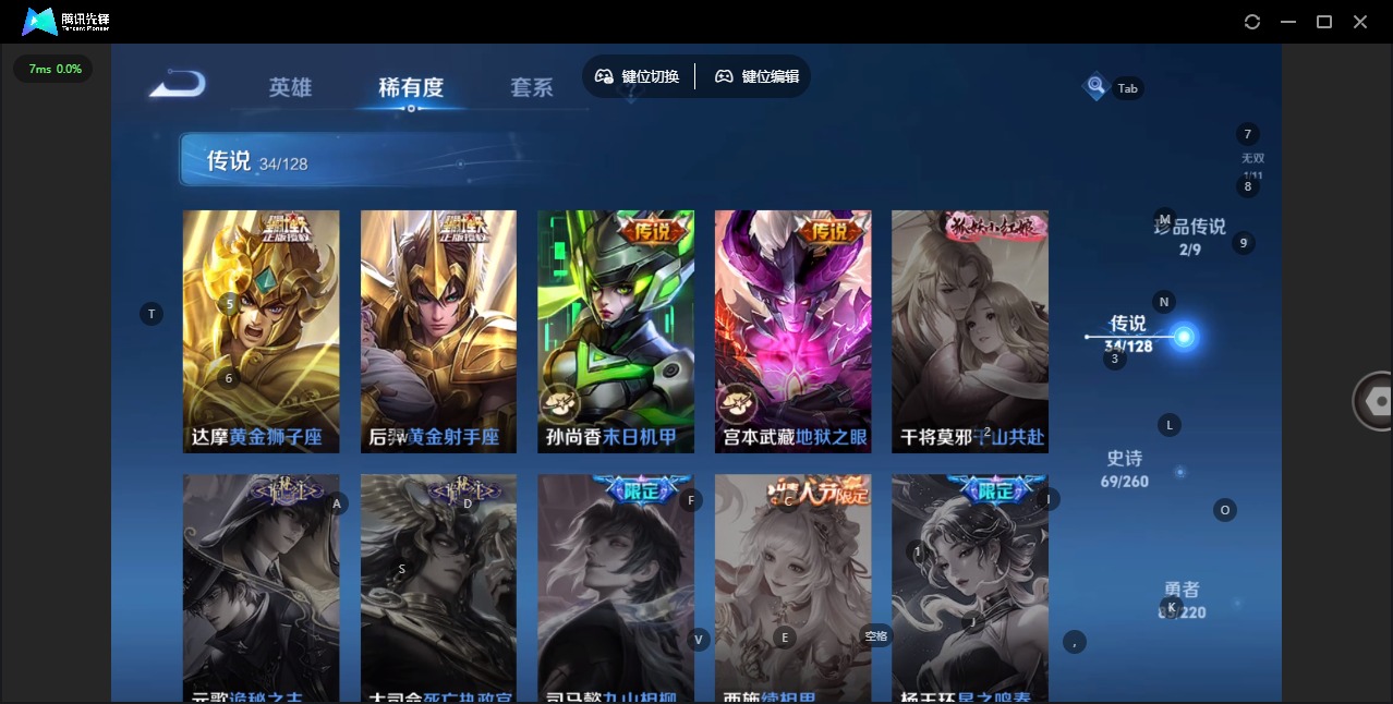 - [11578844]V7 1典藏 10传说 124英雄 275皮肤 可修改实名 优质装备:拾光映像(瑶典藏),黄金狮子座,黄金射手座,久胜战神,末日机甲-孙尚香(绿蚂蚱),仲夏夜之梦(大飞蛾),李逍遥,游龙清影(小青龙) 传说皮:云诺千山 珍宝阁皮:妄想食味,优雅恋人 限定皮:鸣野蒿,至尊宝,白鹤梁神女,时雨天司(水龙头),高山流水,冰锋战神,游园惊梦,梁祝,天狼溯光者,李小龙,默契交锋-花木兰,大圣娶亲 史诗皮:鸭鸭历险记-刘禅,星界战将,龙之律动,雪豹·霜爪,茶境仙,破空之剑,百相守梦-百里守约,百相守梦-黄忠,紫霞仙子,黄金分割率,特工魅影,千年之狐,百解令(蒙犽),偶像歌手,龙骑士(小龙虾),魅语,冰冠公主,青蛇,猫狗日记-孙策,乱世虎臣,节奏热浪,修罗,水果甜心,天才门将,星夜王子,心灵骇客,暗隐猎兽者,幽灵船长,心灵战警,乐园奇幻夜,天秀·启明,地狱岩魂,纤云弄巧,繁星吟游(呼啦呼啦),拒霜思,乘风破浪,逐浪之夏,月团寄思,水晶猎龙者,曙光守护者,金属风暴,原初追逐者,圣诞狂欢,圣诞恋歌,鹰眼统帅,魅力维加斯,黎明之约
