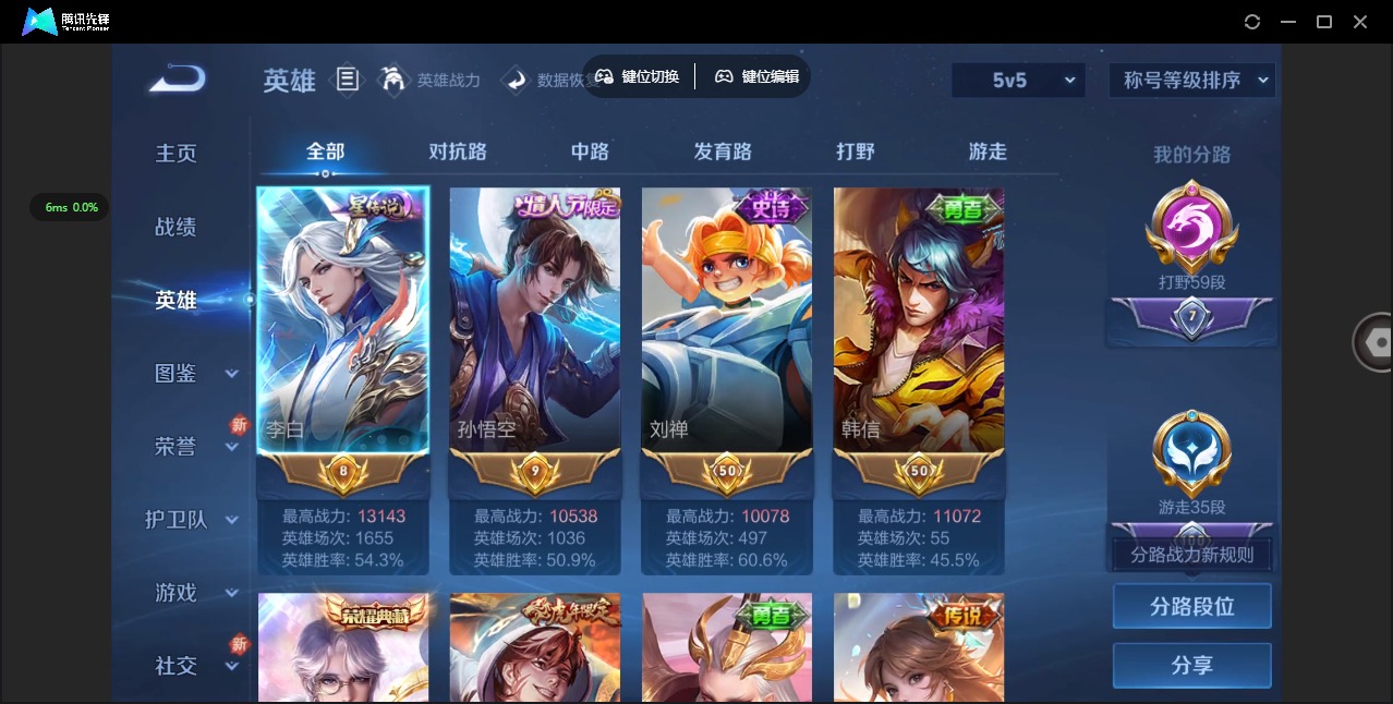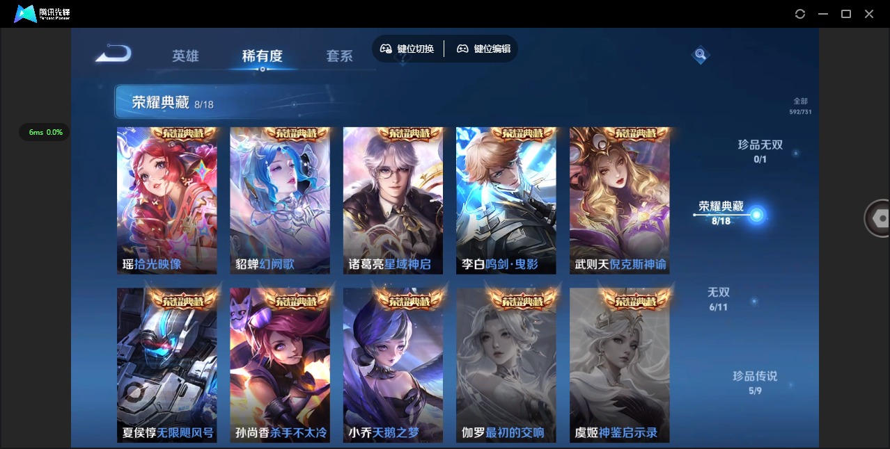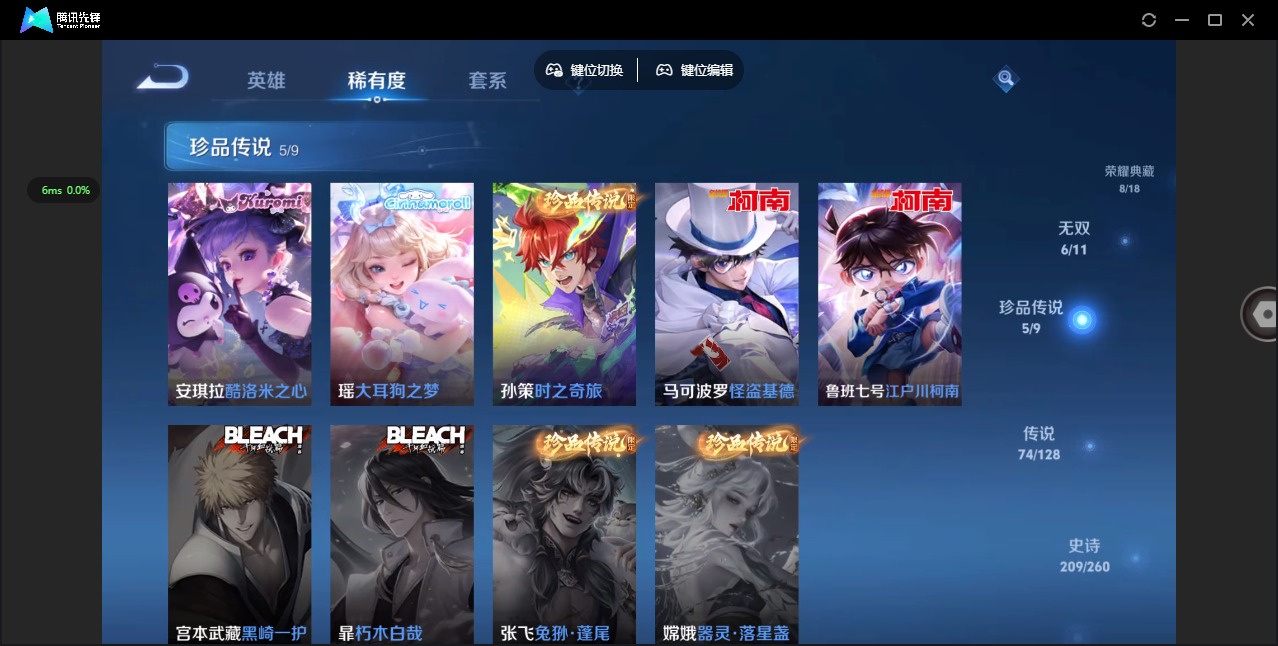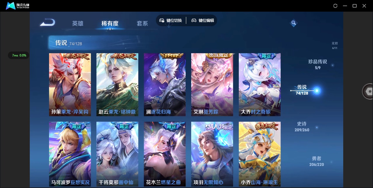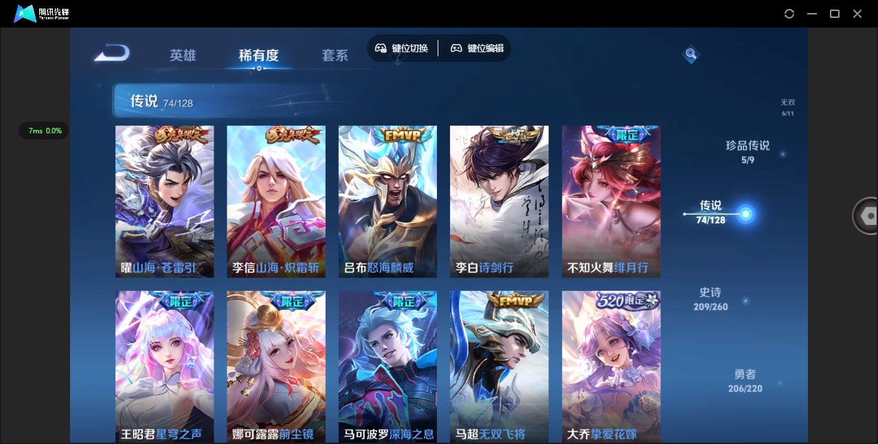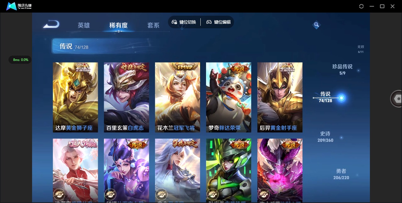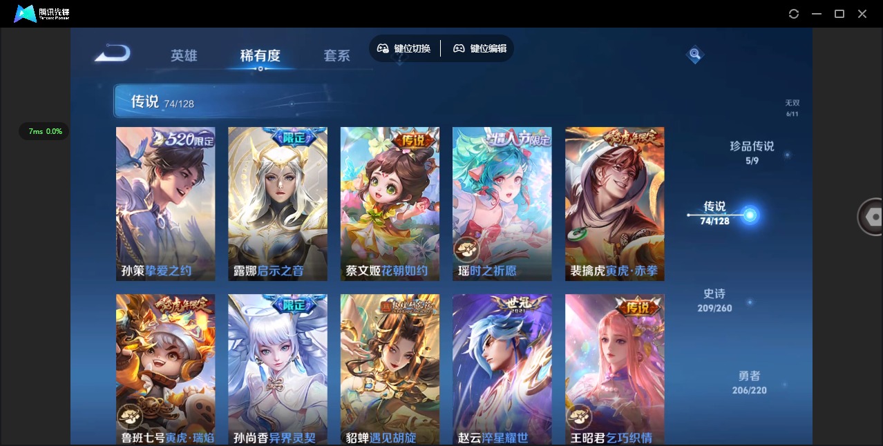 - [12075272]V8 2珍品传说 17传说 124英雄 218皮肤 可修改实名 优质装备:朽木白哉,黑崎一护,云鹰飞将(小将军),猫影幻舞,乞巧织情,超时空战士-狄仁杰,无双飞将,音你闪耀(rap皮),妄想实况 传说皮:典韦战鼓燎原,死亡执政官,九山相柳,云诺千山,幻光神枪 珍宝阁皮:妄想食味 限定皮:愿照·九州拓(澜年限),愿照·岁时盈(虞姬年限),愿照·山河定(司空震年限),逐霄战戟,凤求凰(白切鸡),魔法小厨娘,飞衡(韩信年限),山海·碧波行(瑶年限),遇见飞天,降魔,梁祝,天狼征服者,李小龙,大圣娶亲,时之奇旅-妲己 史诗皮:鸭鸭历险记-刘禅,苍鳞隐世,器灵·浮梦炉,狼魂孤将,化蝶舞,龙之律动,石田雨龙,百相守梦-周瑜,茶境仙,琥珀纪元伽罗,百相守梦-百里守约,星界特工,百相守梦-黄忠,织梦人,守夜人,紫霞仙子,黄金分割率,特工魅影,千年之狐,无限星赏官,青蛇,猫狗日记-孙策,乱世虎臣,摇滚巨星,水果甜心,功夫厨神,德古拉伯爵,暗隐猎兽者,鬼剑武藏,地狱岩魂,纤云弄巧,繁星吟游(呼啦呼啦),乘风破浪,逐浪之夏,曙光守护者,热力回旋,箭羽风息,原初追逐者,圣诞狂欢,圣诞恋歌,鹰眼统帅,黎明之约,赏金猎手