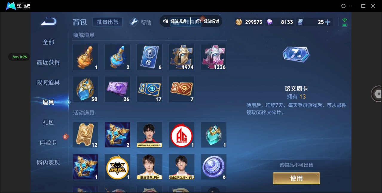 - [11881779]V8 2典藏 16传说 123英雄 333皮肤 可修改实名 优质装备:全息碎影(猴子典藏),神鉴启示录,黄金射手座,冠军飞将,猫影幻舞,云霓雀翎,末日机甲-孙尚香(绿蚂蚱),地狱火,仲夏夜之梦(大飞蛾),地狱之眼,超时空战士-狄仁杰 传说皮:死亡执政官,幻光神枪 珍宝阁皮:妄想食味,玩趣恶龙 限定皮:愿照·九州拓(澜年限),鸣野蒿,至尊宝,白虎志(电光耗子),凤求凰(白切鸡),飞衡(韩信年限),遇见飞天,高山流水,五谷丰年,游园惊梦,梁祝,天狼狩猎者,天狼绘梦者,李小龙,朱雀志(守约年限),辉光之辰,一生所爱,大圣娶亲,引擎之心,神奇女侠 史诗皮:化蝶舞,星界战将,龙之律动,百相守梦-周瑜,茶境仙,破空之剑,蒙犽顽岩魄,蔬乡物语(鲁班七号),百相守梦-黄忠,紫霞仙子,苍穹之光,电玩小子(小书包),白龙吟,黄金分割率,特工魅影,千年之狐,江河有灵,百解令(蒙犽),高渐离燃音魔法,蒙恬荣光圣徽,无限星赏官,冰冠公主,偶像歌手,白蛇,末日机甲-吕布,猫狗日记-孙策,猫狗日记-大乔,乱世虎臣,节奏热浪,女仆咖啡,摇滚巨星,水果甜心,绅士熊喵,天才门将,星夜王子,心灵骇客,功夫厨神,德古拉伯爵,暗隐猎兽者,幽灵船长,鬼剑武藏,心灵战警,舞动绿茵,地狱岩魂,纤云弄巧,繁星吟游(呼啦呼啦),拒霜思,缤纷独角兽,乘风破浪,逐浪之夏,水晶猎龙者,曙光守护者,箭羽风息,金属风暴,原初追逐者,圣诞狂欢,圣诞恋歌,鹰眼统帅,暗夜贵公子,魅力维加斯,无心,未来纪元-赵云