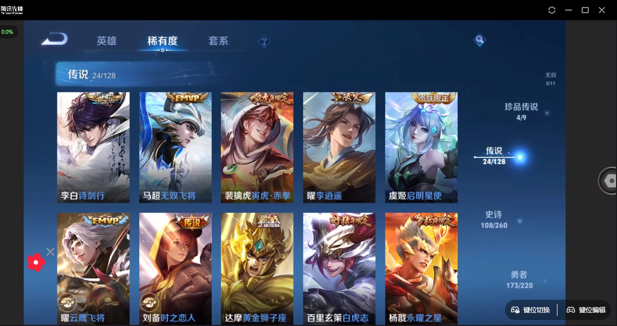 - PX_2080886-00 安卓QQ/永恒钻石/261皮肤/123英雄/4典藏/0珍品无双/0无双/2珍品传说/30传说/77史诗/9稀有英雄 【2 珍品传说】怪盗基德 马可波罗,时之奇旅 孙策, 【4 典藏皮肤】鸣剑·曳影 李白,全息碎影 孙悟空,天鹅之梦 小乔,大秦宣太后 芈月, 【30 传说皮肤】胖达荣荣 梦奇,武圣 关羽,启明星使 虞姬,云霓雀翎 虞姬,逐花归海 澜,飞鸢探春 李元芳,白虎